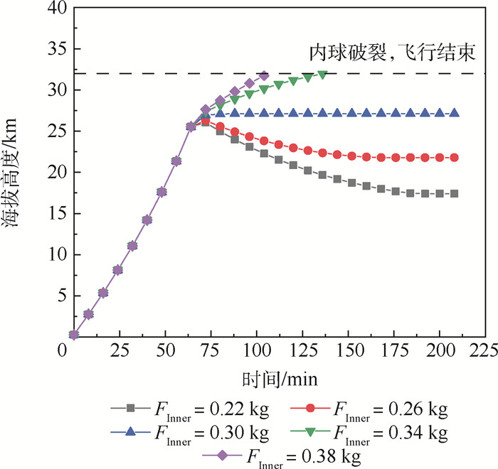 双层乳胶气球克服了单层乳胶气球的缺点,可以在高空平漂以实现持续气象观测,但是其高空平漂受多因素影响比较复杂,特别是气球充气量主要依赖工程经验,施放成功率不高,亟需提供理论指导。通过试验数据证明了浮重平衡是双层乳胶气球实现高空平漂的必要条件,推导得出内、外球氢气充气量和昼夜温度变化对其运动的影响;建立了双层乳胶气球的几何模型和动力学模型,结合实地施放试验,对其升空和平漂过程轨迹进行模拟,由此探究了内、外球充气量对平漂高度的影响。研究结果表明:内球充气量是决定平漂高度的主要因素,并受昼夜温度变化影响,当内、外球规格分别为750g、500g,负载约1kg时,内球拉力每增大或减小0.04kg,最终平漂高度将对应升高或降低约5km,而外球充气量对其平漂高度无影响。
