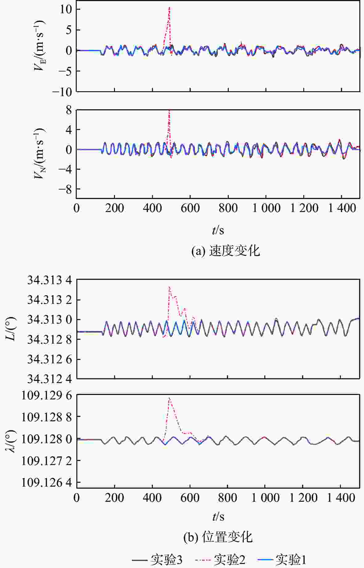 m/s 双测状态 ${V_{\rm{E}}}$ ${V_{\rm{N}}}$ ${V_{\rm{U}}}$ 均值 SD 均值 SD 均值 SD 卫星正常 0.01727 0.04224 −0.00426 0.05191 −0.00291 0.02113 卫星不足 0.00796 0.12605 −0.06687 0.44914 −0.02372 0.14846 观测量预测 0.01221 0.06536 0.00564 0.09993 0.00835 0.05092 表 5 伪松组合导航下的最大位置误差