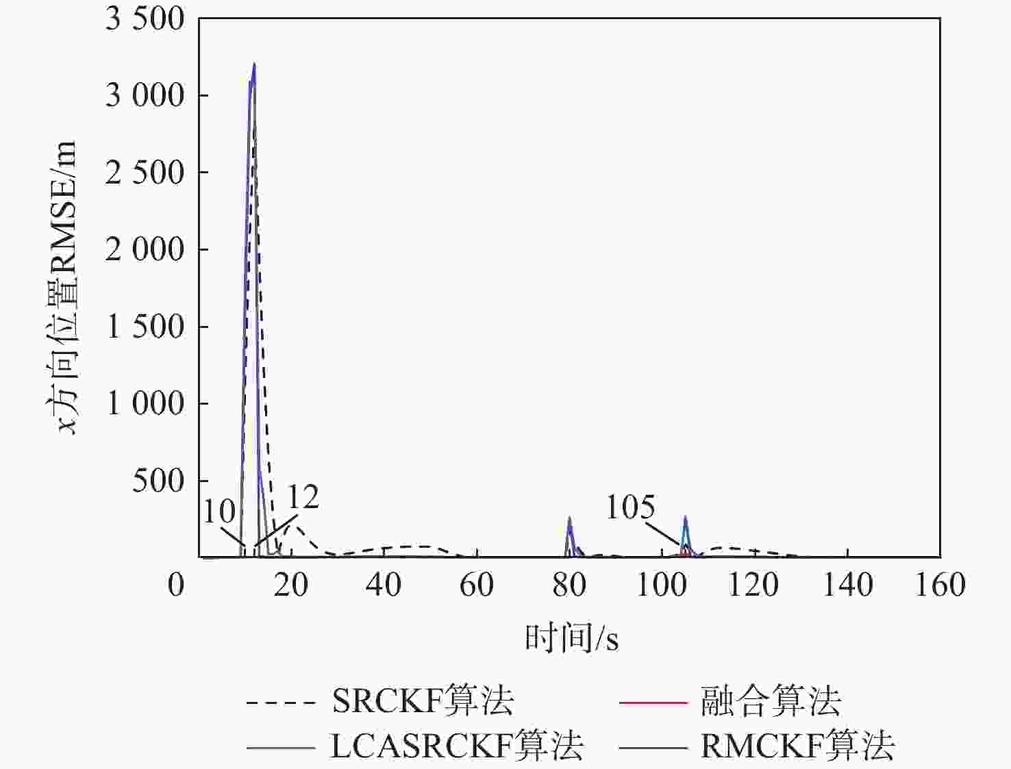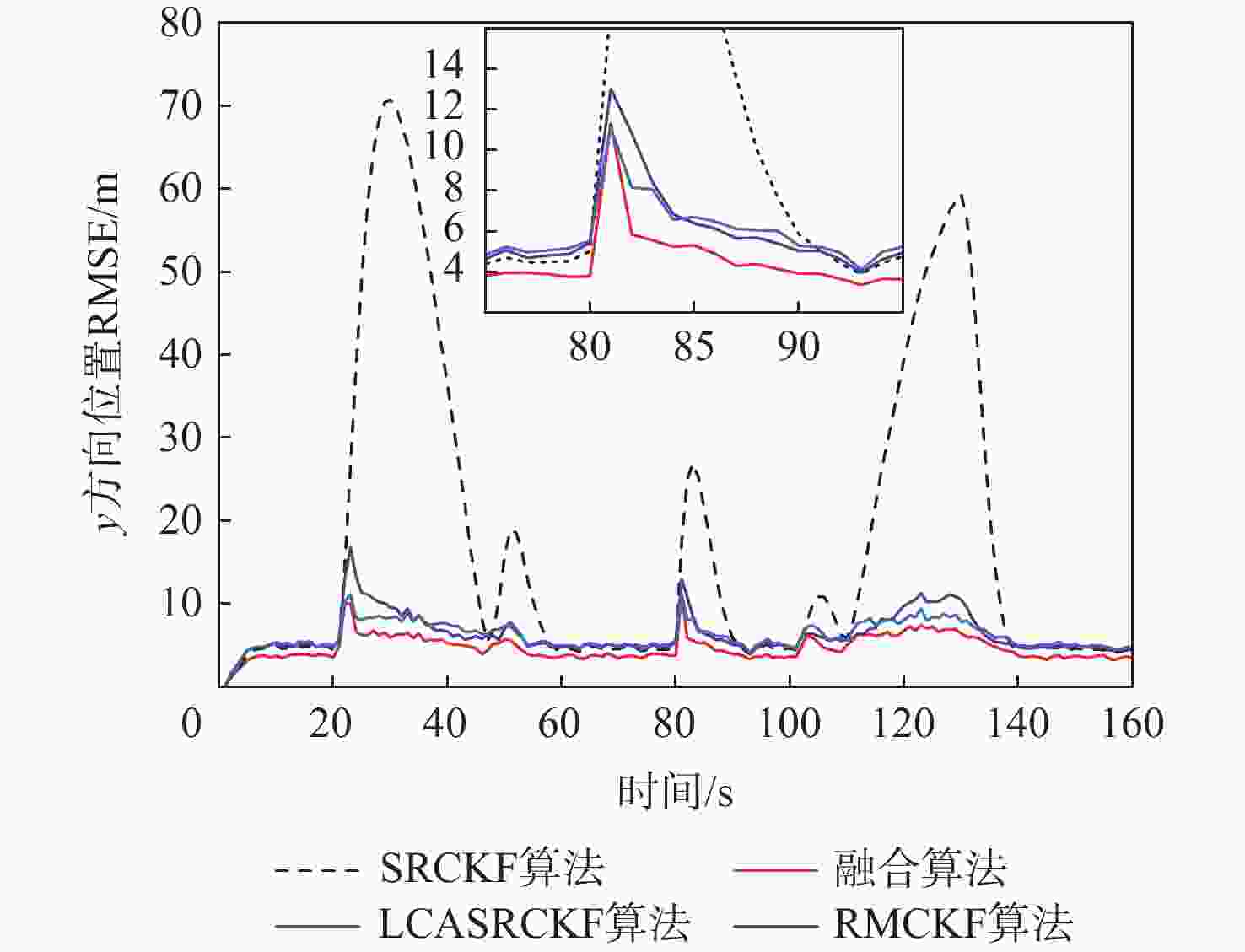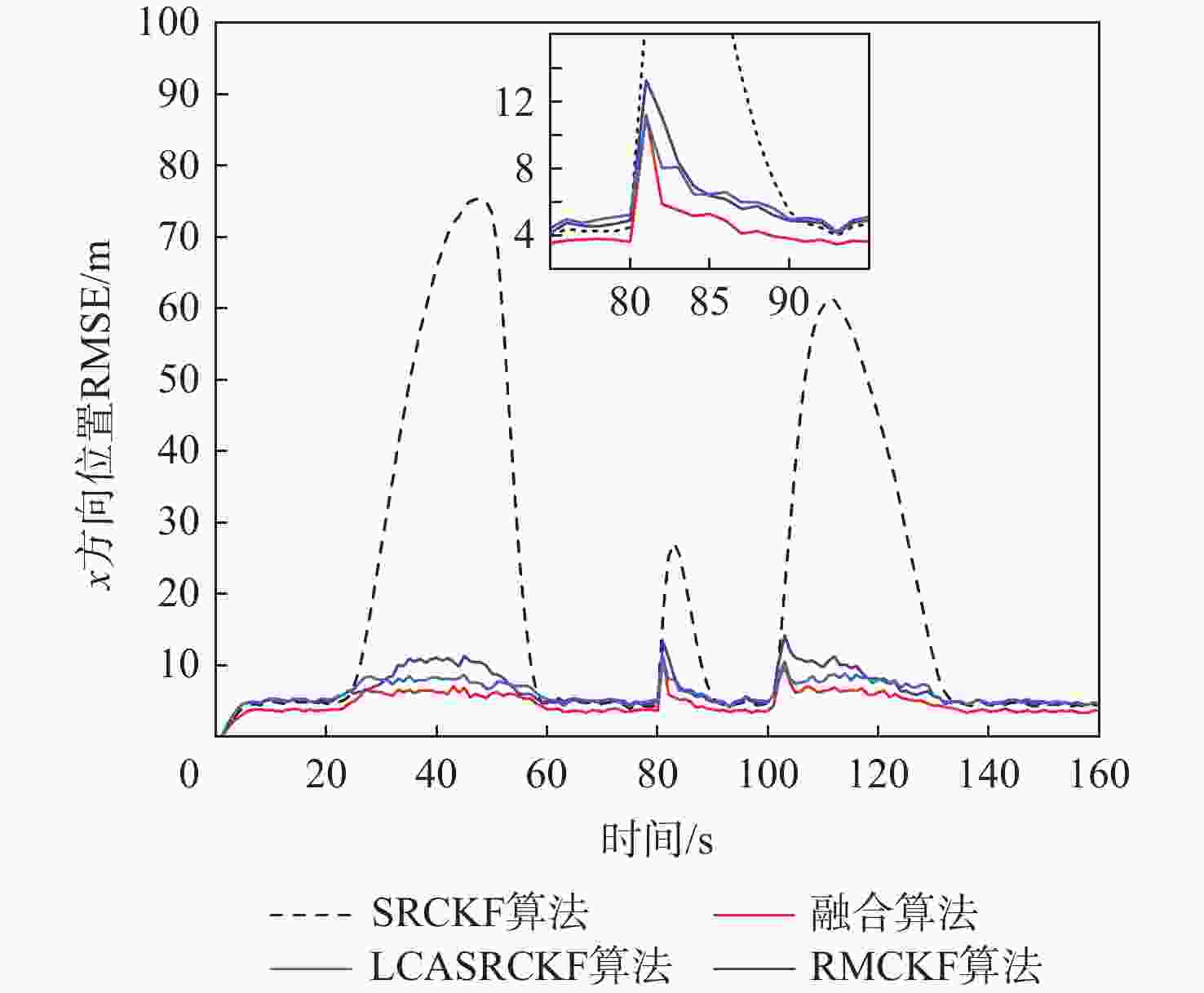 平均RMSE/m融合算法 4.7445 4.7114 SRCKF 21.0091 17.7316 LCASRCKF 6.2121 6.1881 RMCKF 6.5870 6.3279 表 2 平均RMSE对比(场景2)