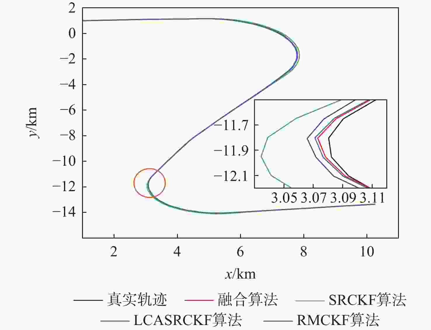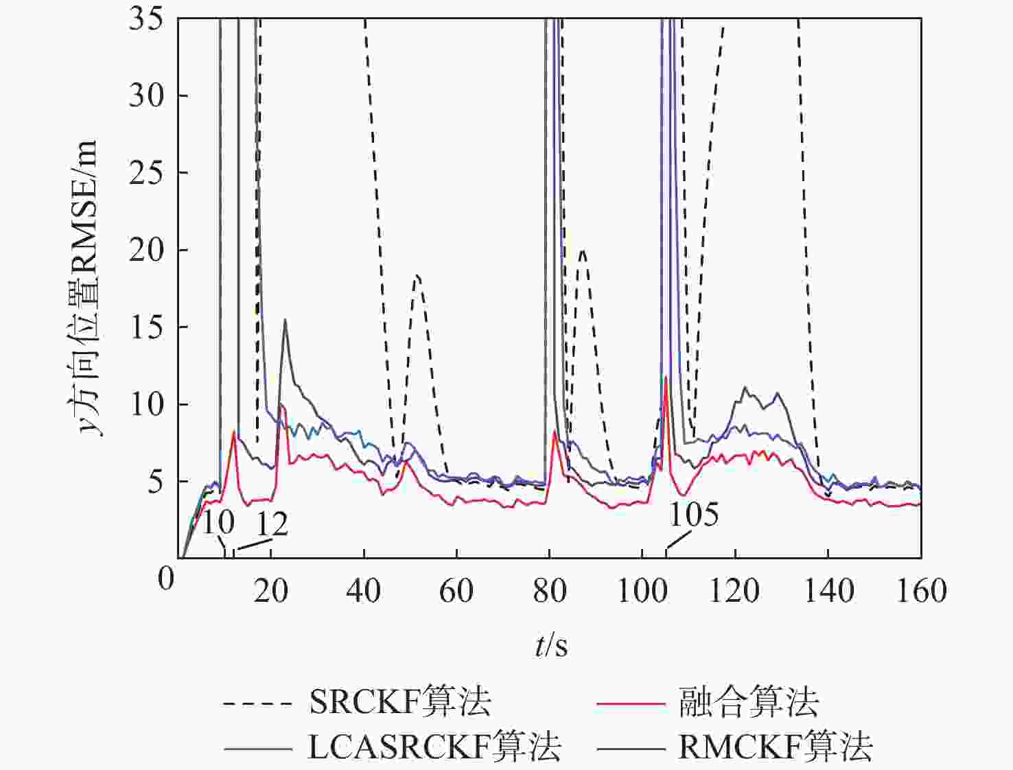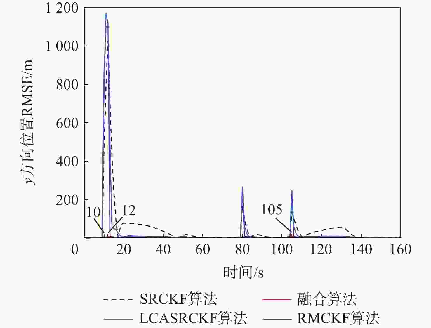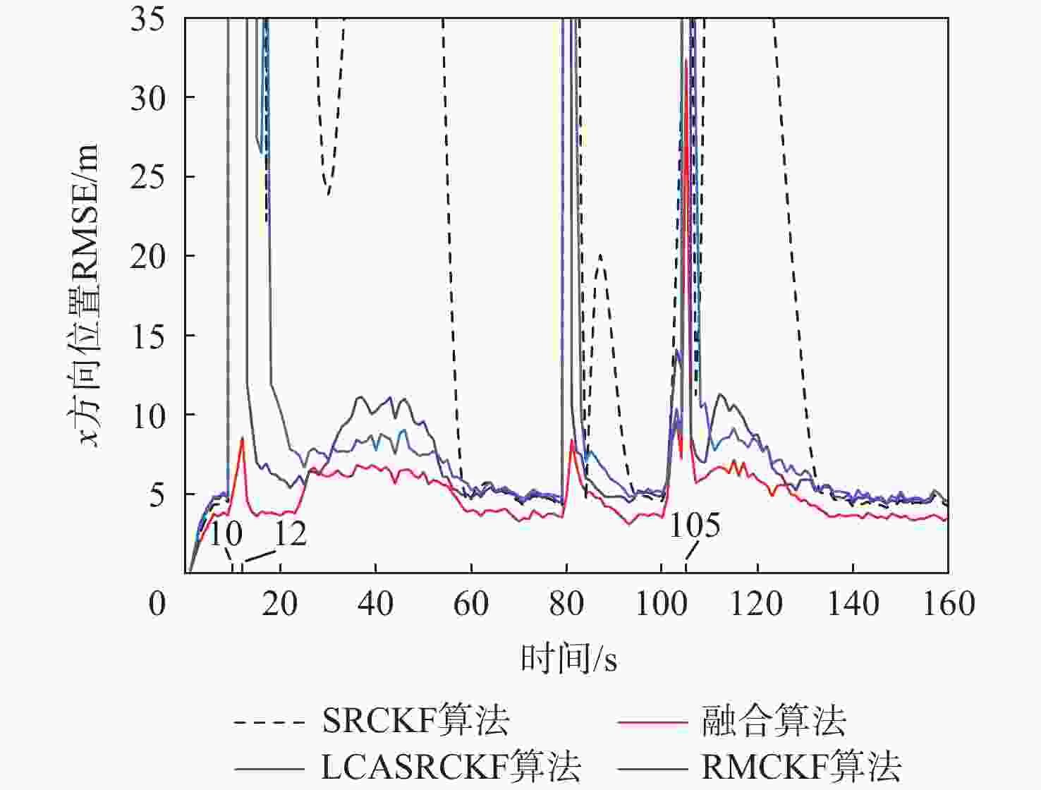 平均RMSE/m融合算法 4.7445 4.7114 SRCKF 21.0091 17.7316 LCASRCKF 6.2121 6.1881 RMCKF 6.5870 6.3279 表 2 平均RMSE对比(场景2)