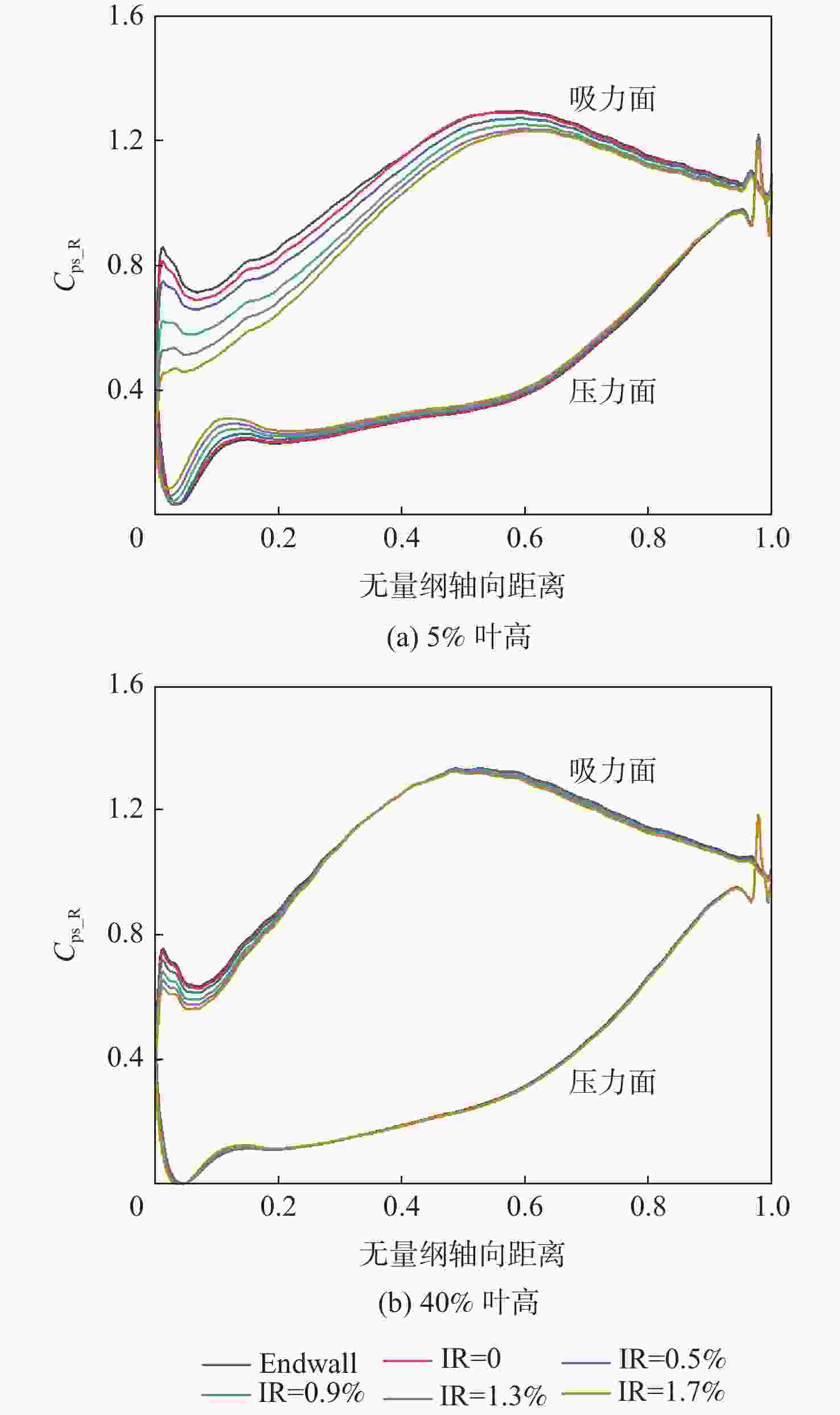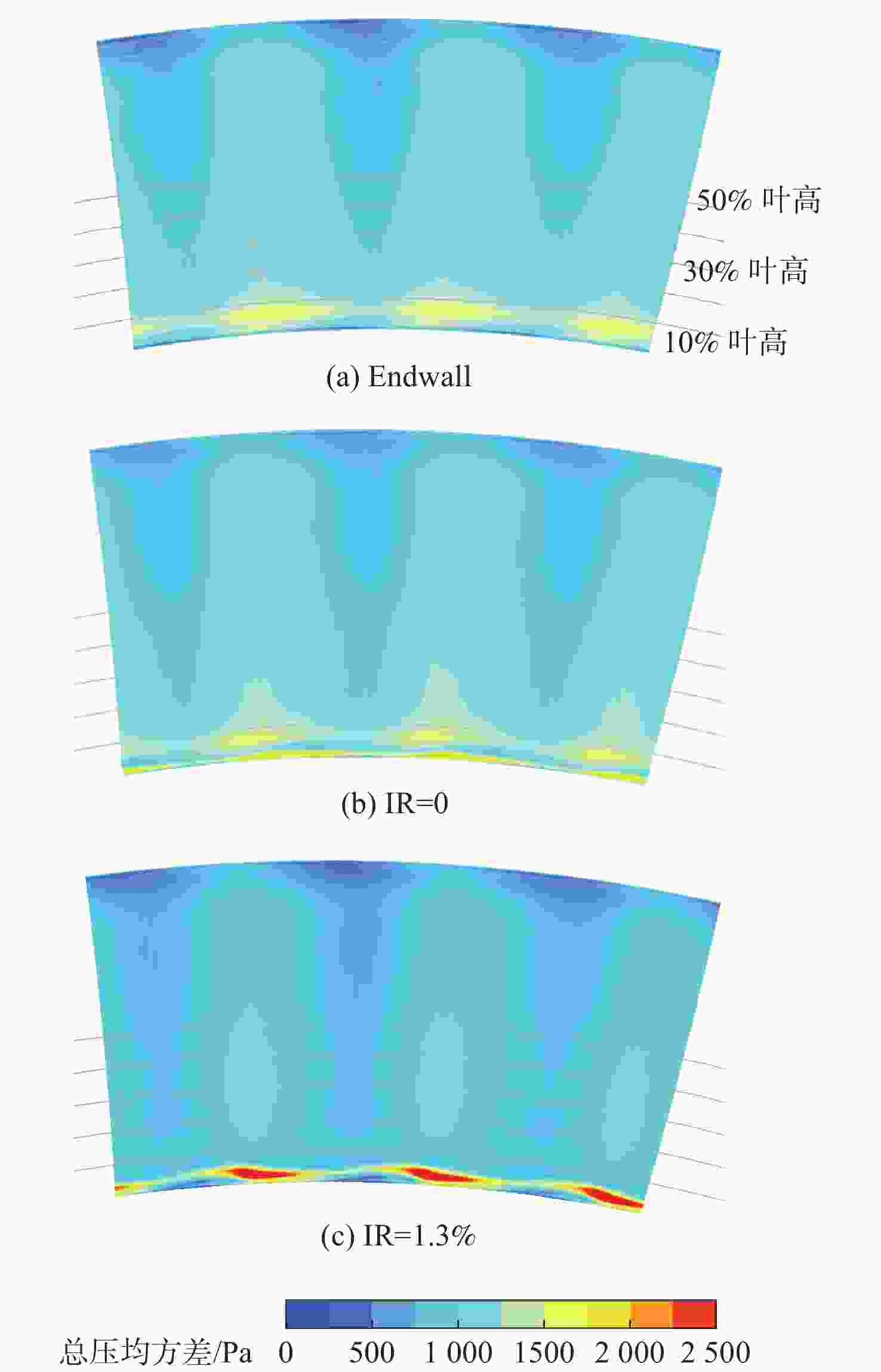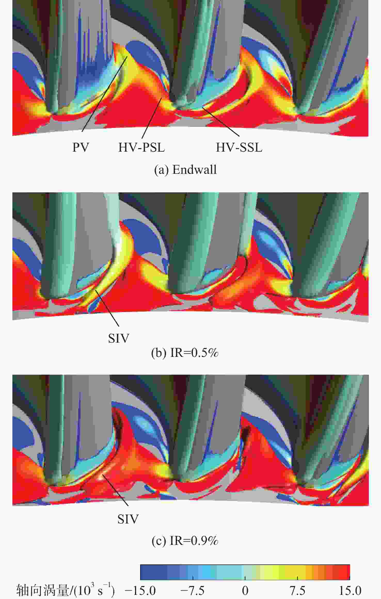 为了研究涡轮转静盘腔间轮缘封严结构对下游动叶通道内流动的影响,对无封严结构、无封严气流及采用不同封严流量时涡轮动叶通道内流场分布和气动损失进行了数值模拟。结果表明:封严腔出口位置气流受静叶与动叶相对位置变化的影响呈现较强的非定常特性,变化与动叶运动周期保持一致。动叶入口位置非定常波动受到封严气流与前缘势场共同作用,封严气流引起周向、径向速度变化的同时也造成了强烈的非定常效应。动叶通道内封严气流引起的端区气流偏转改变了前缘马蹄涡滞止点位置,增强了马蹄涡压力面分支,动叶吸力面一侧剪切诱导涡改变了轮毂通道涡的形成机制和吸力面侧相对低压区的位置。