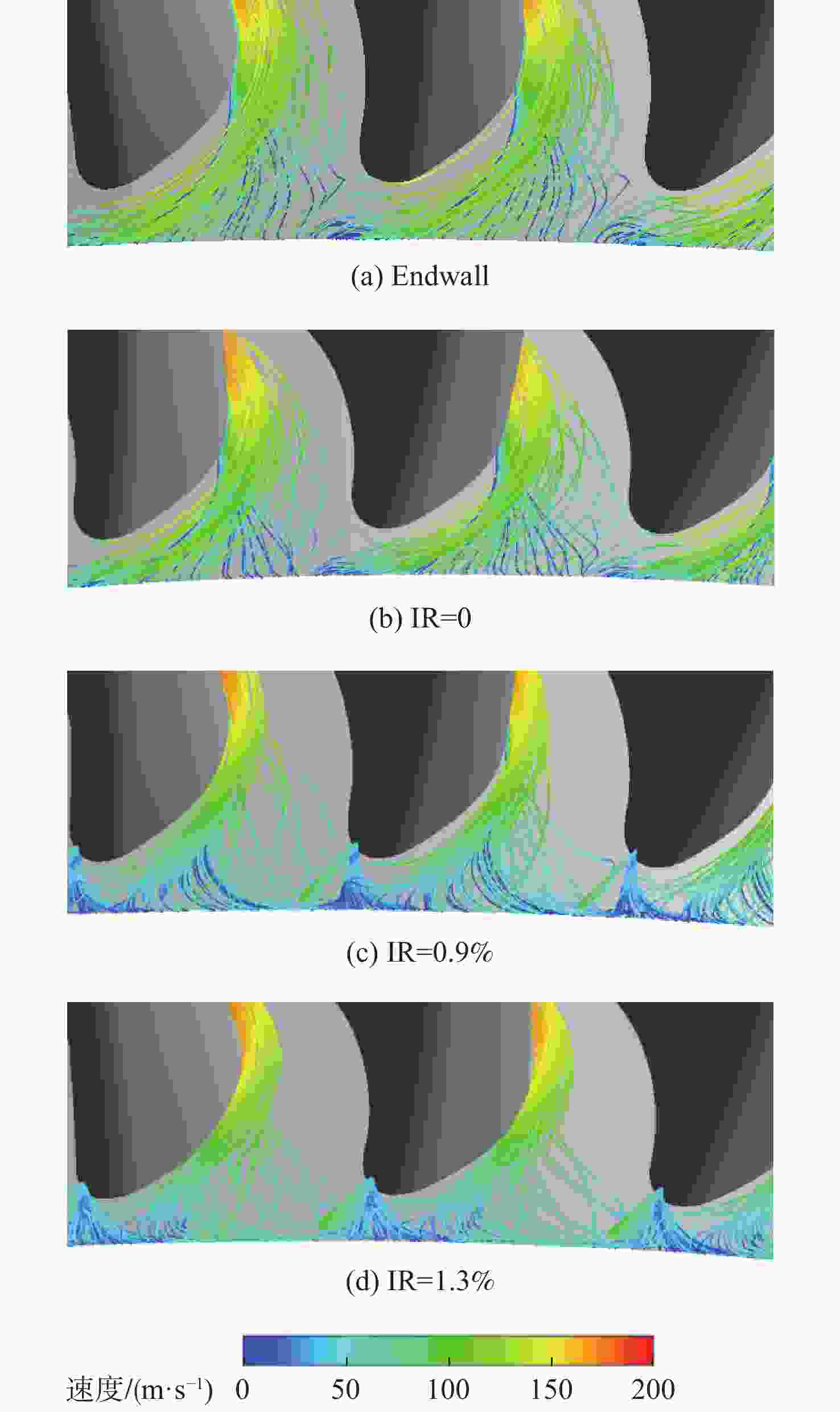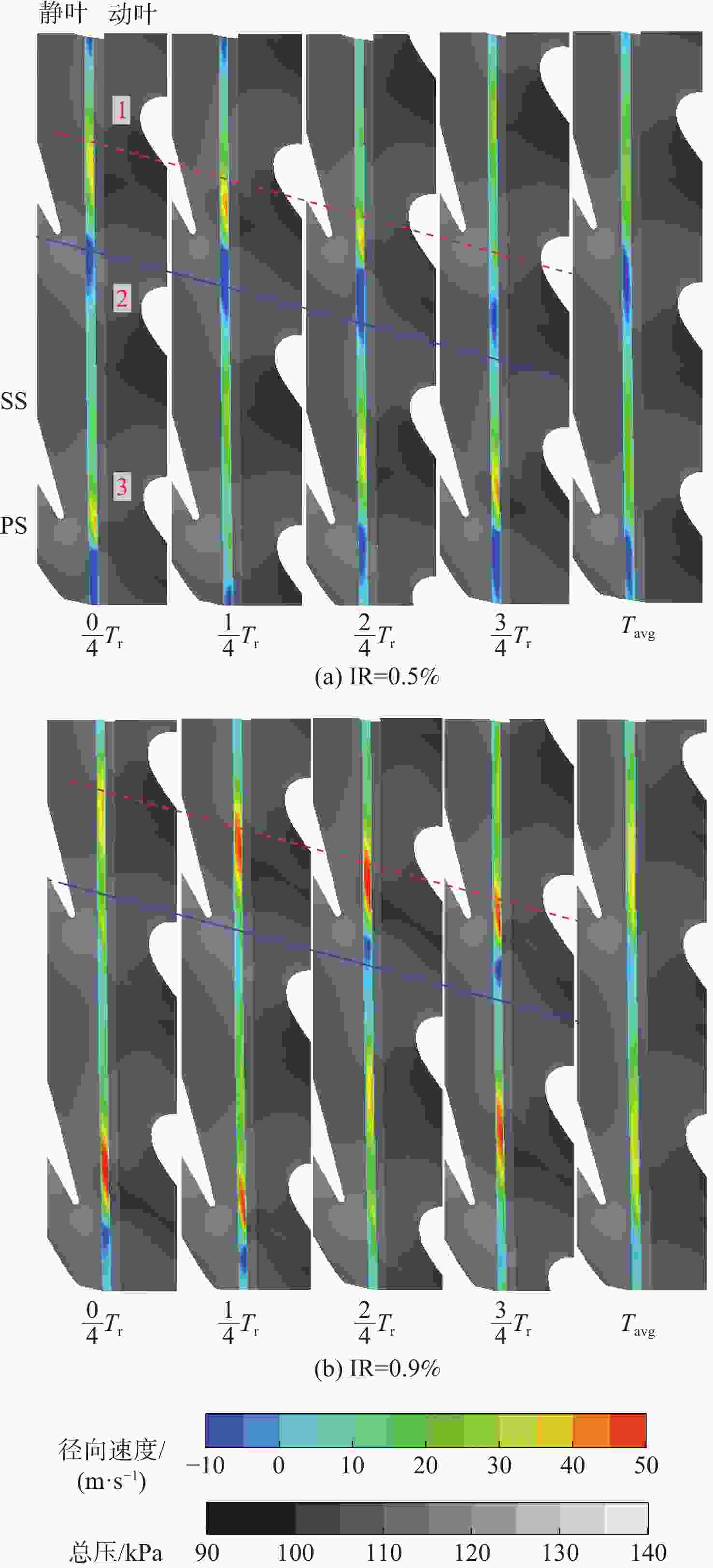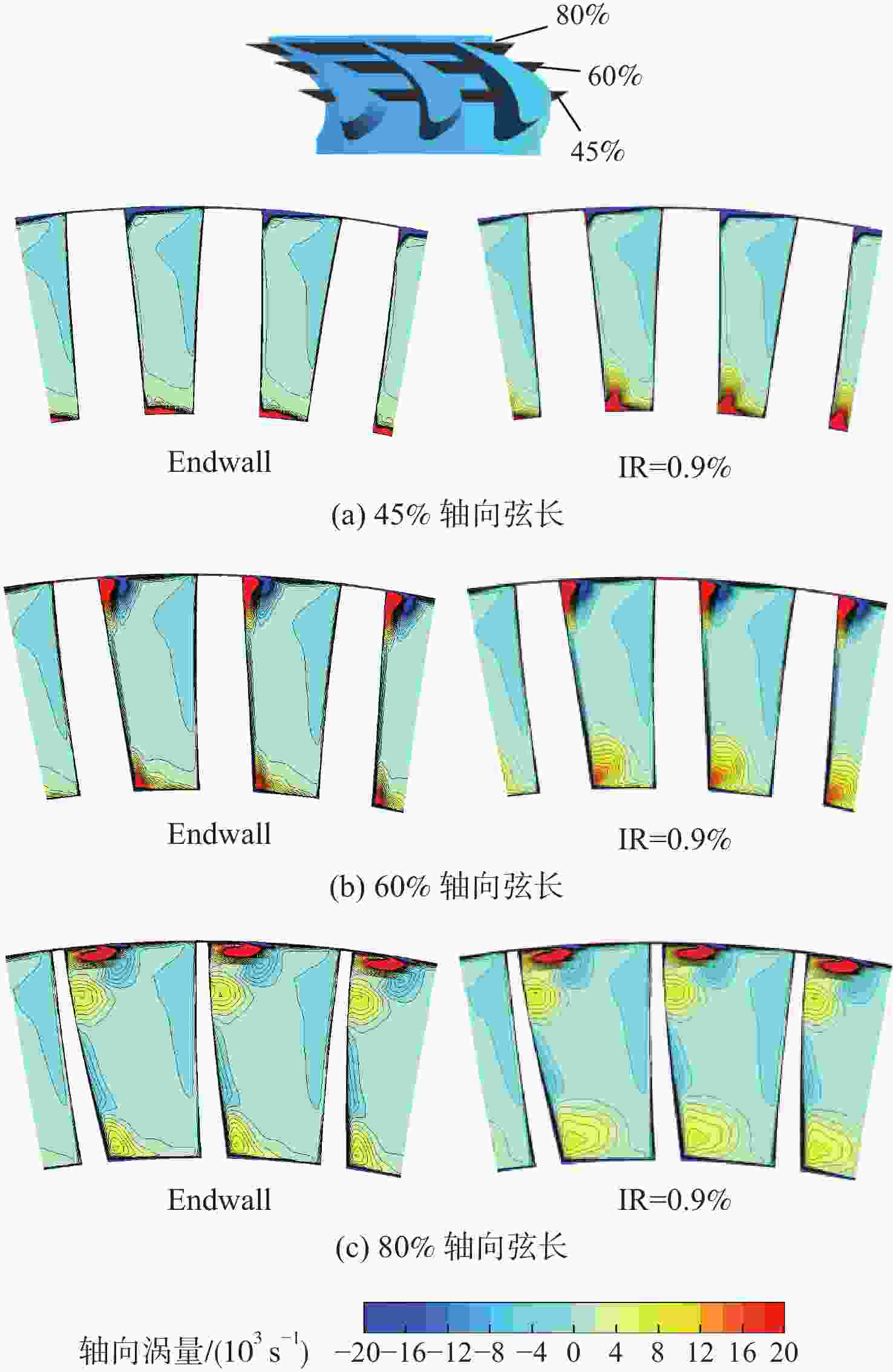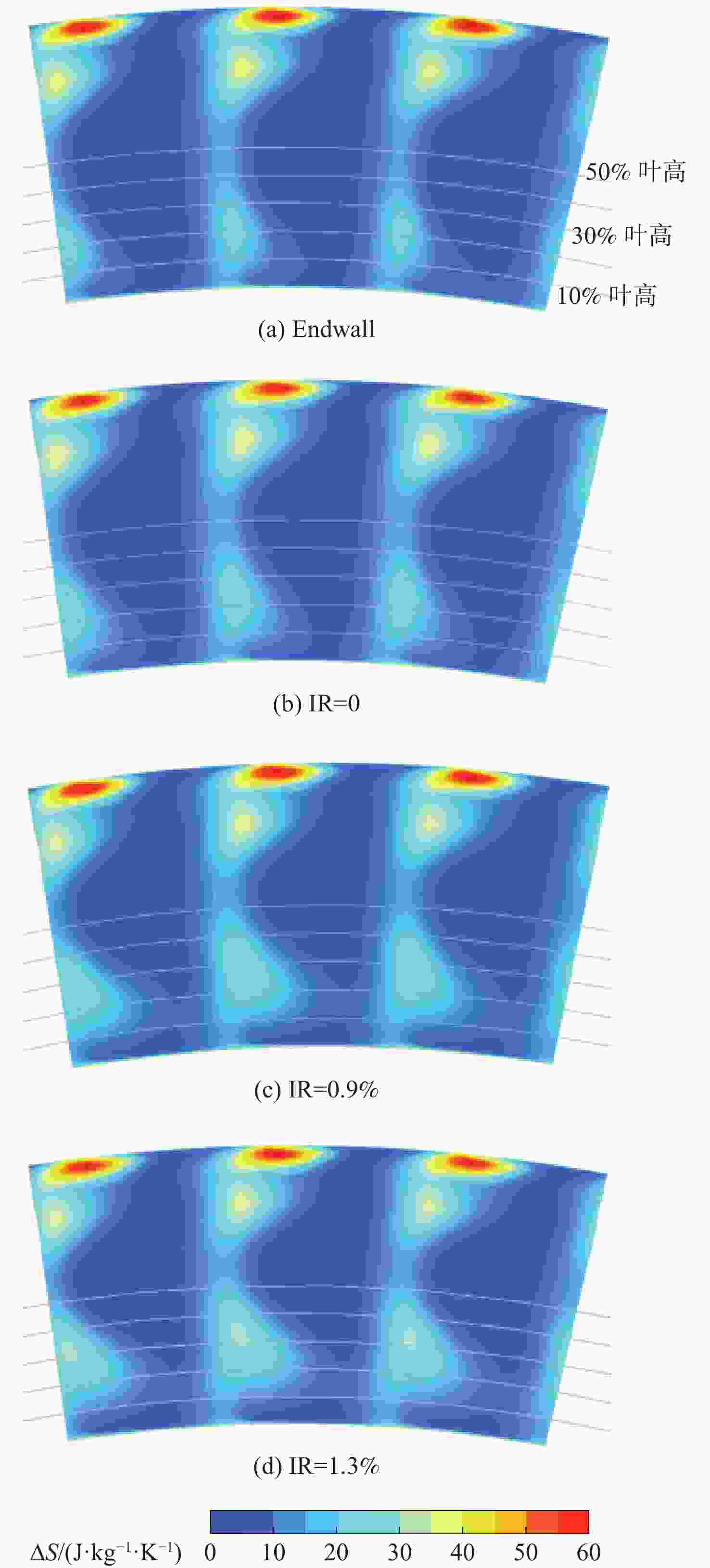 为了研究涡轮转静盘腔间轮缘封严结构对下游动叶通道内流动的影响,对无封严结构、无封严气流及采用不同封严流量时涡轮动叶通道内流场分布和气动损失进行了数值模拟。结果表明:封严腔出口位置气流受静叶与动叶相对位置变化的影响呈现较强的非定常特性,变化与动叶运动周期保持一致。动叶入口位置非定常波动受到封严气流与前缘势场共同作用,封严气流引起周向、径向速度变化的同时也造成了强烈的非定常效应。动叶通道内封严气流引起的端区气流偏转改变了前缘马蹄涡滞止点位置,增强了马蹄涡压力面分支,动叶吸力面一侧剪切诱导涡改变了轮毂通道涡的形成机制和吸力面侧相对低压区的位置。