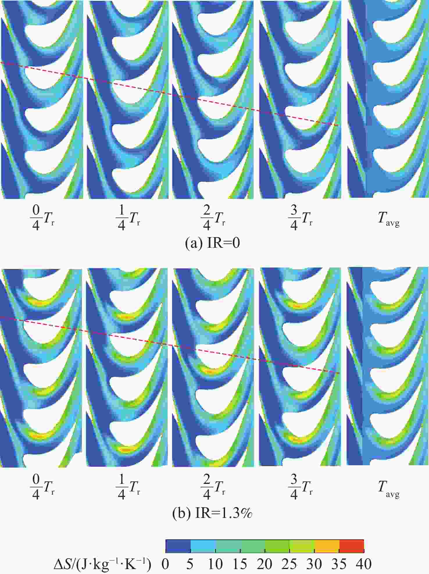 Abstract:In order to study the influence of the rim seal between the turbine wheelspace on the downstream rotor passage, numerical simulations were performed on the flow field distribution and aerodynamic loss in the turbine rotor passage when unsealed cavity, unsealed air flow and different purge flow rates were employed. The research results show that the airflow at the exit of the sealed cavity is affected by the relative position change of the stator and the rotor, showing a strong unsteady characteristic, and the change is consistent with the motion period of the rotor. The unsteady fluctuation of the inlet position of the rotor is affected by the purge flow and the leading edge potential field. The purge flow causes circumferential and radial velocity changes as well as a strong unsteady effect. The deflection of the main flow in the end wall caused by the purge flow in the rotor passage changes the stagnation point of the horseshoe vortex on the leading edge and strengthens the pressure side leg of the horseshoe vortex. The shear induced vortex on the suction side of the blade changes the formation mechanism of the hub passage vortex, and the position of the suction side relative to the low pressure area.