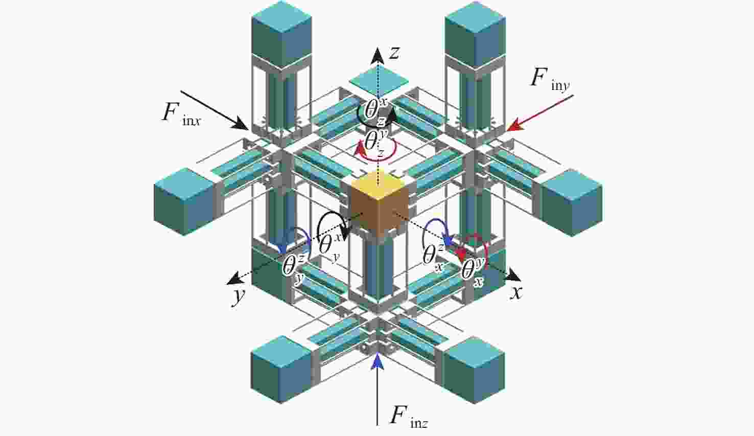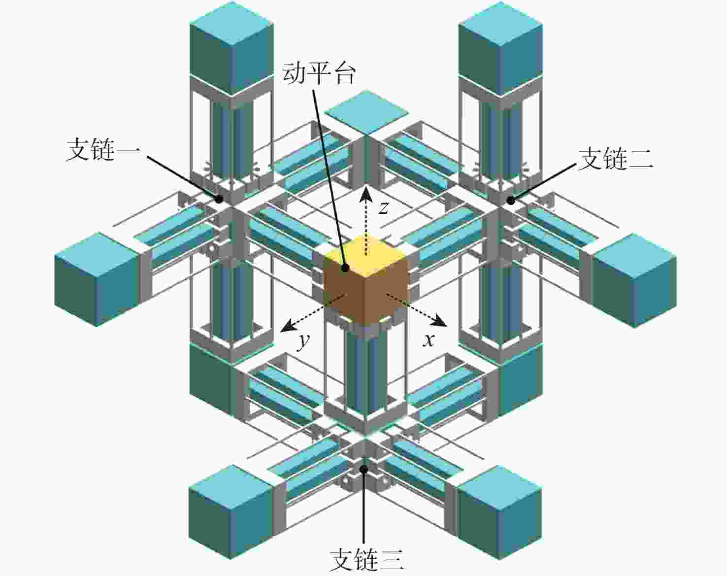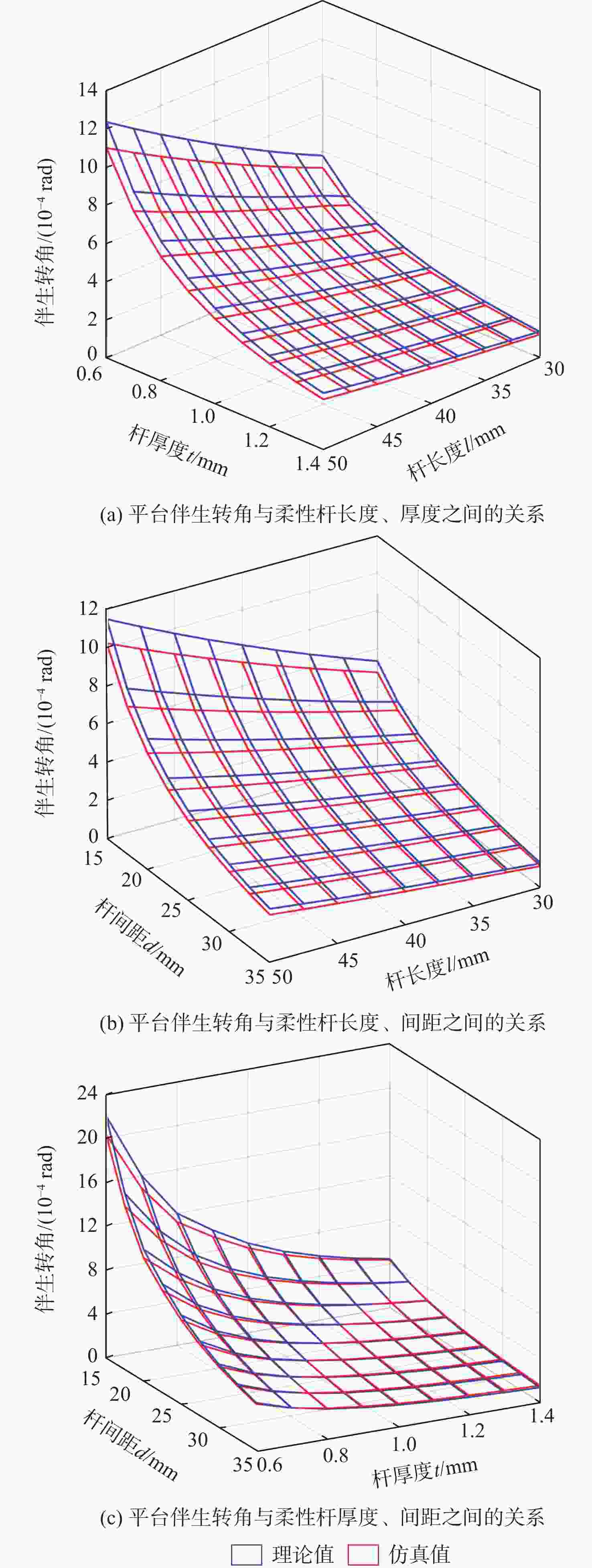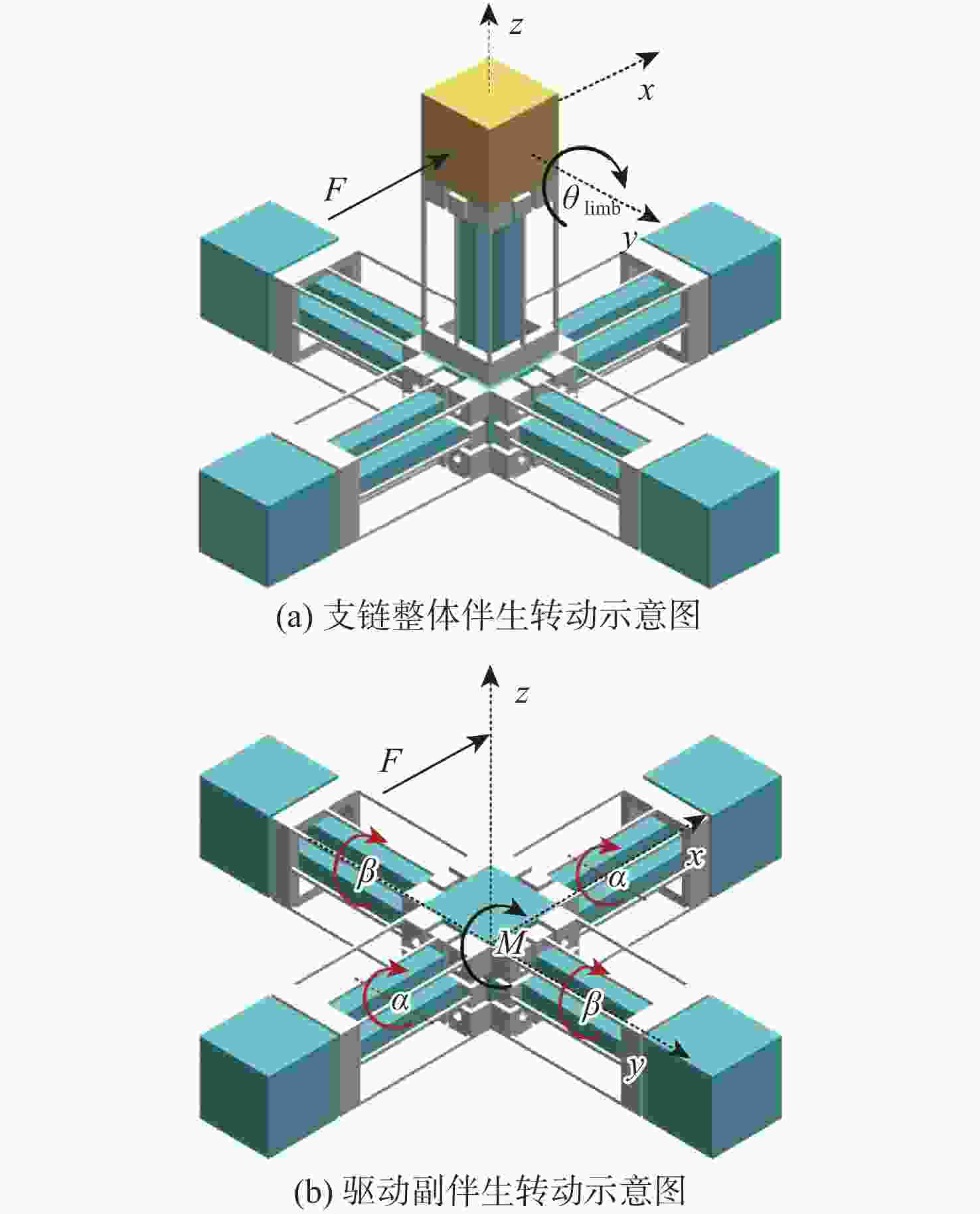 运动状态 伴生转角 理论值/rad 仿真值/rad 相对误差/% 单支链 ${\theta _{{\text{limb}}}}$ 8.96×10−4 8.77×10−4 2.12 x单轴 $\theta _y^x$ 4.48×10−4 4.39×10−4 2.01 $\theta _z^x$ 4.48×10−4 4.40×10−4 1.79 x、y