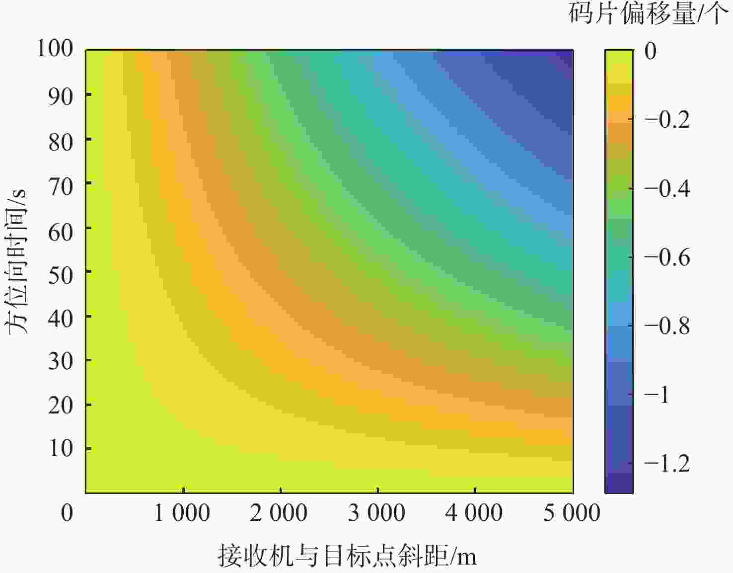 针对目前基于全球导航卫星系统反射信号的双基地合成孔径雷达(GNSS-R BSAR)在一站固定模式下的大斜视,斜距历程复杂,回波信号方位空变导致回波信号难以处理的问题,提出改进的距离多普勒成像新算法。所提算法采用GNSS信号作为辐射源,根据一站固定模式下GNSS-R BSAR合成孔径时间长的特点,引入高阶等效斜视距离模型,得到导航卫星与目标斜距相对时间变化的精确描述。先通过直射信号与回波信号时域对消进行距离徙动校正,实现全场景目标距离徙动的精确校正;再通过方位向分块混合相关处理来克服回波信号方位向的移变性质,实现全场景高效精确成像。所提算法的成像效率优于传统后向投影时域(BP)算法,成像精度与BP算法相当,且可根据需要通过调整方位分块的宽度来提升聚焦效果。最后,用GPS-L5 信号进行仿真和实验,仿真和实验结果验证了所提算法的可行性和高效性。