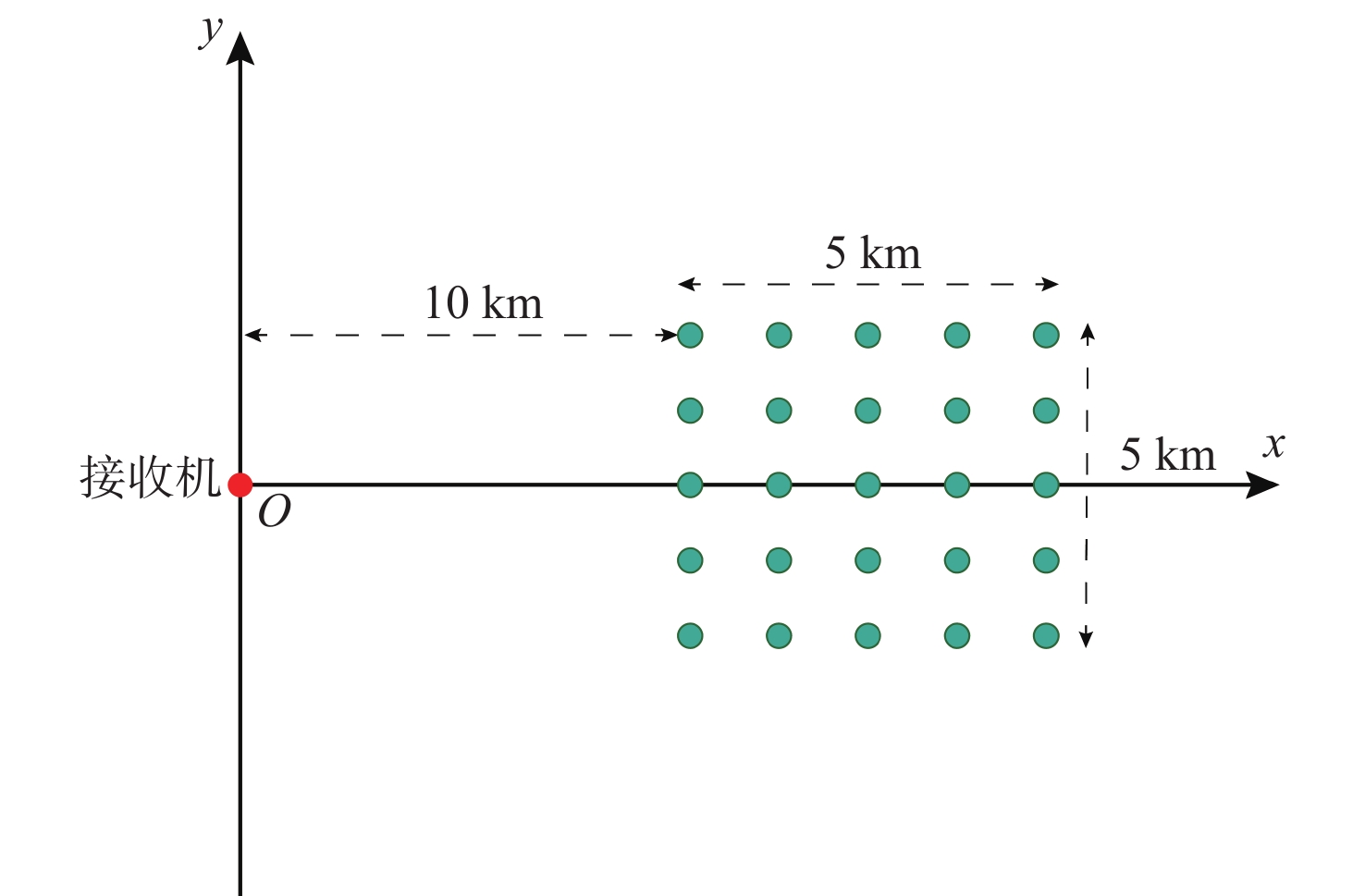 坐标 卫星位置/km 卫星速度/(m·s−1) 接收机位置/m 目标点/m x 11769 500.96 0 1~5000 y 1124.8 2891.8 0 0 z 12482 −369.24 1000 0 表 2 仿真参数
