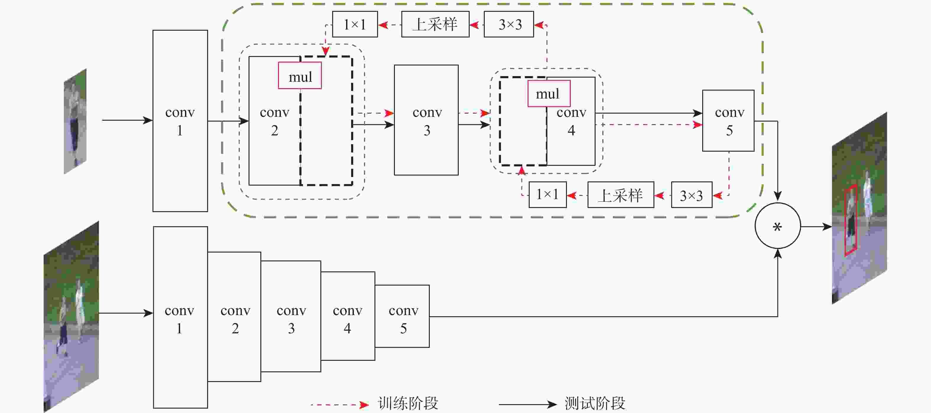 Abstract:In order to improve the feature expression ability of the Siamese network without deepening the network, a Siamese network tracking algorithm was propose based on high-level semantic embedding. First, a semantic embedding module was designed with convolution and up-sampling operations, which effectively integrated deep features with shallow features, thus achieving the purpose of optimizing shallow features, and this module can be flexibly designed and deployed for any network. Then, under the Siamese network framework, two semantic embedding modules were added between different layers of the AlexNet backbone network. Cyclic optimization was carried out in the offline training stage to gradually transfer the deep semantic information to the shallow feature layer. In the tracking stage, the semantic embedding module was abandoned and the original network structure was adopted. The experimental results show that compared with SiamFC on the OTB2015 data set, the accuracy is improved by 0.102 and the success rate is increased by 0.054.