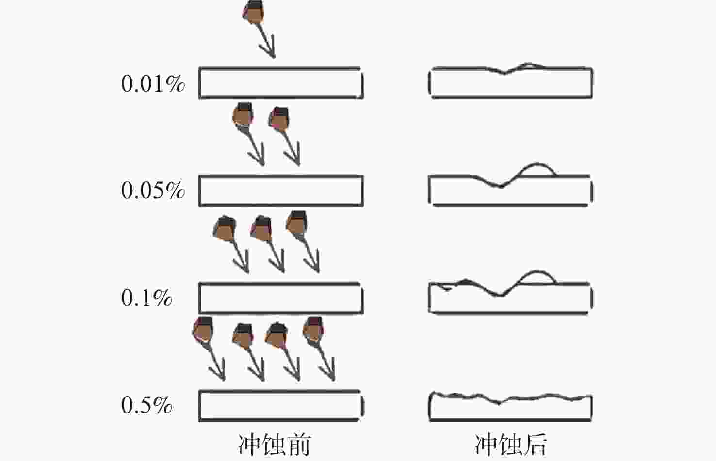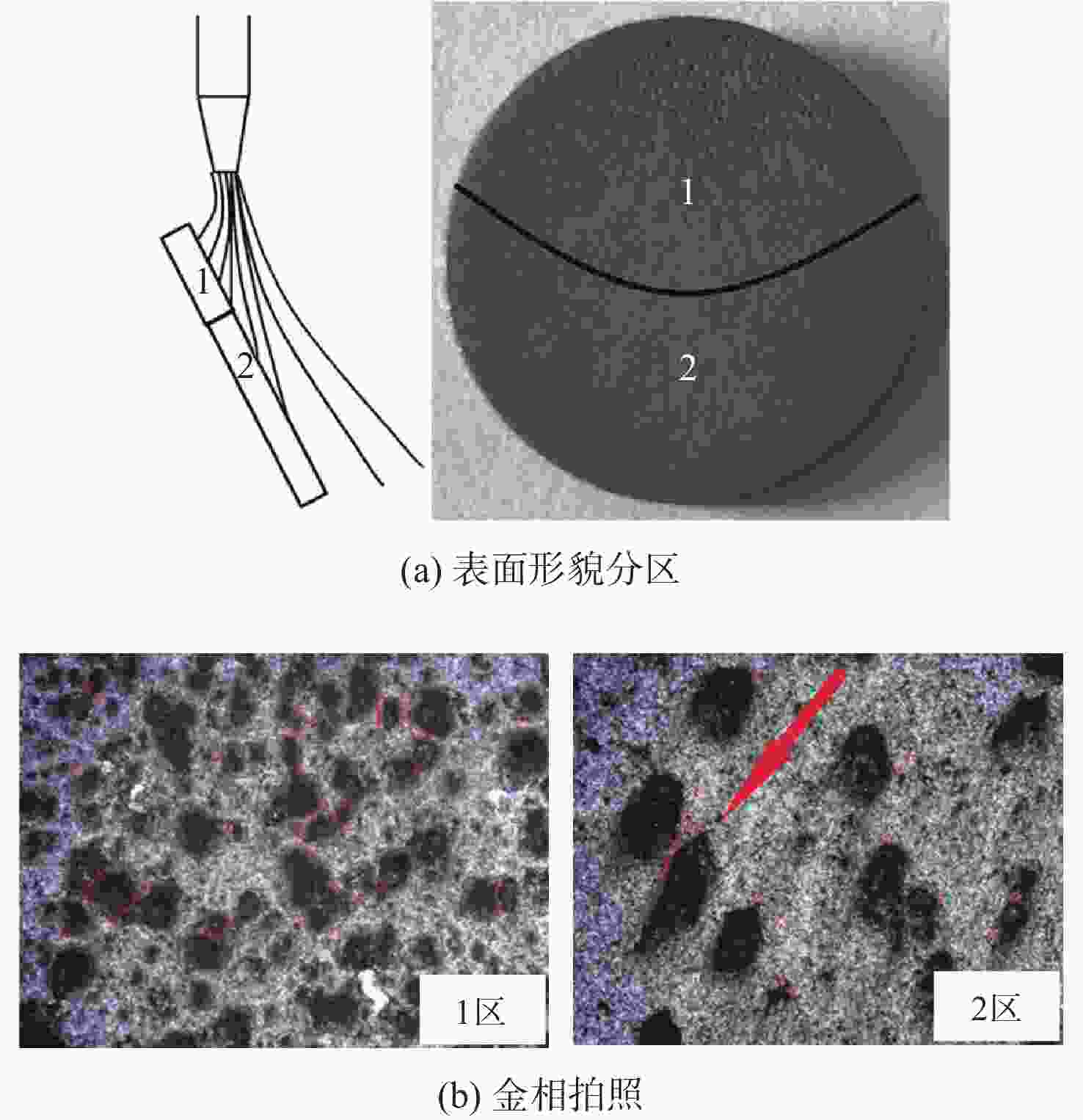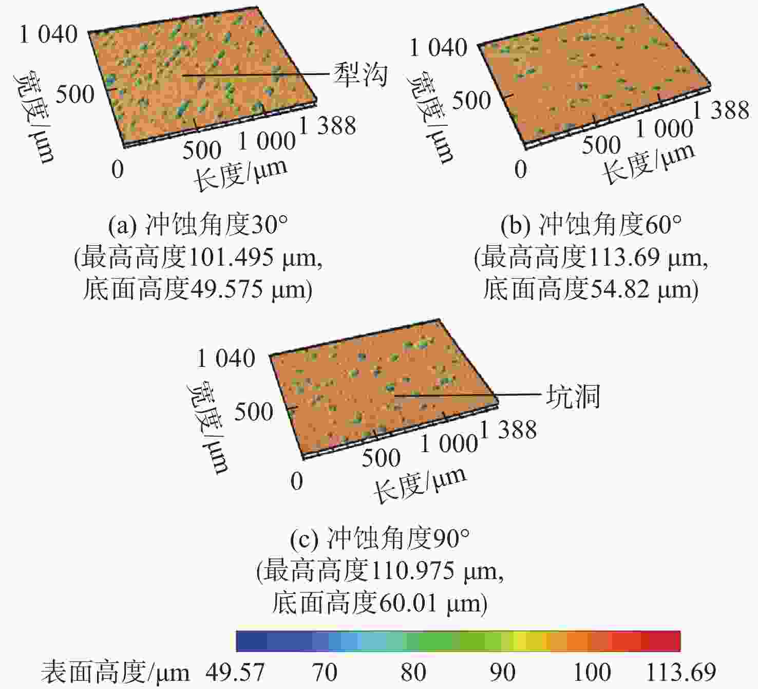 冲蚀角度/(°) 分区 平均长径比 数量 坑洞比例/% 犁沟比例/% 30 1区 1.29 54 63.5 36.5 2区 1.69 12 25.7 74.3 90 1区 1.11 51 90. 9.8 2区 1.14 69 87.3 12.7 3区 1.19 30 72.1 27.9 -