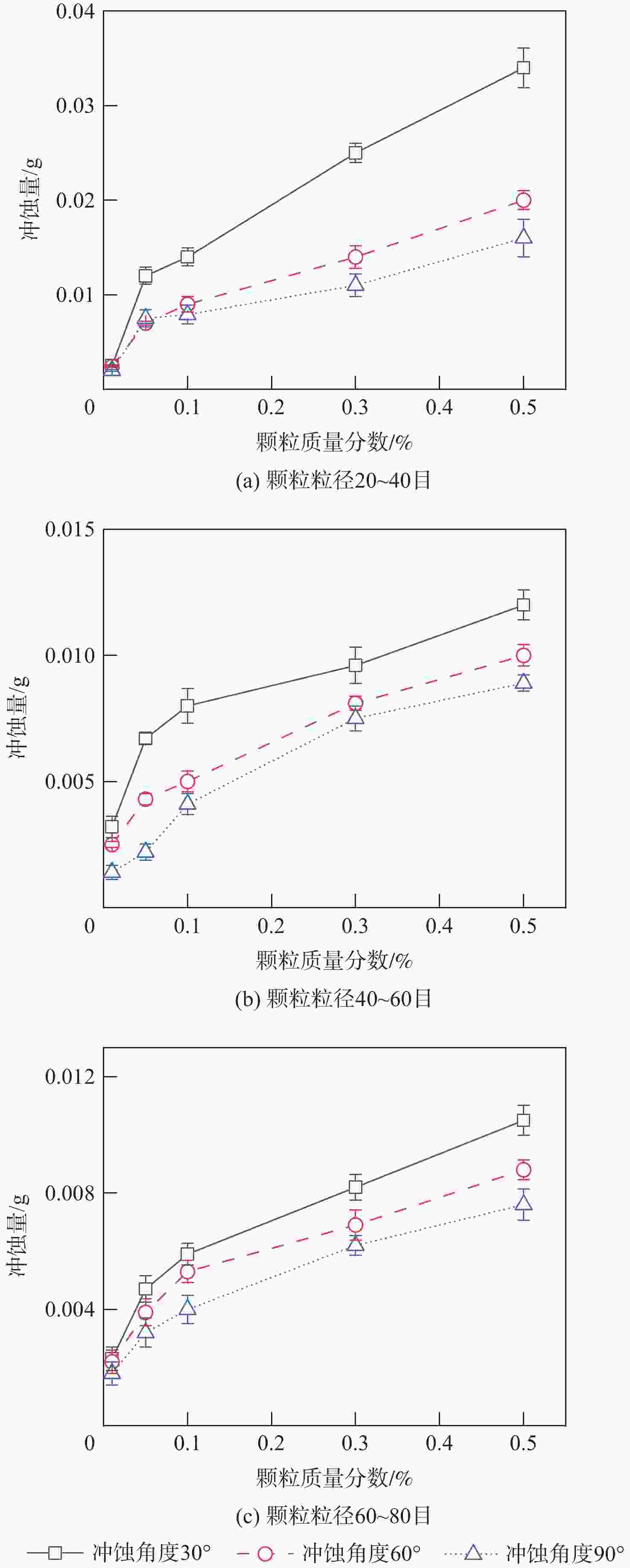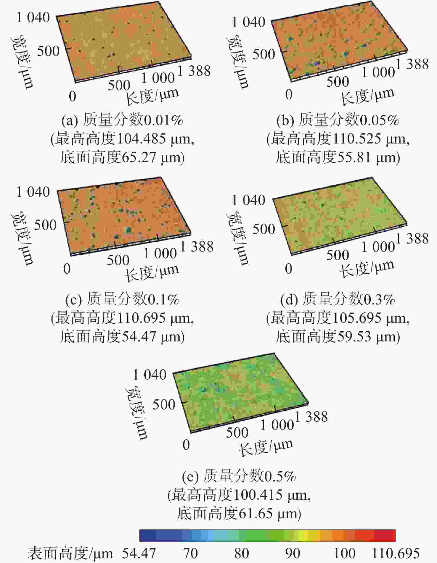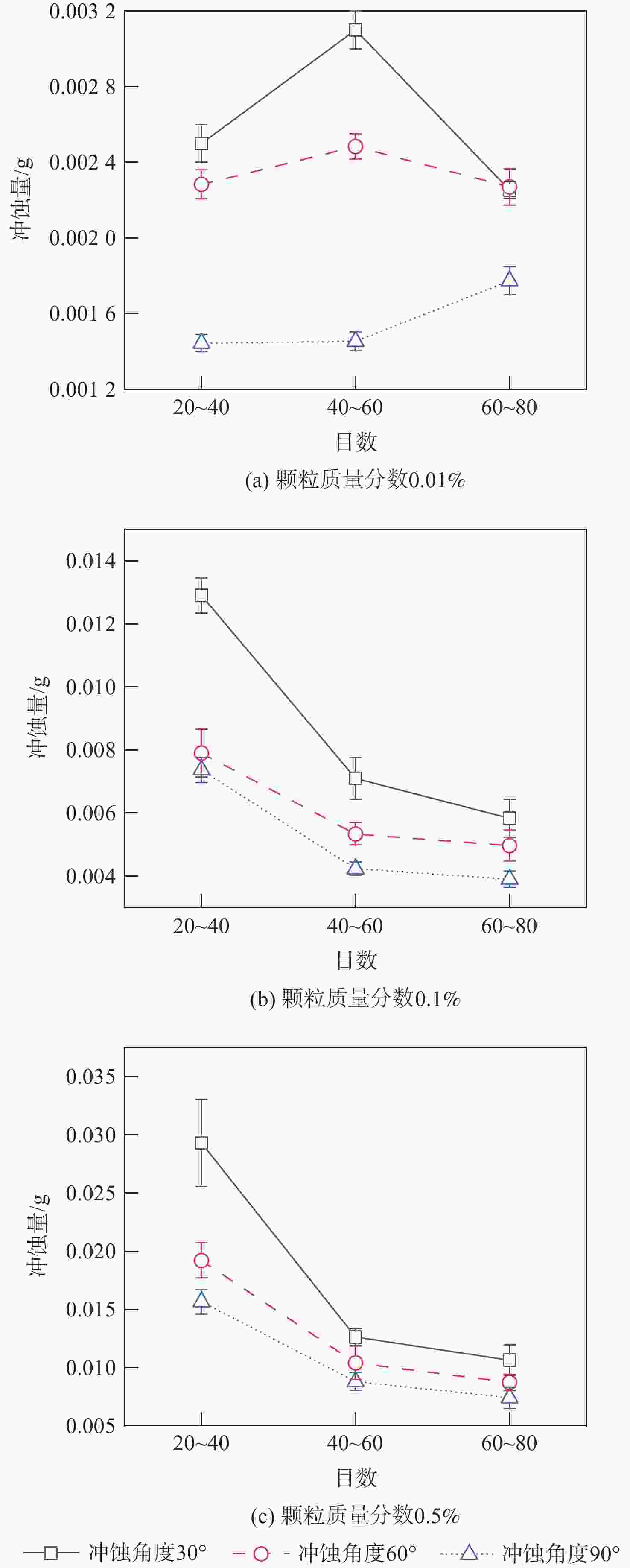 参数 数值 颗粒材料 SiO2 颗粒质量分数/% 0.01、0.05、0.1、0.3、0.5 颗粒粒径/目 20~40、40~60、60~80 冲蚀角度/(°) 15、30、45、60、75、90 冲蚀温度/℃ 40~50 喷嘴高度/mm 50 冲蚀时间/h 0~24 冲击速度/(m·s−1) 10 表 4 表面形貌特征参数