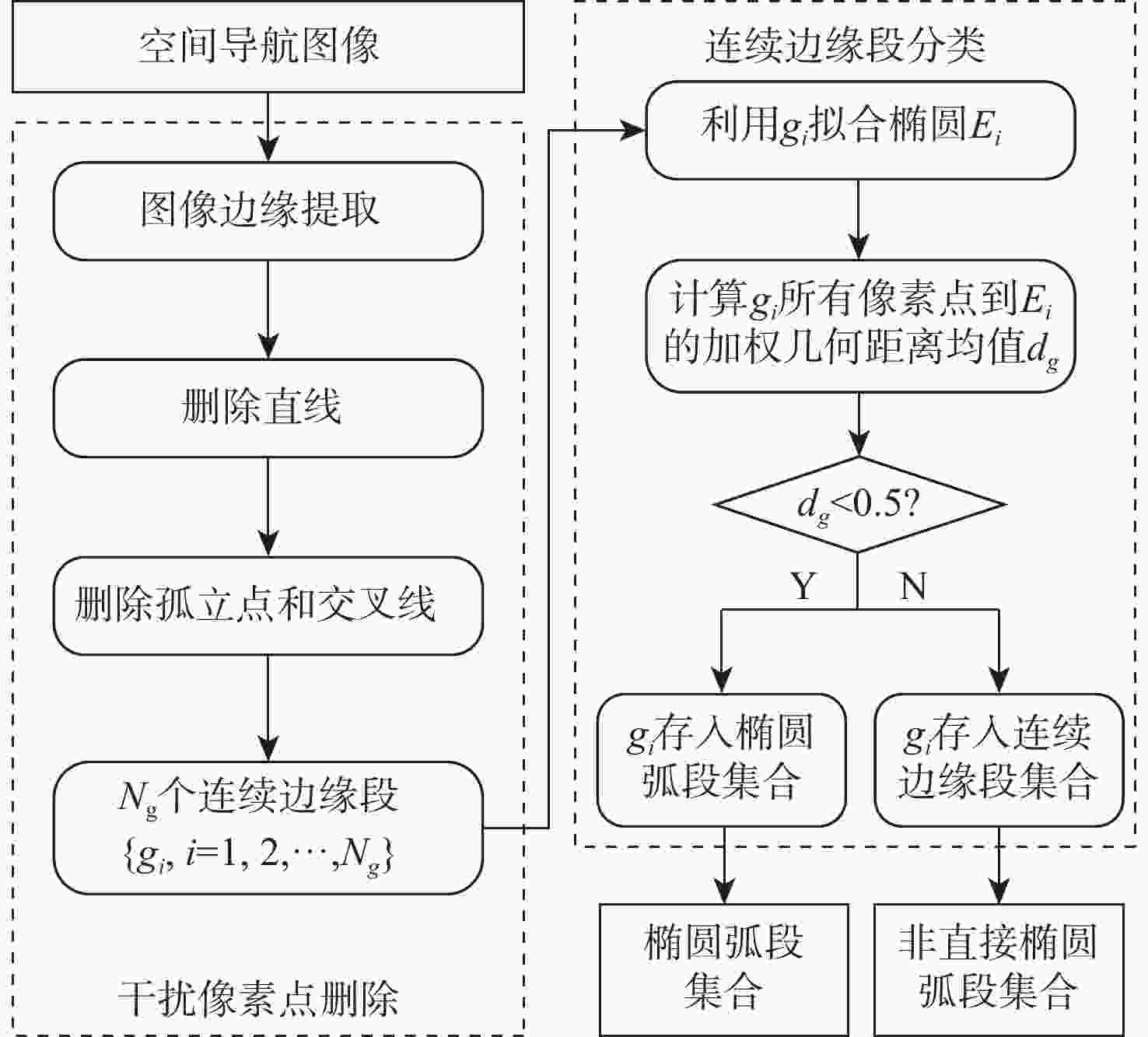 [1] LIU C, HU W. Relative pose estimation for cylinder-shaped spacecrafts using single image[J]. IEEE Transactions on Aerospace and Electronic Systems, 2014, 50(4): 3036-3056. doi: 10.1109/TAES.2014.120757 [2] LU T, HU W, LIU C, et al. Relative pose estimation of a lander using crater detection and matching[J]. Optical Engineering, 2016, 55(2): 023102. doi: 10.1117/1.OE.55.2.023102 [3] SU S, LUO Y, YANG K, et al. A novel camera calibration method based on multilevel-edge-fitting ellipse-shaped analytical model[J]. IEEE Sensors Journal, 2020, 20(11): 5818-5826. doi: 10.1109/JSEN.2020.2972615 [4] 梁琼, 赵慧民, 葛任贤, 等. 基于椭圆拟合的改进Hough变换算法在眼控系统中的应用研究[J]. 广东技术师范大学学报, 2020, 41(3): 9-15. doi: 10.3969/j.issn.1672-402X.2020.06.003LIANG Q, ZHAO H M, GE R X, et al. Application of improved Hough transform algorithm based on ellipse fitting in eye-control system[J]. Journal of Guangdong Polytechnic Normal University, 2020, 41(3): 9-15(in Chinese). doi: 10.3969/j.issn.1672-402X.2020.06.003 [5] 李迎松, 郑顺义, 夏远鑫, 等. 自然环境下圆形禁令交通标志检测[J]. 武汉大学学报(信息科学版), 2016, 41(12): 1619-1625.LI Y S, ZHENG S Y, XIA Y X, et al. Detection of round ban traffic signs in natural environment[J]. Geomatics and Information Science of Wuhan University, 2016, 41(12): 1619-1625(in Chinese). [6] 段志达, 魏利胜, 刘小珲, 等. 基于Hough变换圆检测和边缘模板匹配的轴承缺陷检测与定位[J]. 安徽工程大学学报, 2020, 35(4): 60-68. doi: 10.3969/j.issn.2095-0977.2020.04.007DUAN Z D, WEI L S, LIU X H, et al. Bearing defect detection and location based on Hough transform circle detection and edge template matching[J]. Journal of Anhui Polytechnic University, 2020, 35(4): 60-68(in Chinese). doi: 10.3969/j.issn.2095-0977.2020.04.007 [7] DUAD R O. Use of the Hough transformation to detect lines and curves in pictures[J]. Communications of the ACM, 1972, 15(1): 11-15. [8] MUKHOPADHYAY P, CHAUDHURI B B. A survey of Hough transform[J]. Pattern Recognition, 2015, 48(3): 993-1010. [9] MCLAUGHLIN R A. Randomized Hough transform: Improved ellipse detection with comparison[J]. Pattern Recognition Letters, 1998, 19(3-4): 299-305. doi: 10.1016/S0167-8655(98)00010-5 [10] KIRYATI N, ELDAR Y, BRUCKSTEIN A M. A probabilistic Hough transform[J]. Pattern Recognition, 1991, 24(4): 303-316. doi: 10.1016/0031-3203(91)90073-E [11] LU W, TAN J. Detection of incomplete ellipse in images with strong noise by iterative randomized Hough transform (IRHT)[J]. Pattern Recognition, 2008, 41(4): 1268-1279. doi: 10.1016/j.patcog.2007.09.006 [12] KIM E, HASEYAMA M, KITAJIMA H. Fast and robust ellipse extraction from complicated images[C]//Proceedings of the First International Conference on Information Technology and Applications. Piscataway: IEEE Press, 2002: 357-362. [13] HAHN K, JUNG S, HAN Y, et al. A new algorithm for ellipse detection by curve segments[J]. Pattern Recognition Letters, 2008, 29(13): 1836-1841. doi: 10.1016/j.patrec.2008.05.025 [14] MAI F, HUNG Y S, ZHONG H, et al. A hierarchical approach for fast and robust ellipse extraction[J]. Pattern Recognition, 2008, 41(8): 2512-2524. doi: 10.1016/j.patcog.2008.01.027 [15] LIU Z Y, QIAO H. Multiple ellipses detection in noisy environments: A hierarchical approach[J]. Pattern Recognitio, 2009, 42(11): 2421-2433. [16] NGUYEN T M, AHUJA S, WU Q, et al. A real-time ellipse detection based on edge grouping[C]//Proceedings of IEEE International Conference on Systems, Man and Cybernetics. Piscataway: IEEE Press, 2009: 3280-3286. [17] KANATANI K, SUGAYA Y. Compact algorithm for strictly ML ellipse fitting[C]//Proceedings of International Conference on Pattern Recognition. Piscataway: IEEE Press, 2009: 1-4. [18] WIJEWICKREMA S, ESSON C, PAPLINSKI A. Orthogonal distance least squares fitting: A novel approach[C]//Proceedings of International Joint Conference on Computer Vision, Imaging and Computer Graphics Theory and Applications. Piscataway: IEEE Press, 2010: 255-268. [19] 吴福朝. 计算机视觉中的数学方法[M]. 北京: 科学出版社, 2008: 40-60.WU C F. Mathematical methods in computer vision[M]. Beijing: Science Press, 2008: 40-60(in Chinese). [20] CANN J. A computational approach to edge detection[J]. IEEE Transactions on Pattern Analysis and Machine Intelligence, 1986, 8(6): 679-698. [21] LIU C, HU W. Effective method for ellipse extraction and integration for spacecraft images[J]. Optical Engineering, 2013, 52(5): 057002. [22] ZHANG S C, LIU Z Q. A robust, real-time ellipse detector[J]. Pattern Recognition, 2005, 38(2): 273-287. doi: 10.1016/j.patcog.2004.03.014 [23] FITZGIBBON A, PILU M, FISHER R B. Direct least square fitting of ellipses[J]. IEEE Transactions on Pattern Analysis and Machine Intelligence, 1999, 21(5): 476-480. [24] IMAI H, IRI M. Polygonal approximations of a curve—Formulations and algorithms[J]. Machine Intelligence and Pattern Recognition, 1988, 6: 71-86. [25] PRASAD D K, LEUNG M K H, CHAI Q, et al. A novel framework for making dominant point detection methods non-parametric[J]. Image and Vision Computing, 2012, 30(11): 843-859. [26] KANATANI K. Statistical optimization for geometric computation: Theory and practice[M]. New York: Elsevier Science, 1996: 115-125. [27] PRASAD D K, LEUNG M K H, CHO S Y. Edge curvature and convexity based ellipse detection method[J]. Pattern Recognition, 2012, 45(9): 3204-3221. doi: 10.1016/j.patcog.2012.02.014 [28] SUGAYA Y. Ellipse detection by combining division and model selection based integration of edge points[C]//Proceedings of 4th Pacific-Rim Symposium on Image and Video Technology Image and Video Technology. Piscataway: IEEE Press, 2010: 64-69. [29] CHIA A Y, RAHARDJA S, RAJAN D, et al. A split and merge based ellipse detector with self-correcting capability[J]. IEEE Transactions on Image Processing, 2011, 20(7): 1991-2006. doi: 10.1109/TIP.2010.2099127 [30] 陆婷婷,