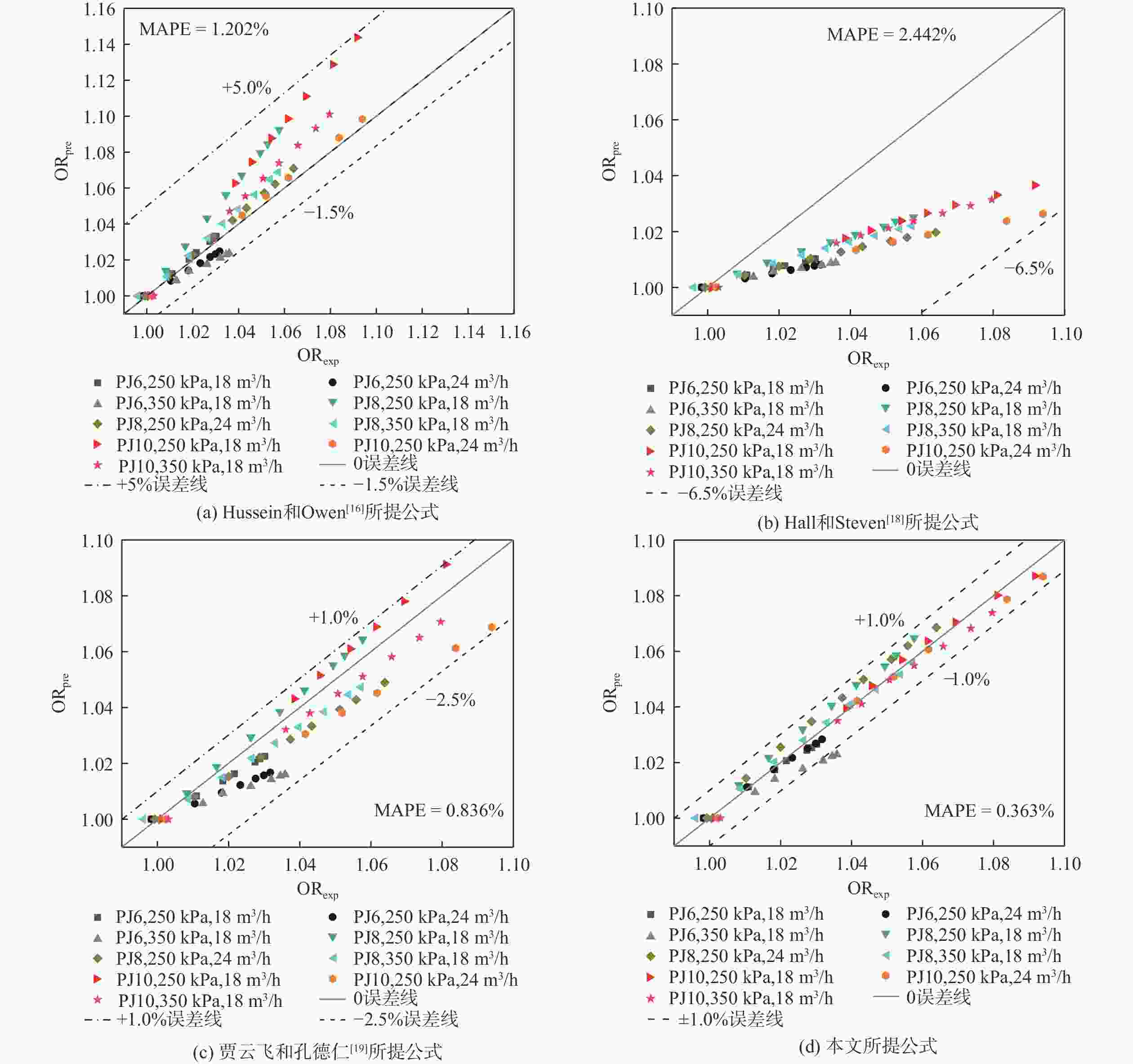 公式来源 工况压力/MPa 介质 混合方式 管径/mm 液相加载量/% 过读公式 校正精度/% Hussein和Owen [16] 0.4