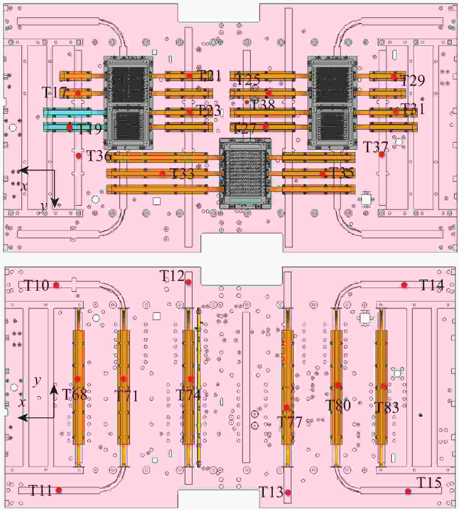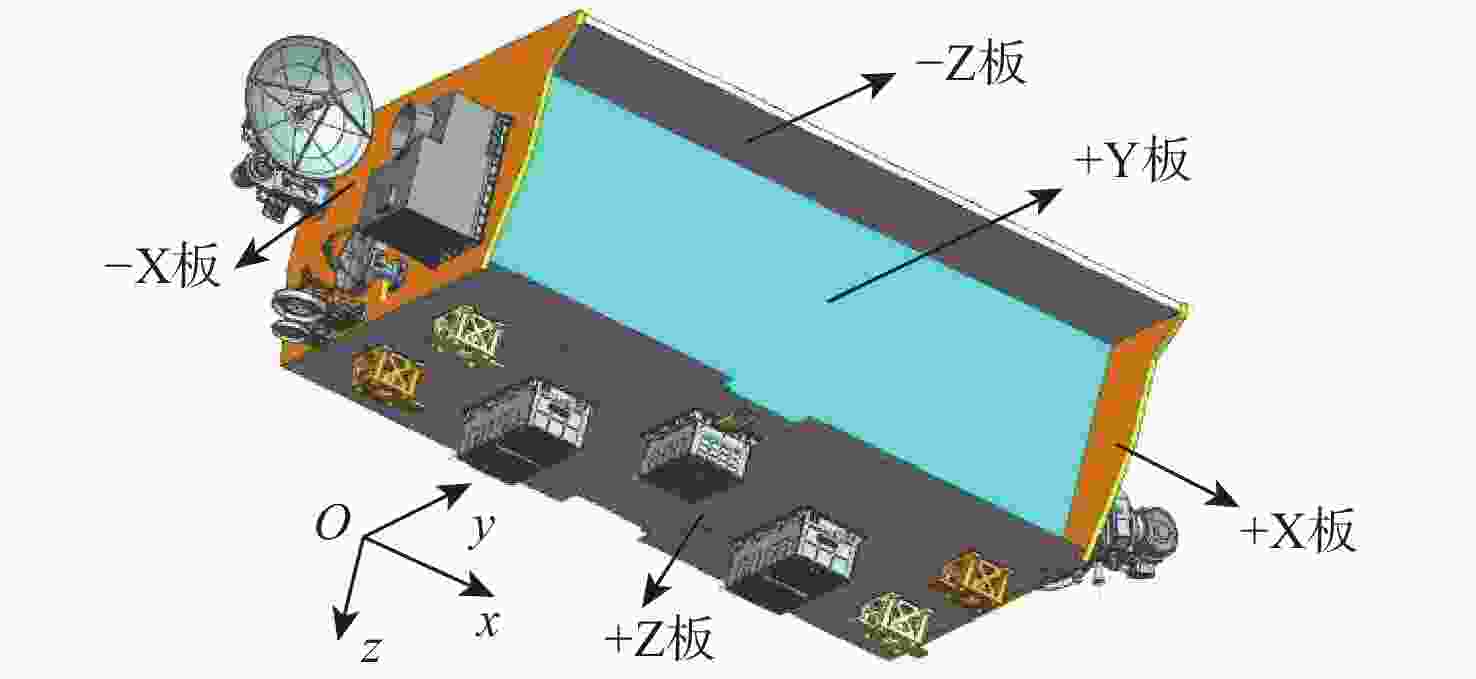 W 序号 类型 传导功率 1 YM_+Z1 41.2 2 YM_+Z2 86.2 3 YM_+Z3 41.9 4 YM_+Z4 14.6 5 YM_+Z5 43.2 6 YM_+Z6 90.2 7 YM_+Z7 41.5 8 WF_U1 39.3 9 WF_U2 47.7 10 WF_U3 35.9 11 WF_U4 36.9 12 WF_U5 50.2 13 WF_U6 37.3 14 YM_+Y1 51.9 15 YM_+Y2 40.2 16 YM_+Y3 15.7 17 YM_−Y1 31.2 18 YM_−Y2 11.0 19 YM_−Y3 3.7 20 WF_L1 15.2 21 WF_L2 18.4 22 WF_L3 19.4 23 WF_L4 16.0 表 9 蜂窝板间热流分布