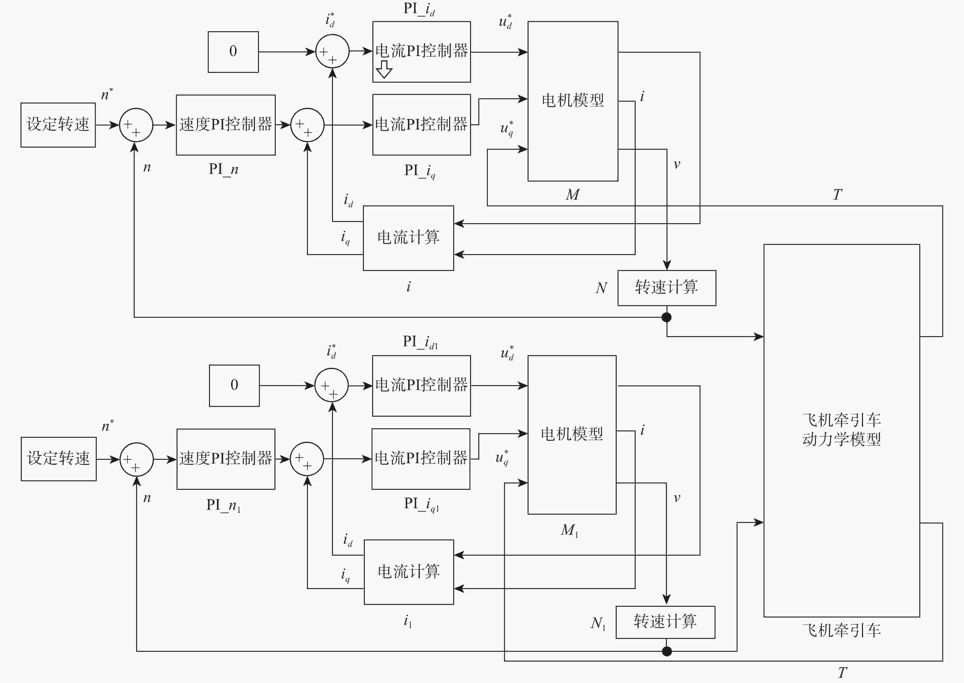 项目 Kp Ki 仿真值 样机参考值 仿真值 样机参考值 d轴电流环 5.83 5.25~6.41 1053.8 948.42~ 1159.18 q轴电流环 13.2 11.88~14.52 1053.8 948.42~ 1159.18 速度环 0.14 0.13~0.15 7 6.30~7.70 表 5 电传动无杆飞机牵引车ADRC试验参数