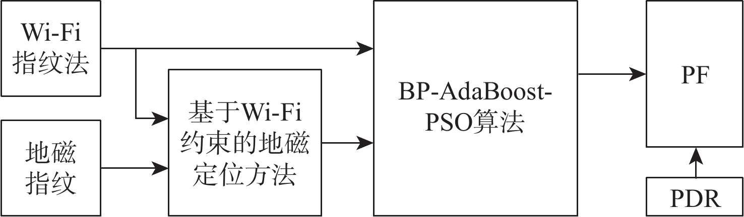 为实现复杂室内环境下行人的精确连续定位,提出一种基于分层优化的多源融合定位方法。先利用Wi-Fi定位结果约束地磁匹配范围,再将粒子群优化(PSO)引入BP-AdaBoost集成学习算法,利用优化后的BP-AdaBoost-PSO算法融合Wi-Fi定位结果与约束后的地磁匹配定位结果。最后利用粒子滤波(PF)实现上述融合结果与行人航位推算(PDR)结果的融合定位。仿真结果表明:所提方法能够有效提升行人运动状态下的连续定位精度,并具有较好的鲁棒性。