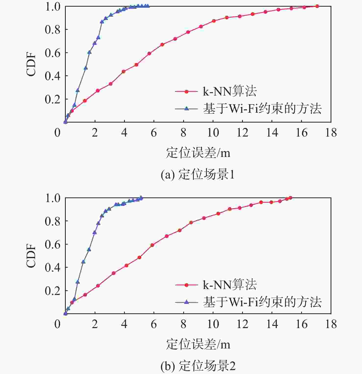 m 定位法 平均定位误差 定位场景1 定位场景2 k-NN算法 7.41 7.32 基于Wi-Fi约束的方法 2.04 1.97 表 2 神经网络融合算法的平均定位误差