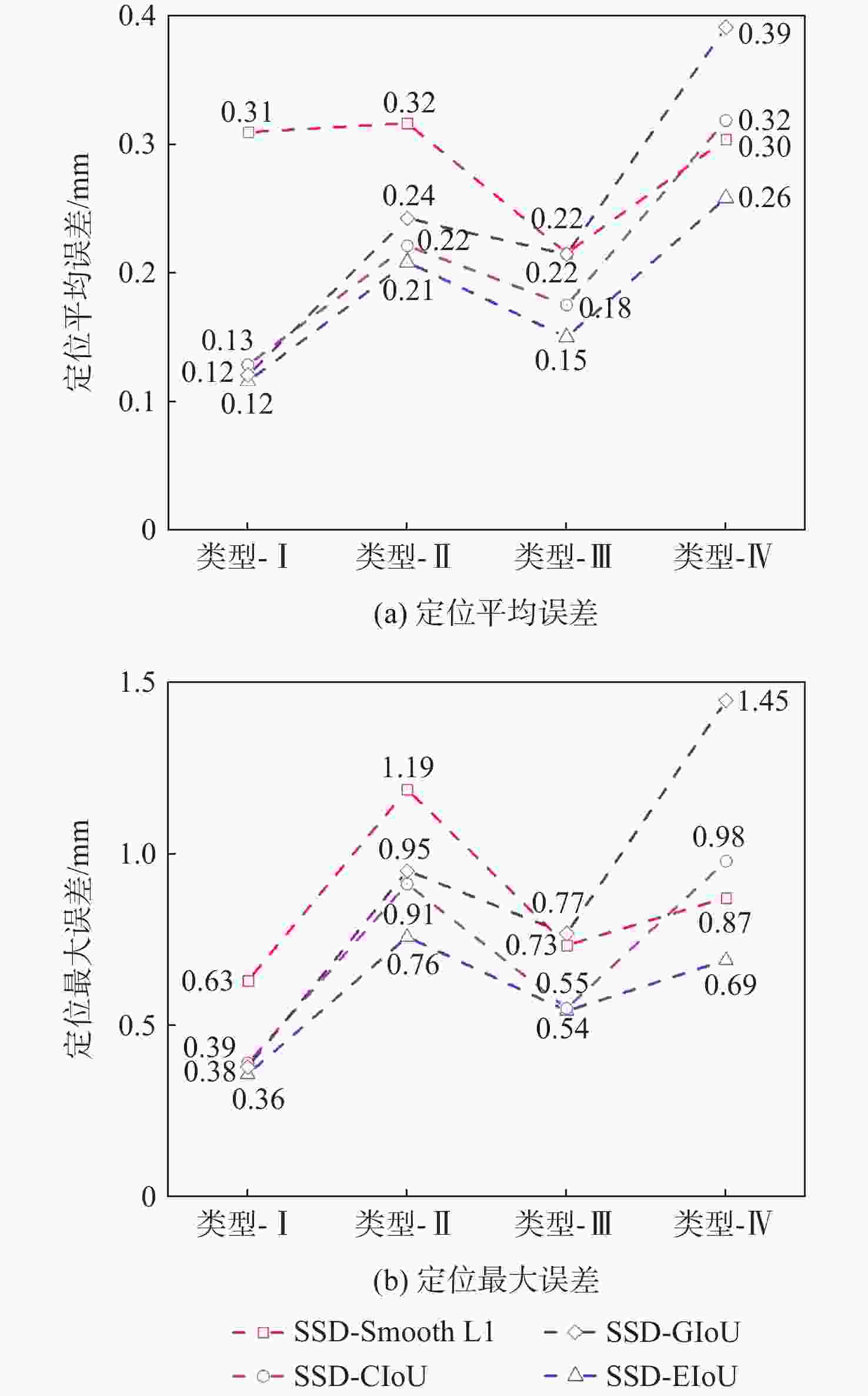 % 类型 最大误差相对降低比例 平均误差相对降低比例 GIoU CIoU EIoU GIoU CIoU EIoU 类型-Ⅰ 40 38 43 61 58 61 类型-Ⅱ 20 24 36 25 31 34 类型-Ⅲ −5 25 26 0 18 32 类型-Ⅳ −67 −13 21 −30 −7 13 -