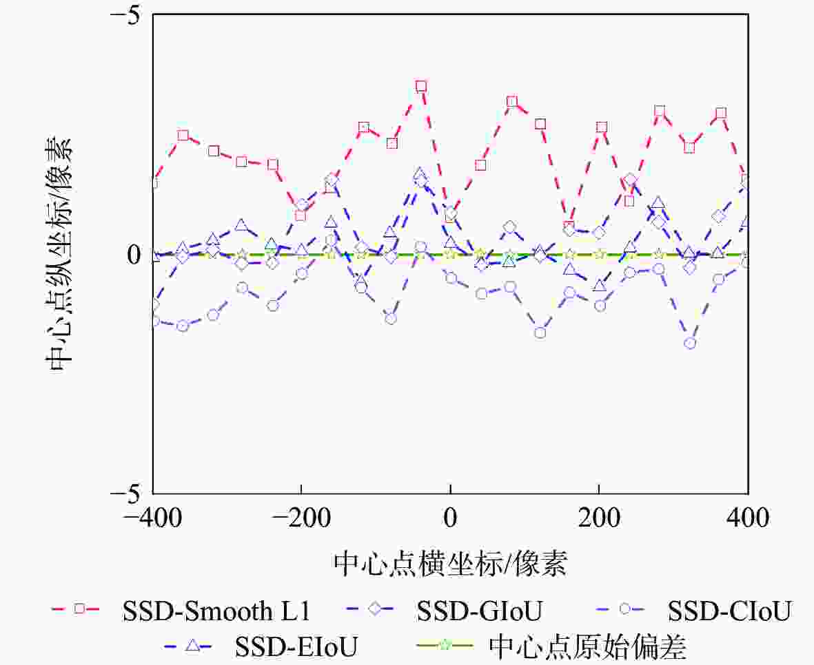 回归损失函数 平均误差/mm 最大误差/mm 推理速度/fps Smooth L1 0.29 1.19 17.74 GIoU 0.24 1.45 14.12 CIoU 0.21 0.98 14.51 EIoU 0.18 0.76 14.31 注:fps表示帧/s。 表 2 本文算法与原始SSD算法的定位误差比较