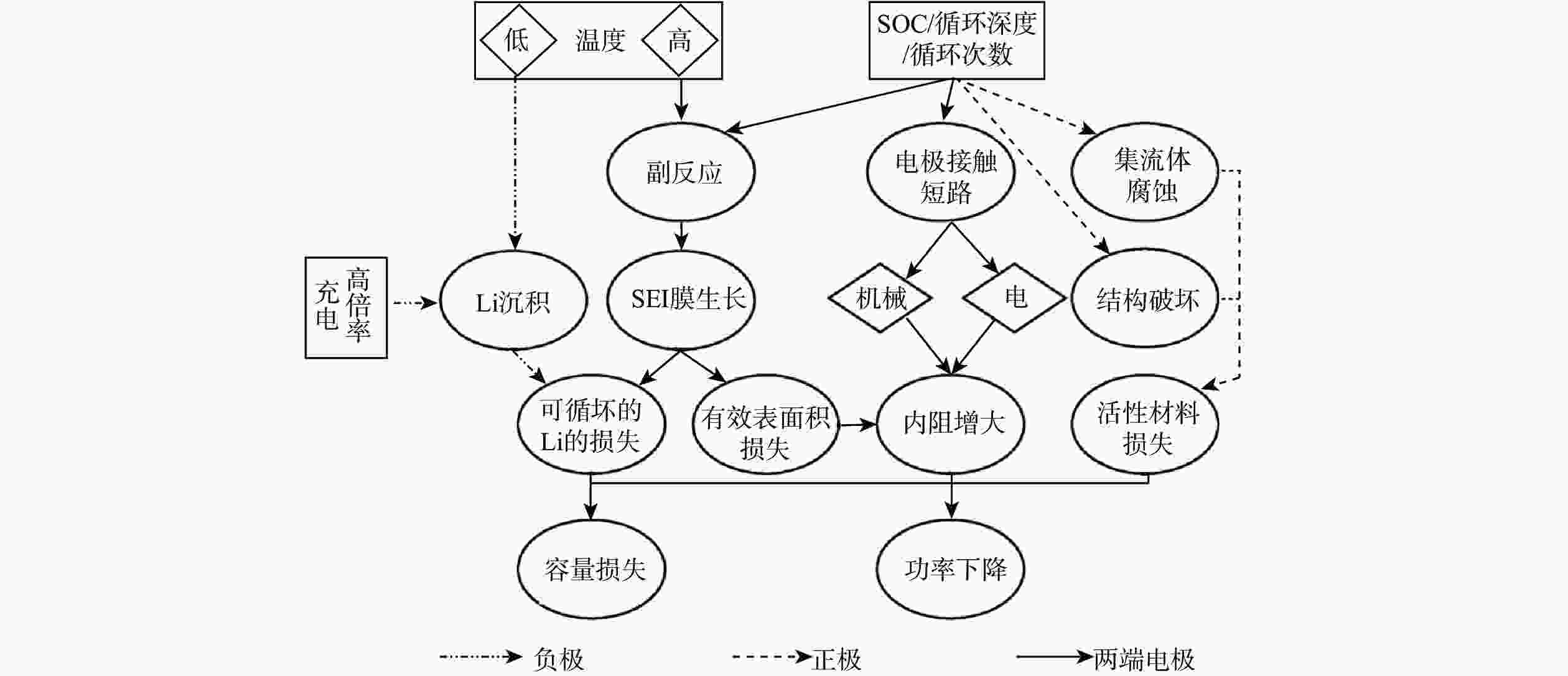 [1] 王昆, 黎永志, 罗林. 锂离子电池容量衰减变化及原因分析[J]. 中小企业管理与科技, 2019(8): 146-148.WANG K, LI Y Z, LUO L. Variation and cause analysis of capacity attenuation of lithium ion battery[J]. Management & Technology of SME, 2019(8): 146-148 (in Chinese). [2] 王其钰, 王朔, 张杰男, 等. 锂离子电池失效分析概述[J]. 储能科学与技术, 2017, 6(5): 1008-1025. doi: 10.12028/j.issn.2095-4239.2017.00022WANG Q Y, WANG S, ZHANG J N, et al. Overview of the failure analysis of lithium ion batteries[J]. Energy Storage Science and Technology, 2017, 6(5): 1008-1025(in Chinese). doi: 10.12028/j.issn.2095-4239.2017.00022 [3] 纪常伟, 潘帅, 汪硕峰, 等. 动力锂离子电池老化速率影响因素的实验研究[J]. 北京工业大学学报, 2020, 46(11): 1272-1282. doi: 10.11936/bjutxb2019040020JI C W, PAN S, WANG S F, et al. Experimental study on effect factors of aging rate for power lithium-ion batteries[J]. Journal of Beijing University of Technology, 2020, 46(11): 1272-1282(in Chinese). doi: 10.11936/bjutxb2019040020 [4] ZHANG D, HARAN B S, DURAIRAJAN A, et al. Studies on capacity fade of lithium-ion batteries[J]. Journal of Power Sources, 2000, 91(2): 122-129. doi: 10.1016/S0378-7753(00)00469-9 [5] BROUSSELY M, BIENSAN P, BONHOMME F, et al. Main aging mechanisms in Li ion batteries[J]. Journal of Power Sources, 2005, 146(1-2): 90-96. doi: 10.1016/j.jpowsour.2005.03.172 [6] AGUBRA V, FERGUS J. Lithium ion battery anode aging mechanisms[J]. Materials, 2013, 6(4): 1310-1325. [7] REZVANIZANIANI S M, LIU Z C, CHEN Y, et al. Review and recent advances in battery health monitoring and prognostics technologies for electric vehicle (EV) safety and mobility[J]. Journal of Power Sources, 2014, 256: 110-124. doi: 10.1016/j.jpowsour.2014.01.085 [8] HAUSBRAND R, CHERKASHININ G, EHRENBERG H, et al. Fundamental degradation mechanisms of layered oxide Li-ion battery cathode materials: Methodology, insights and novel approaches[J]. Materials Science and Engineering:B, 2015, 192: 3-25. doi: 10.1016/j.mseb.2014.11.014 [9] ZHANG M X, WANG C C, ZHANG R, et al. Comparison of the guidelines on good agricultural and collection practices in herbal medicine of the European Union, China, the WHO, and the United States of America[J]. Pharmacological Research, 2021, 167: 105533. doi: 10.1016/j.phrs.2021.105533 [10] MÜHLBAUER M J, DOLOTKO O, HOFMANN M, et al. Effect of fatigue/ageing on the lithium distribution in cylinder-type Li-ion batteries[J]. Journal of Power Sources, 2017, 348: 145-149. doi: 10.1016/j.jpowsour.2017.02.077 [11] KABIR M M, DEMIROCAK D E. Degradation mechanisms in Li-ion batteries: A state-of-the-art review[J]. International Journal of Energy Research, 2017, 41(14): 1963-1986. doi: 10.1002/er.3762 [12] WALDMANN T, HOGG B I, WOHLFAHRT-MEHRENS M. Li plating as unwanted side reaction in commercial Li-ion cells—A review[J]. Journal of Power Sources, 2018, 384: 107-124. doi: 10.1016/j.jpowsour.2018.02.063 [13] 戴海峰, 王楠, 魏学哲, 等. 车用动力锂离子电池单体不一致性问题研究综述[J]. 汽车工程, 2014, 36(2): 181-188. doi: 10.3969/j.issn.1000-680X.2014.02.011DAI H F, WANG N, WEI X Z, et al. A research review on the cell inconsistency of Li-ion traction batteries in electric vehicles[J]. Automotive Engineering, 2014, 36(2): 181-188(in Chinese). doi: 10.3969/j.issn.1000-680X.2014.02.011 [14] 张立强. 锂离子电池多物理模型参数辨识及健康特征提取[D]. 哈尔滨: 哈尔滨工业大学, 2015.ZHANG L Q. Parameter identification of the multi-physics model and health feature extraction for lithium-ion battery[D]. Harbin: Harbin Institute of Technology, 2015 (in Chinese). [15] RÖDER P, STIASZNY B, ZIEGLER J C, et al. The impact of calendar aging on the thermal stability of a LiMn2O4–Li(Ni1/3Mn1/3Co1/3)O2/graphite lithium-ion cell[J]. Journal of Power Sources, 2014, 268: 315-325. doi: 10.1016/j.jpowsour.2014.06.040 [16] 马泽宇, 姜久春, 张维戈, 等. 锂离子动力电池热老化的路径依赖性研究[J]. 电工技术学报, 2014, 29(5): 221-227. doi: 10.3969/j.issn.1000-6753.2014.05.028MA Z Y, JIANG J C, ZHANG W G, et al. Research on path dependence of large format LiMn2O4 battery degradation in thermal aging[J]. Transactions of China Electrotechnical Society, 2014, 29(5): 221-227(in Chinese). doi: 10.3969/j.issn.1000-6753.2014.05.028 [17] ARORA P, WHITE R E, DOYLE M. Capacity fade mechanisms and side reactions in lithium-ion batteries[J]. Journal of the Electrochemical Society, 1998, 145(10): 3647-3667. doi: 10.1149/1.1838857 [18] 时玮, 张言茹, 陈大分, 等. 锰酸锂动力电池寿命测试方法[J]. 汽车工程, 2015, 37(1): 67-71. doi: 10.19562/j.chinasae.qcgc.2015.01.012SHI W, ZHANG Y R, CHEN D F, et al. Lifespan test method for LiMn2O4 traction batteries[J]. Automotive Engineering, 2015, 37(1): 67-71(in Chinese). doi: 10.19562/j.chinasae.qcgc.2015.01.012 [19] YOUN B Y, JANG B H, CHEON C, et al. Implementing accountable care organizations with integrative medicine in Korean health care system[J]. Integrative Medicine Research, 2021, 10(3): 100711. doi: 10.1016/j.imr.2020.100711 [20] HOU C, HAN J H, LIU P, et al. Operando observations of SEI film evolution by mass-sensitive scanning transmission electron microscopy[J]. Advanced Energy Materials, 2019, 9(45): 1902675. doi: 10.1002/aenm.201902675 [21] CANNARELLA J, ARNOLD C B. The effects of defects on localized plating in lithium-ion batteries[J]. Journal of the Electrochemical Society, 2015, 162(7): A1365-A1373. doi: 10.1149/2.1051507jes [22] 张立军, 程洪正, 孟德建. 锂离子电池电-热-机耦合特性实验研究及关键参数辨识[J]. 西安交通大学学报, 2017, 51(8): 142-148.ZHANG L J, CHENG H Z, MENG D J. Experimental study on ETSS coupling mechanism and identification of key parameter for lithium-ion batteries[J]. Journal of Xi’an Jiaotong University, 2017, 51(8): 142-148(in Chinese). [23] VETTER J, NOV