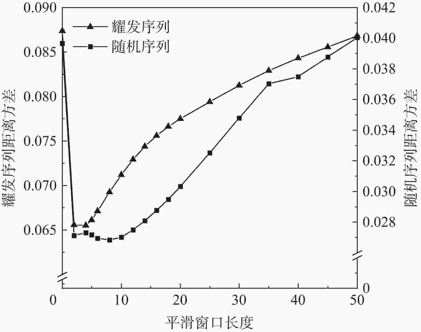 窗函数 DTW1 DTW2 SBD1 SBD2 Blackman 283.287 6 306.278 6 0.286 6 0.475 4 Bartlett 276.359 0 301.501 0 0.278 2 0.471 4 Hanning 279.461 0 303.506 0 0.282 1 0.473 4 Hamming 275.730 0 301.512 6 0.277 4 0.471 1 注:DTW1代表耀发序列和随机序列分别与模板1的DTW距离均值的差值,DTW2代表耀发序列和随机序列分别与模板2的DTW距离均值的差值。SBD1、SBD2同理。 -