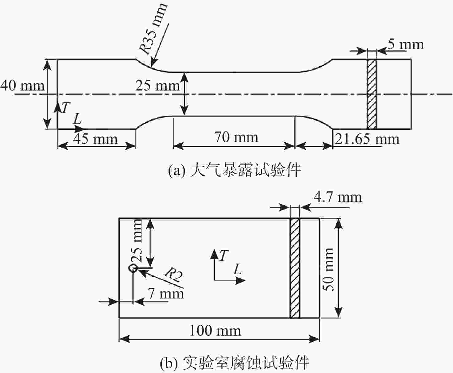 腐蚀溶液编号 腐蚀介质成分 浓度/ (mol·L−1) PH 1#(EXCO溶液) NaCl 4.00 0.4 KNO3 0.50 HNO3 0.10 2# NaCl 4.00 0.4 K2SO4 0.25 H2SO4 0.05 3# NaCl 4.00 0.4 K2SO4 0.25 HNO3 0.10 4# NaCl 4.00 0.4 KNO3 0.50 H2SO4 0.05 表 4 试验件编号示例