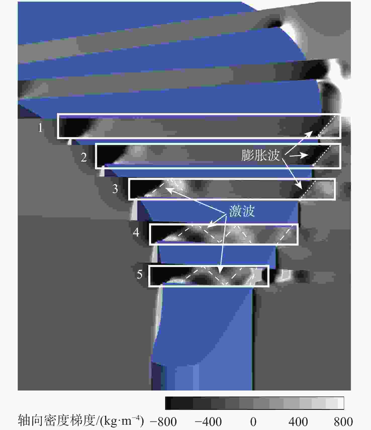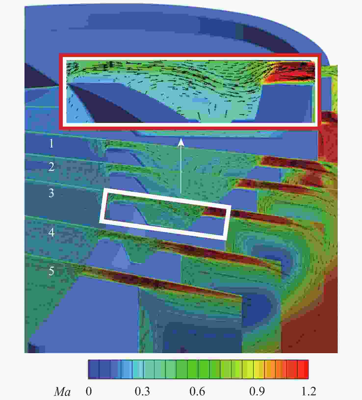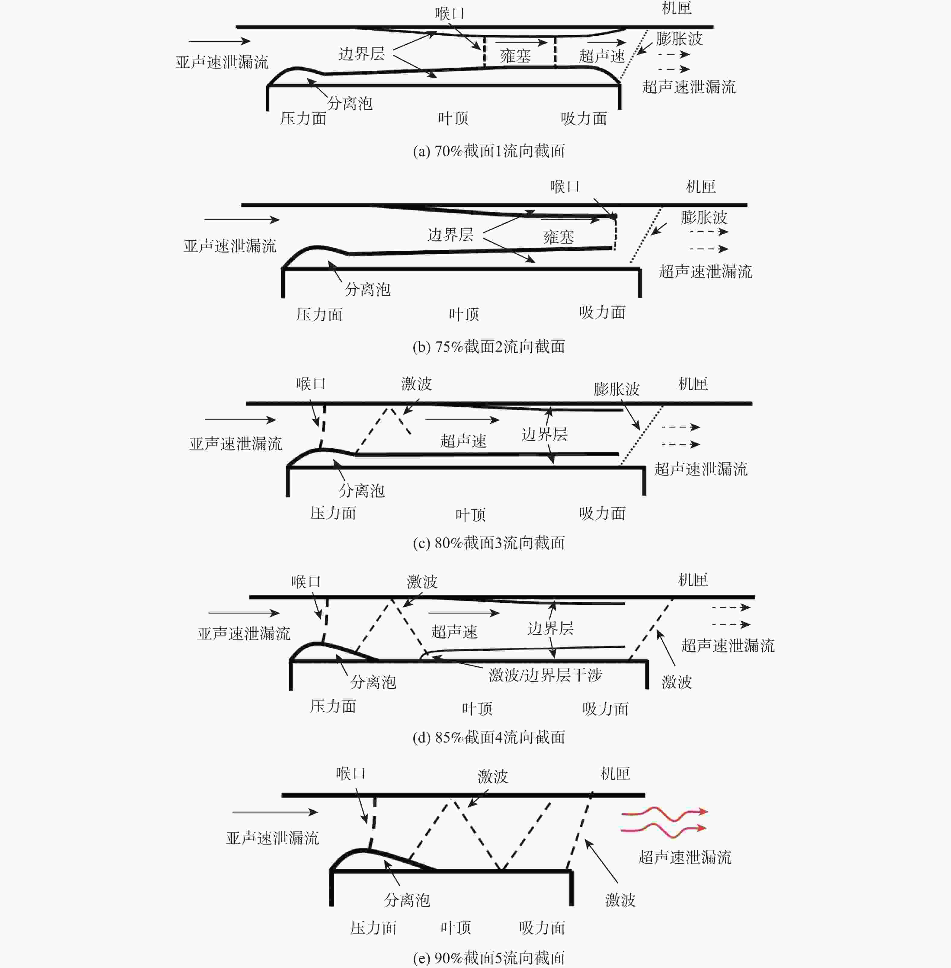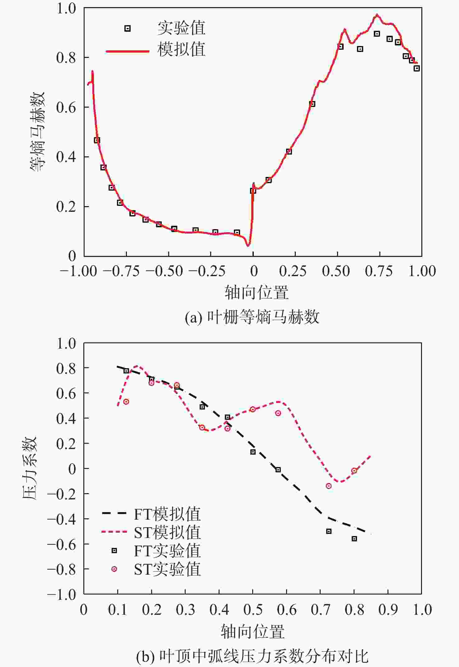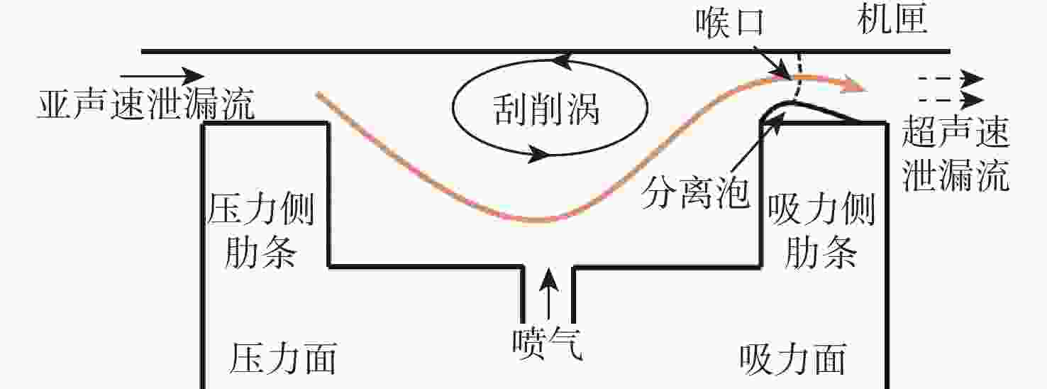 为明确跨音涡轮叶尖泄漏流动机理,进一步提升涡轮效率,对跨音条件下叶顶喷气对平叶尖及凹槽叶尖性能的影响进行研究,并探讨跨音条件下平叶尖及凹槽叶尖间隙内部的流动状态。结果表明:跨音条件下,叶顶喷气可以增加平叶尖叶栅的气动效率,而刮削涡仍是凹槽内的主控流动结构;喷气流量的增加对平叶尖的总泄漏流量影响有限,但会增加凹槽叶尖的总泄漏流量。在更高负荷情况下,平叶尖间隙内呈跨音速流动特征,具体状态与叶片负荷、叶片厚度有关;凹槽叶尖条件下,泄漏流动在吸力侧肋条上方快速膨胀至超声速状态。基于此,建立可用于跨音条件下的泄漏流量预测模型。