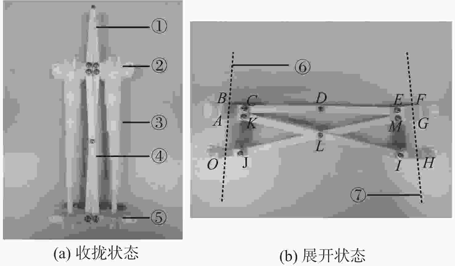 抛物面天线作为卫星上重要的功能组件,是实现遥感测量和无线通信等功能的基础。为了解决模块化抛物面天线折展机构构型设计与刚度匹配困难的问题,提出一种基于剪刀机构的肋单元折展机构的构型方法,并设计了肋单元折展机构。通过运动学分析,验证了该机构通过参数的修改,可以实现同一折展机构展开状态包络不同抛物面拟合球面。给出一种包络锥法实现多模块折展机构展开过程的求解思路,为可转动肋单元的运动副配置提供依据。构建多模块折展机构的有限元模型,以提高固有频率和降低整体质量为优化目标,对肋单元折展机构的构型参数进行优化。采用非劣排序遗传算法完成优化迭代计算,得到具有高刚度、轻量化的折展机构设计参数,在相同条件下优化后调和平均固有频率提高了67.4%,天线整体质量下降了35.2%。