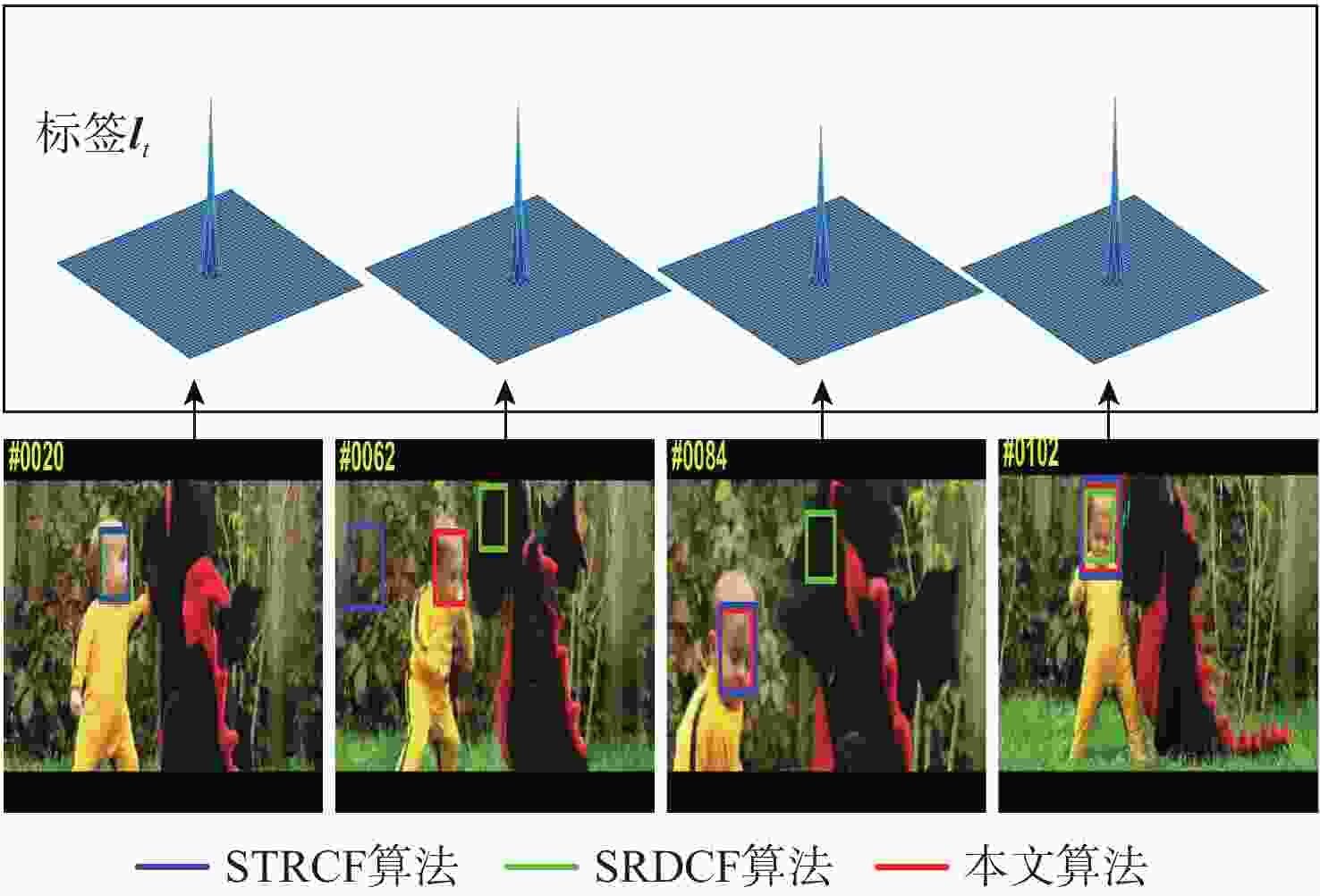 Abstract:Aimed at the problems that the spatially regularized discriminative correlation filtering (SRDCF) algorithm with fixed regularization weight and model degradation, a correlation filtering tracking algorithm based on saliency awareness and consistency constraint was proposed. Firstly, the histogram of the oriented gradient feature, shallow feature, and the middle feature was extracted to improve the expression ability of the appearance model. Secondly, the regularization weight between the two adjacent frames was associated after the saliency detection algorithm determined the saliency-awareness reference weight of the initial frame.Furthermore, to prevent the degradation of the filter model,the difference between the practical and the scheduled ideal consistency map was minimized and the consistency level was constrained. In addition, a dynamic constraint strategy was proposed to further improve the adaptability of the tracker in complex scenarios. The algorithm is tested on the public OTB2015, TempleColor128, and UAV20L benchmarks. Experimental results show that compared with SRDCF, the proposed algorithm improves the accuracy by 0.108 and the success rate by 0.077 on OTB2015, with a speed of 22.41 frames per second, and has a good real-time effect.