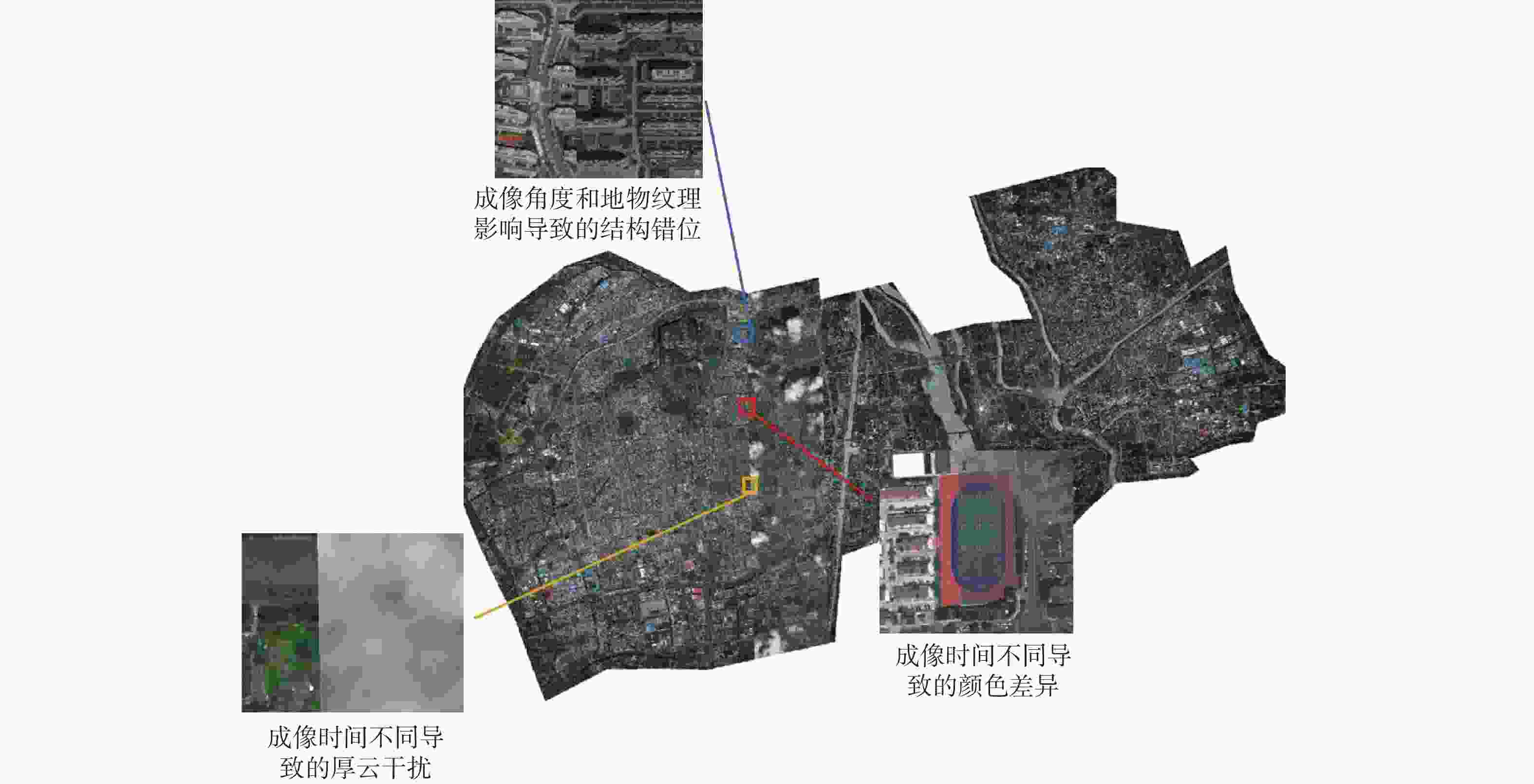遥感图像镶嵌是遥感图像解译的一项重要研究内容,然而受成像时间、角度及地物纹理的影响,镶嵌图像经常会有颜色不一致、地物结构错位等情况。针对遥感图像镶嵌缝两侧出现的颜色差异、地物结构错位等质量问题,设计了双分支网络进行遥感图像镶嵌质量的盲评价,2个分支网络分别用于镶嵌缝两侧颜色差异评价和结构错位评价,综合2个网络的输出实现遥感图像镶嵌质量的综合评价。由于获得图像的质量真值需要耗费大量的人力物力,为了减少训练卷积网络所需要的数据量,提出了一种基于两阶段训练的弱监督学习策略,第1阶段在仿真的镶嵌数据集上以颜色差异量和结构错位量为客观真值对网络进行预训练,学习与质量评价有关的先验知识,第2阶段在有主观质量真值的数据集上进行微调。在建立的带有质量真值的仿真数据集和真实数据集上的实验结果表明:所提方法能够有效评价遥感图像镶嵌的质量,性能优于对比方法。