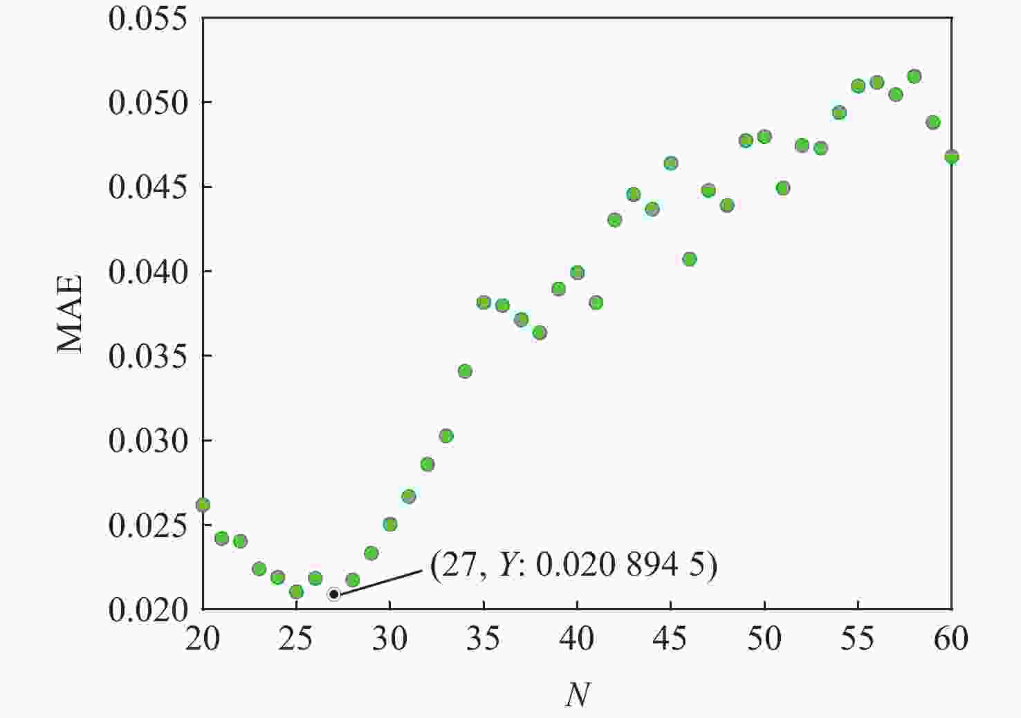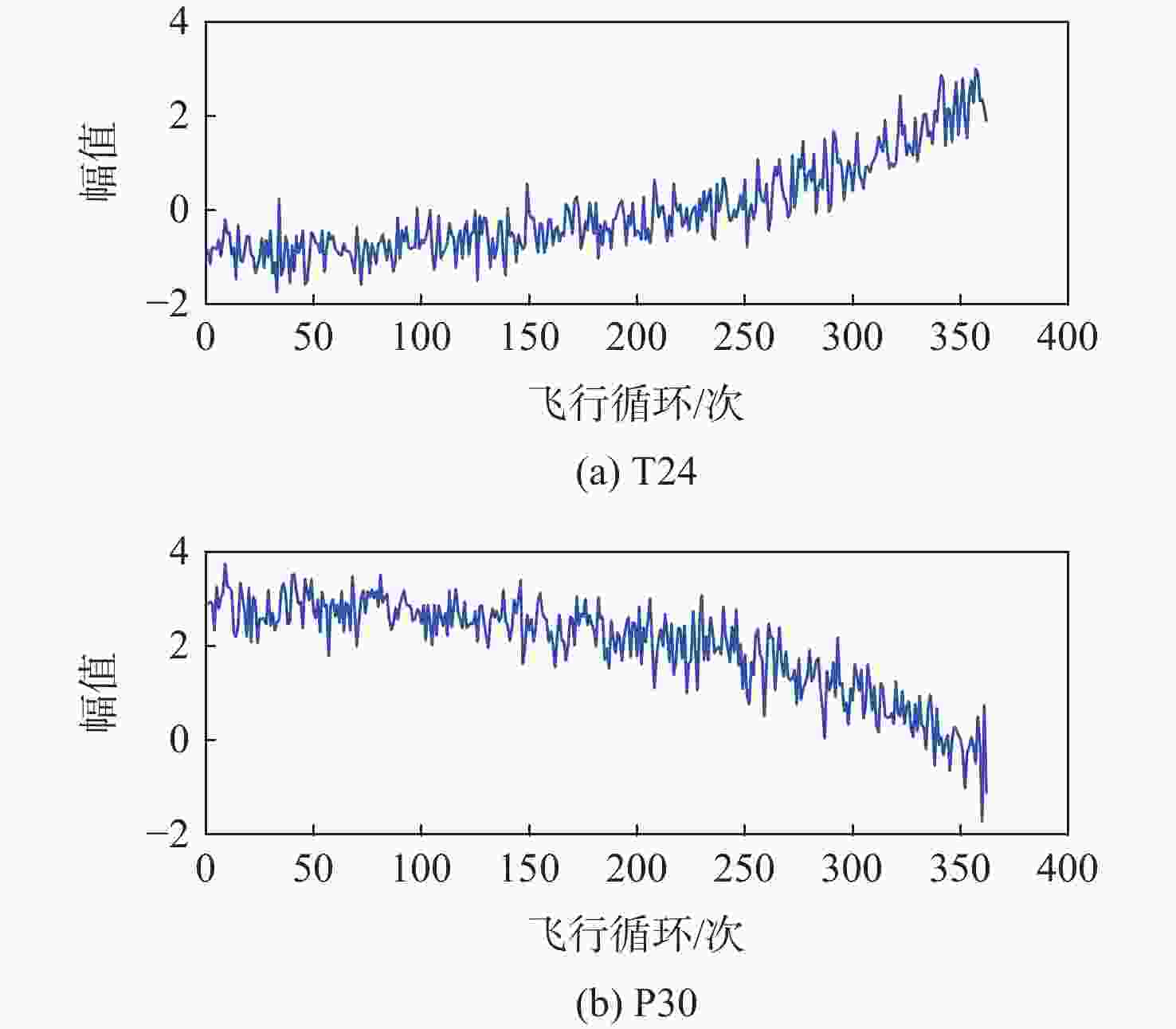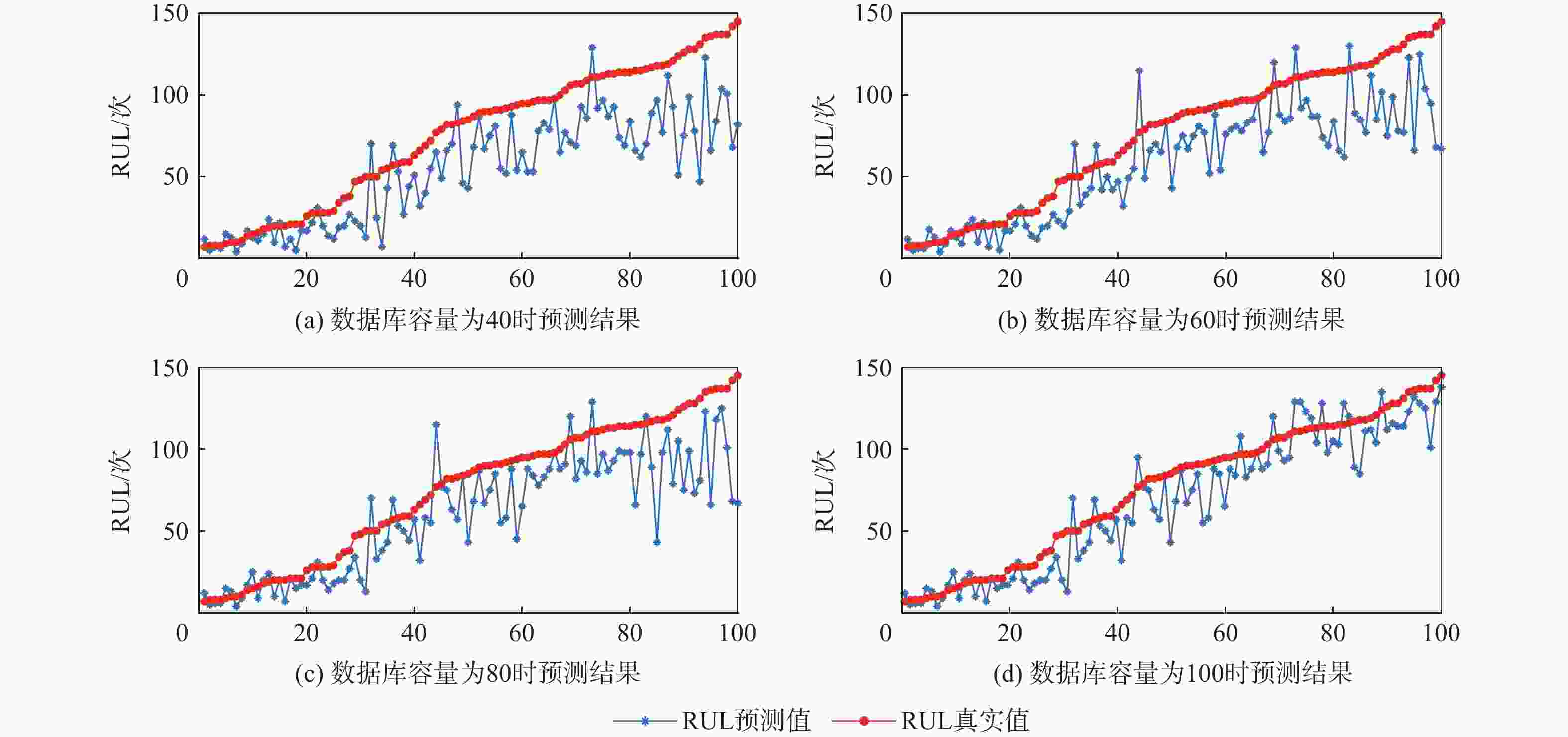 传感器参数 SRCC结果 LPC出口总温T24/℃ −273.525 HPC出口总温T30/℃ −273.482 LPT出口总温T50/℃ −273.601 HPC出口总压P30/kPa 0.112 风扇物理转速Nf/(r·min−1) −0.856 核心物理转速Nc/(r·min−1) 0.113 HPC出口静压Ps30 −0.125 燃油量与HPC出口静压比率CPhi 0.833 修正风扇转速NRf/(r·min−1) −0.855 修正核心转速NRc/(r·min−1) 0.551 涵道比rBPR −0.744 HPT冷却引气流量W31/(kg·s−1) 1.62 LPT冷却引气流量W32/(kg·s−1) 1.62 表 4 不同数据库大小的测试集结果