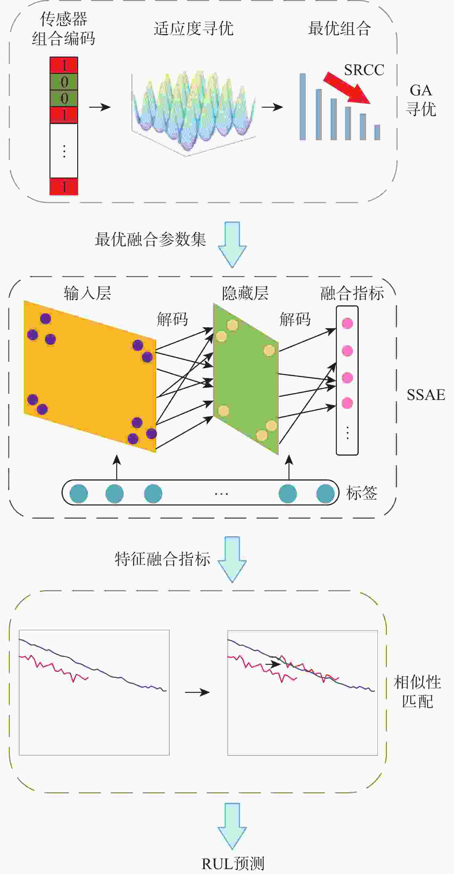 航空发动机作为高度复杂的热力机械,其剩余寿命(RUL)预测往往作为提高安全性和经济性的重要保障。为了提高航空发动机剩余寿命预测精度,提出一种基于堆栈稀疏自编码器(SSAE)及相似性匹配的剩余寿命预测方法。以Spearman秩相关系数(SRCC)作为适应度函数,利用遗传算法(GA)对融合参数候选集进行寻优;采用SSAE的结构融合最优参数集,生成特征融合指标;采用相似性匹配的方法在历史数据库内全局搜索最优匹配的历史轨迹,得到寿命预测结果;采用美国国家航空航天局(NASA)公布的C-MAPSS数据集验证该融合指标和方法的有效性。