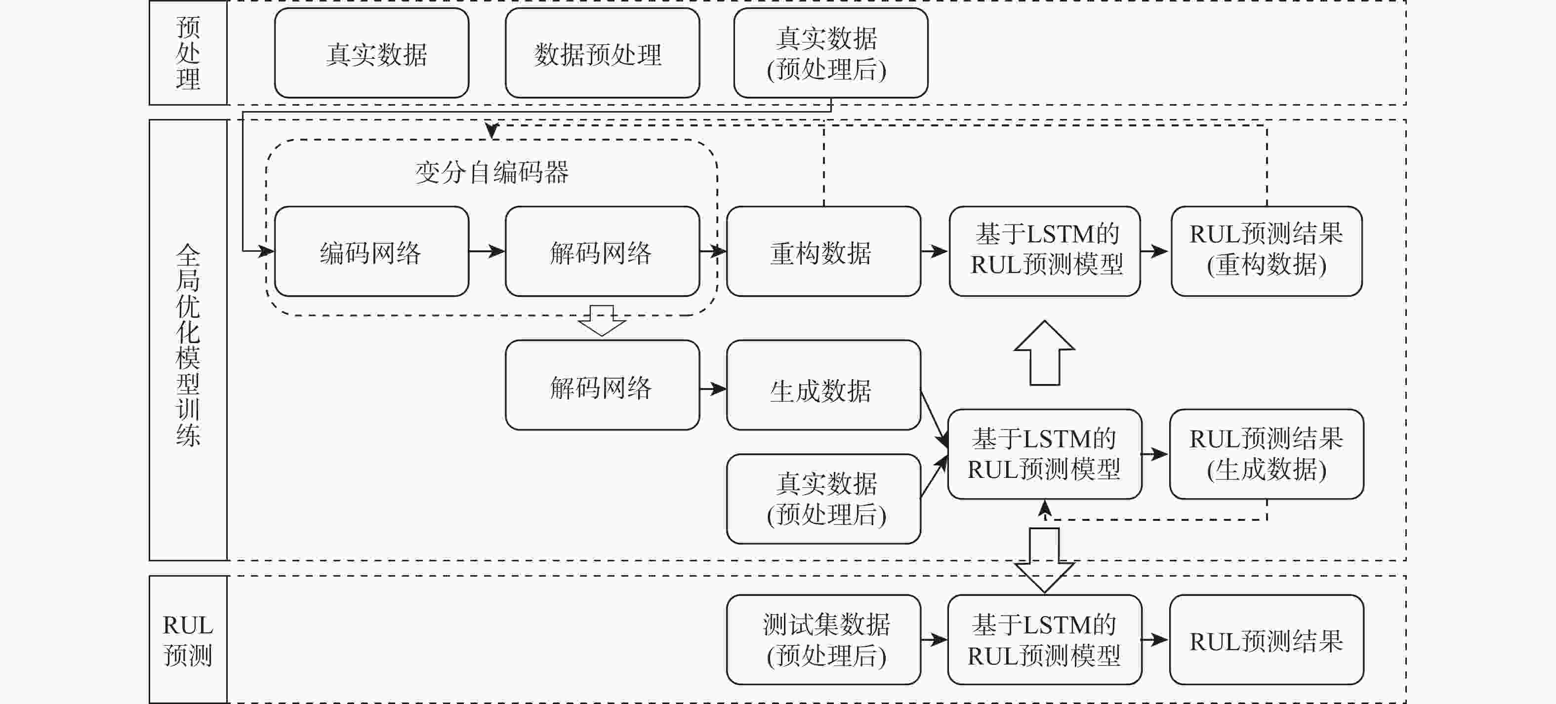 数据驱动的剩余使用寿命(RUL)预测方法不依赖于复杂的物理模型,可以直接利用设备历史运行数据与当前监测数据对设备RUL进行预测,对制定合理的维修策略,降低设备的维护成本具有重要意义。但是数据驱动的RUL预测方法依赖于大量历史数据,在数据不足时,尤其是多维退化数据,模型难以取得良好的预测效果。针对这一问题,提出一种多维退化数据生成方法,所提方法构建了一种全局优化模型,以条件变分自编码器作为生成模型,提取多维退化数据特征并生成相似数据扩充RUL预测模型训练集,利用长短时记忆网络作为RUL预测模型,所提方法能够通过RUL预测模型更新生成模型的参数提高模型的效果,同时利用更新后的生成模型提高剩余寿命预测模型在退化数据不足情况下的效果。使用航空发动机退化数据进行了案例验证,通过对比未加入生成数据训练得到的RUL预测模型与加入生成数据训练得到的RUL预测模型的表现,验证了所提方法在解决RUL预测模型训练数据不足方面的优越性。