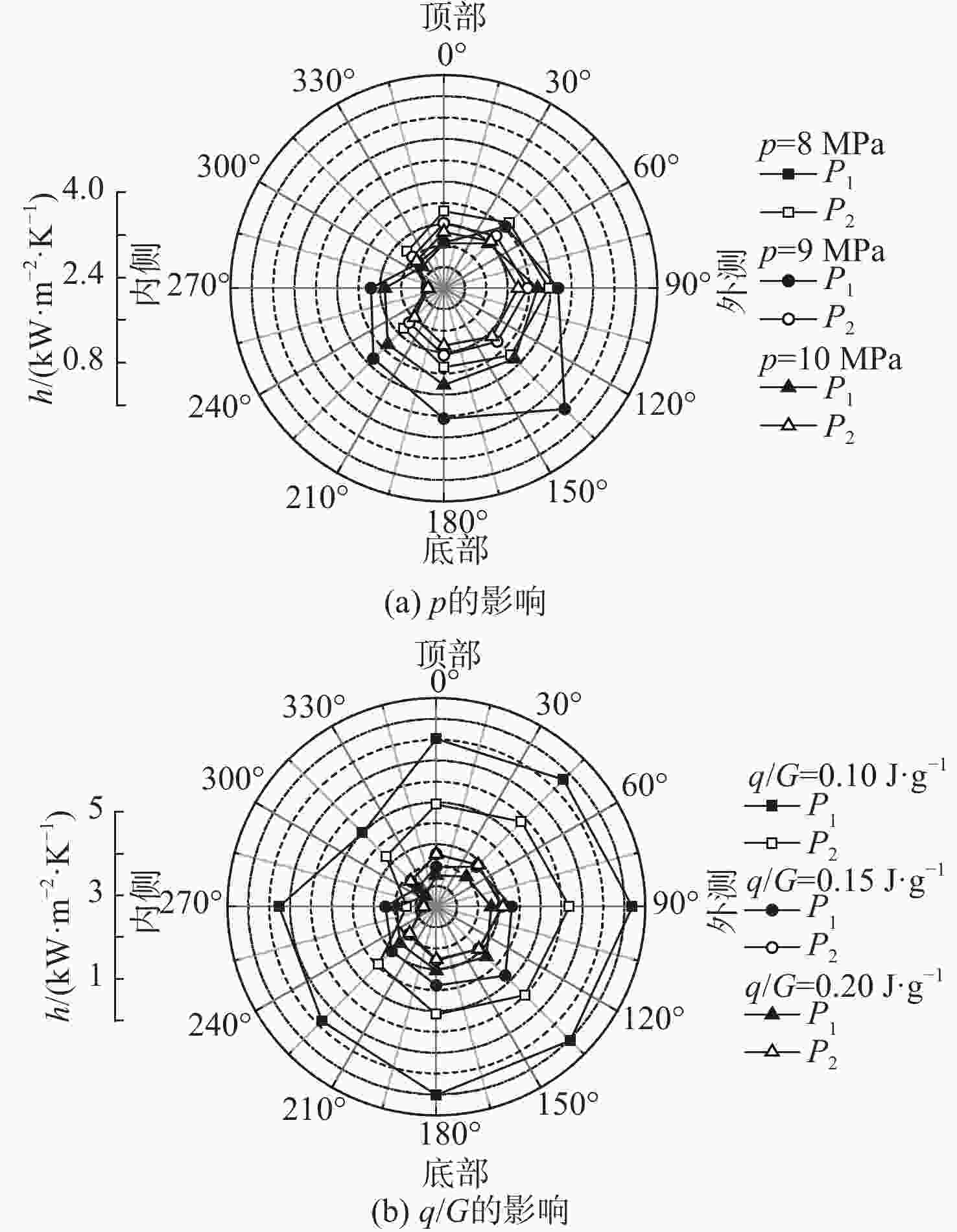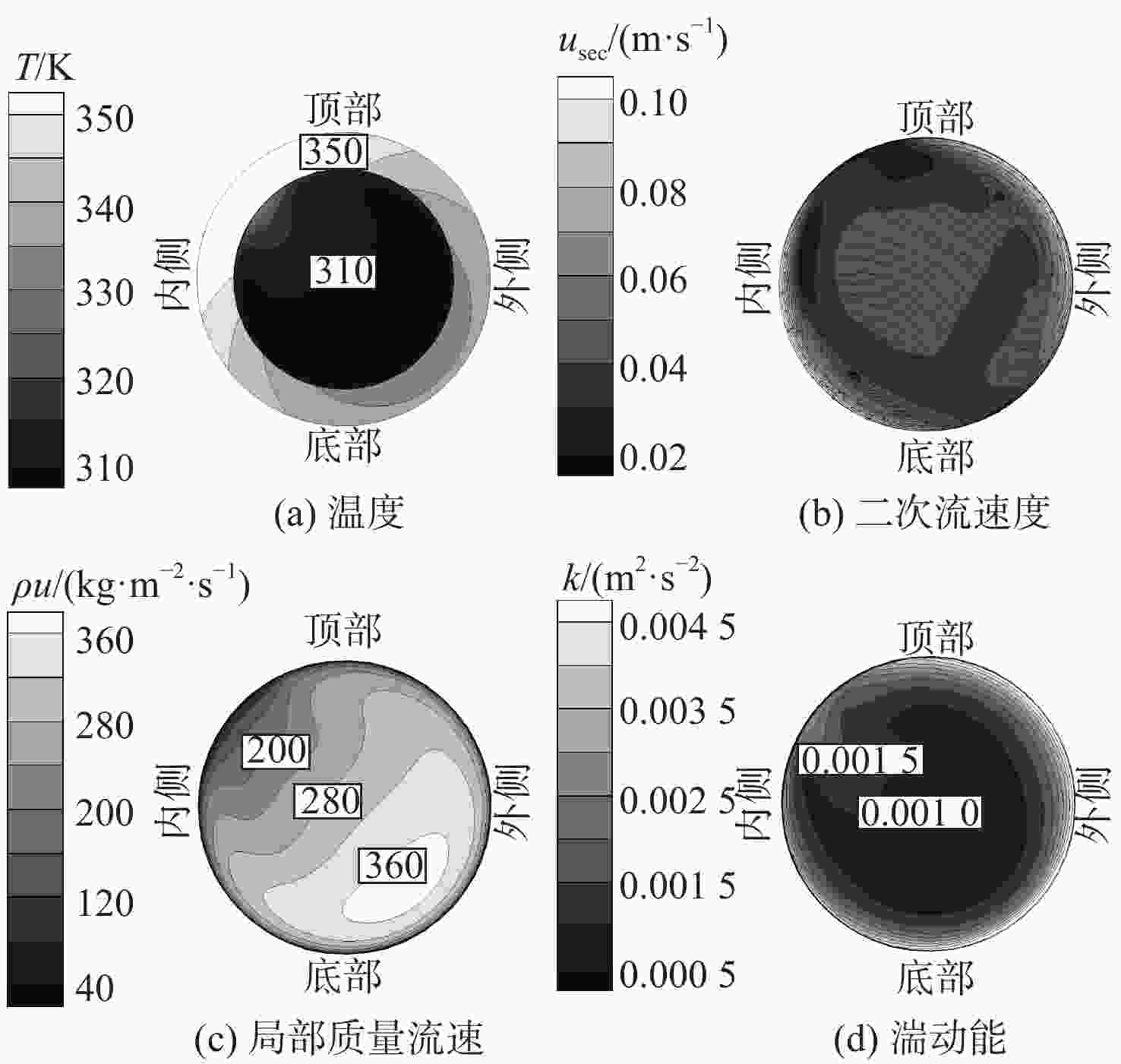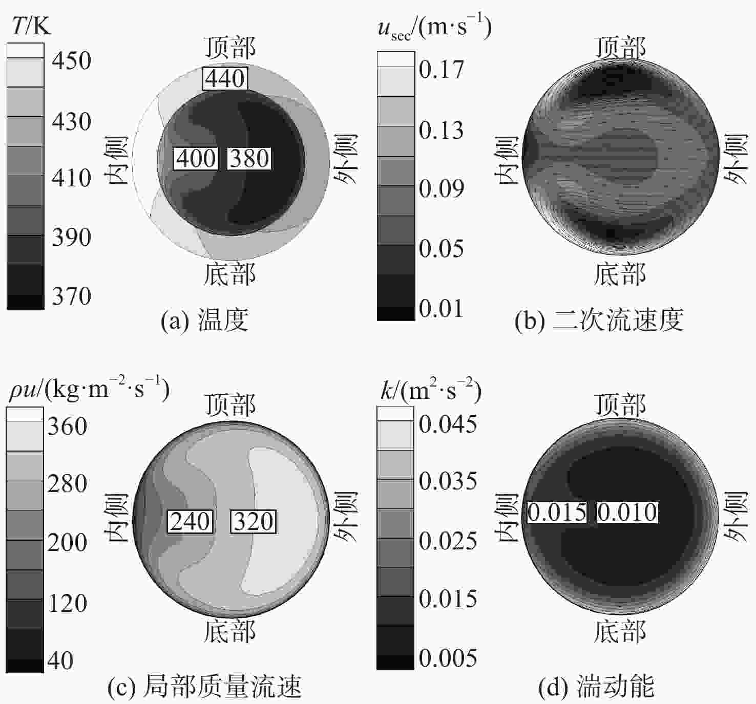 基于航空发动机间冷器的冷却换热问题,进行竖直螺旋管内超临界压力CO2换热数值研究。探究运行参数对沿流向和周向换热的影响机制。通过管截面温度场和流场分布阐述了浮升力和离心力引起的周向非均匀换热机制,评估二次流速度和强度。根据管道结构特性提出新的浮升力参数和浮升力影响判别准则,建立新的换热关联式。结果表明:管上游非均匀换热源于浮升力与离心力综合作用,管下游非均匀换热由离心力主导。当满足浮升力因子