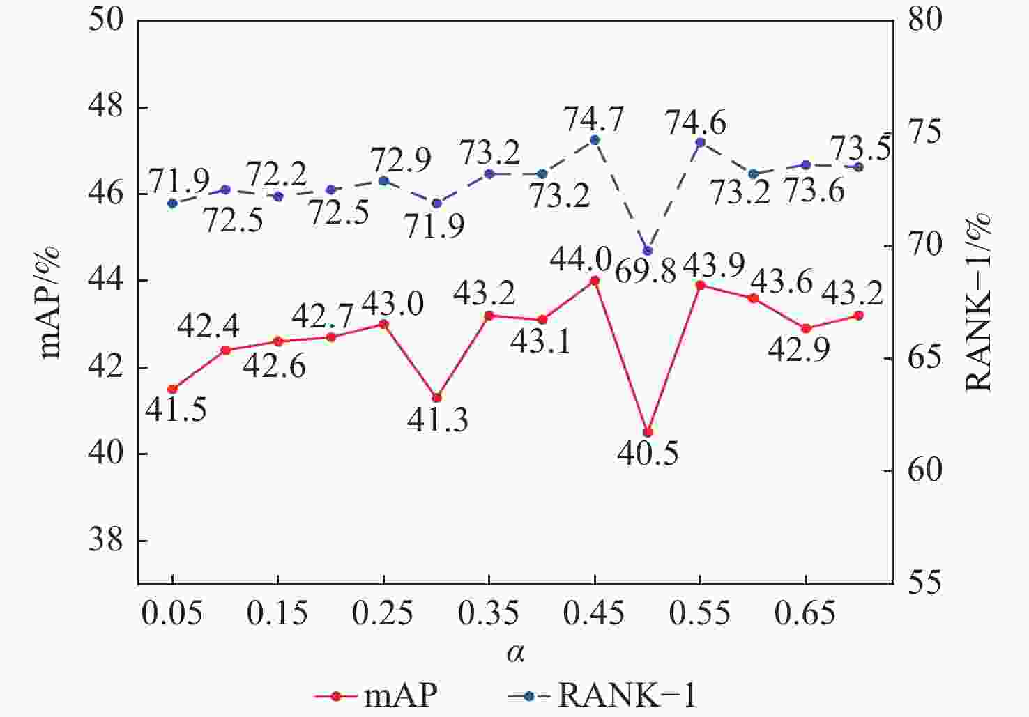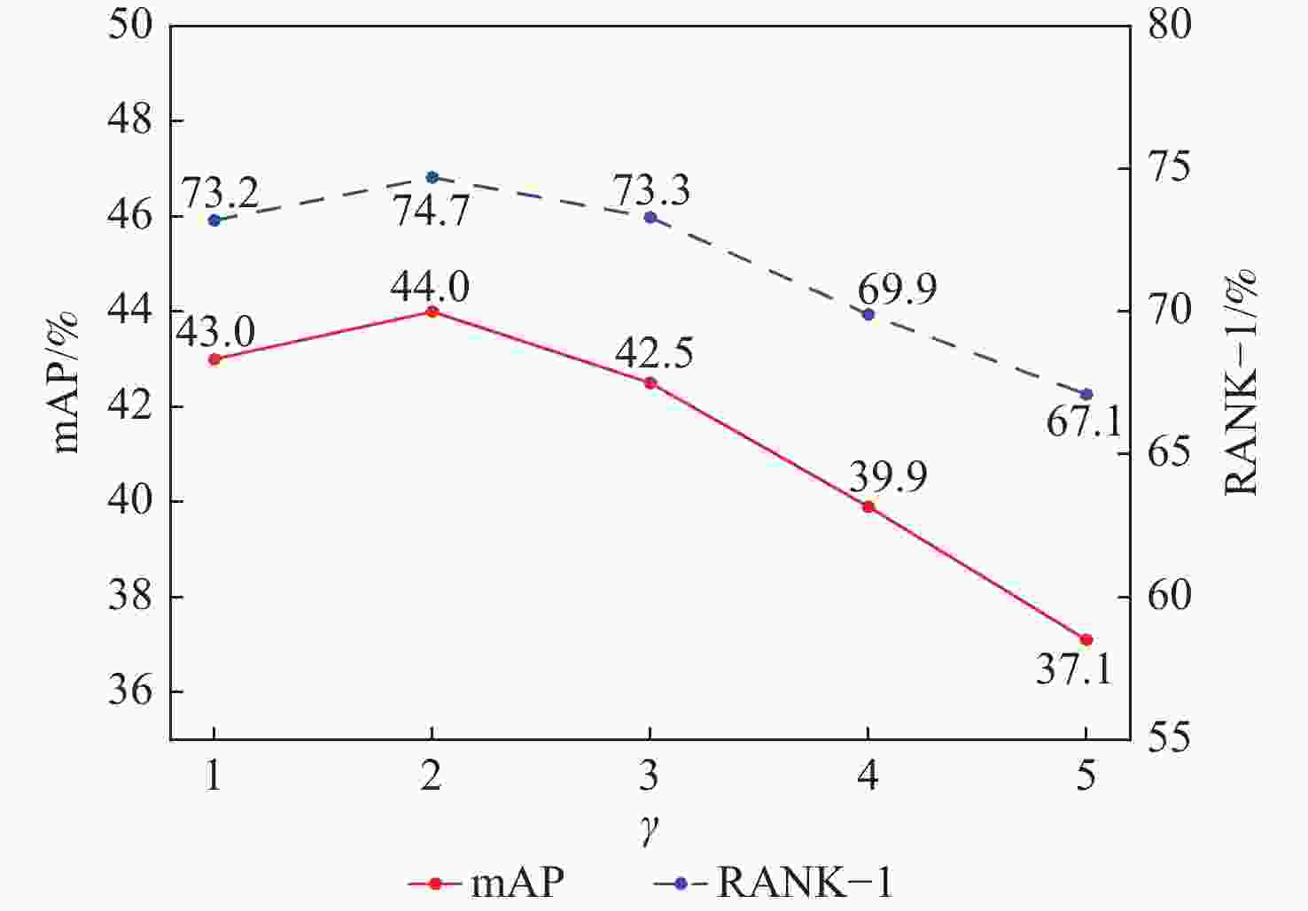 % 方法 Rank-1 mAP 数据集1 数据集2 数据集1 数据集2 QAConv[20] 54.4 62.8 33.6 31.6 PABO-QAConv (SE) 60.4 74.9 38.6 44.1 PABO-QAConv (SA) 57.1 71.9 36.7 41.4 PABO-QAConv (CBAM) 58.0 55.1 34.7 23.3 注:数据集1为训练集Market1501、测试集DukeMTMC-reID,数据集2为训练集DukeMTMC-reID,测试集Market1501。 表 2 不同模块的消融实验