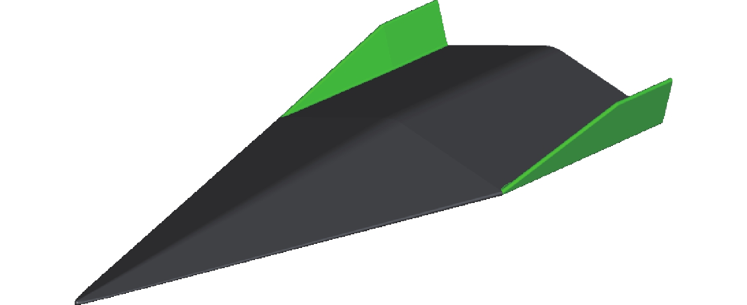 Ma =10 and 40Km altitude and maintains well at a wide range of angles of attack. At the same time, the effects and feasibility of three different optimization schemes are discussed based on the numerical simulation method, aiming at the common lateral and directional stability problem of the proposed configuration, and the wind tunnel test is used to verify the lateral and directional stability control effect of the scheme with two V winglets.The results show that the control scheme with two V winglets is the better scheme to realize the lateral and directional stability. -