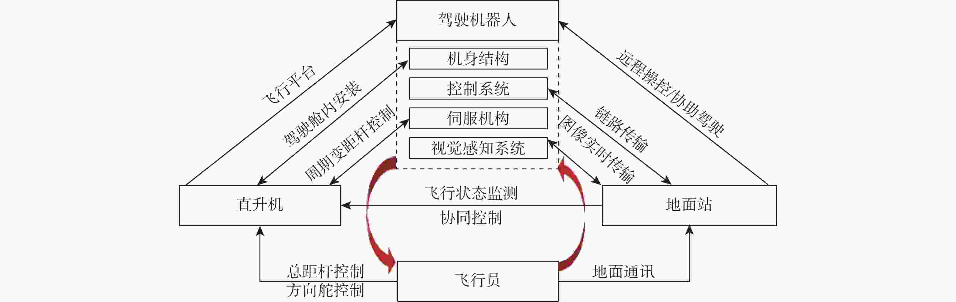 人机协同系统可以充分发挥人类智慧的优越性和机器人作业的高精度与高效率,被广泛应用于决策指挥、工业控制和医疗手术等领域。飞行员驾驶飞行器时需要实时处理大量信息并给出精准操控,操纵负担大。基于典型单旋翼直升机的操控特点,设计一种直升机协同驾驶机器人系统,驾驶机器人连接直升机周期变距杆控制直升机的俯仰运动和滚转运动,飞行员通过总距杆和脚蹬控制直升机的航向运动和升降运动。协同驾驶机器人可以在不改装原有直升机的基础上实现一种新型的人机协同飞行控制,快速提升现有直升机的自动化水平和飞行员在应急情况下的生存能力。研究驾驶机器人控制系统模型,建立适用于直升机人机协同控制的飞行模拟平台,通过飞行员在环飞行仿真初步验证了人机协同控制方法的可行性。在飞行仿真验证的基础上研制了驾驶机器人样机,并将样机搭载在SVH-4直升机上完成飞行实验验证。