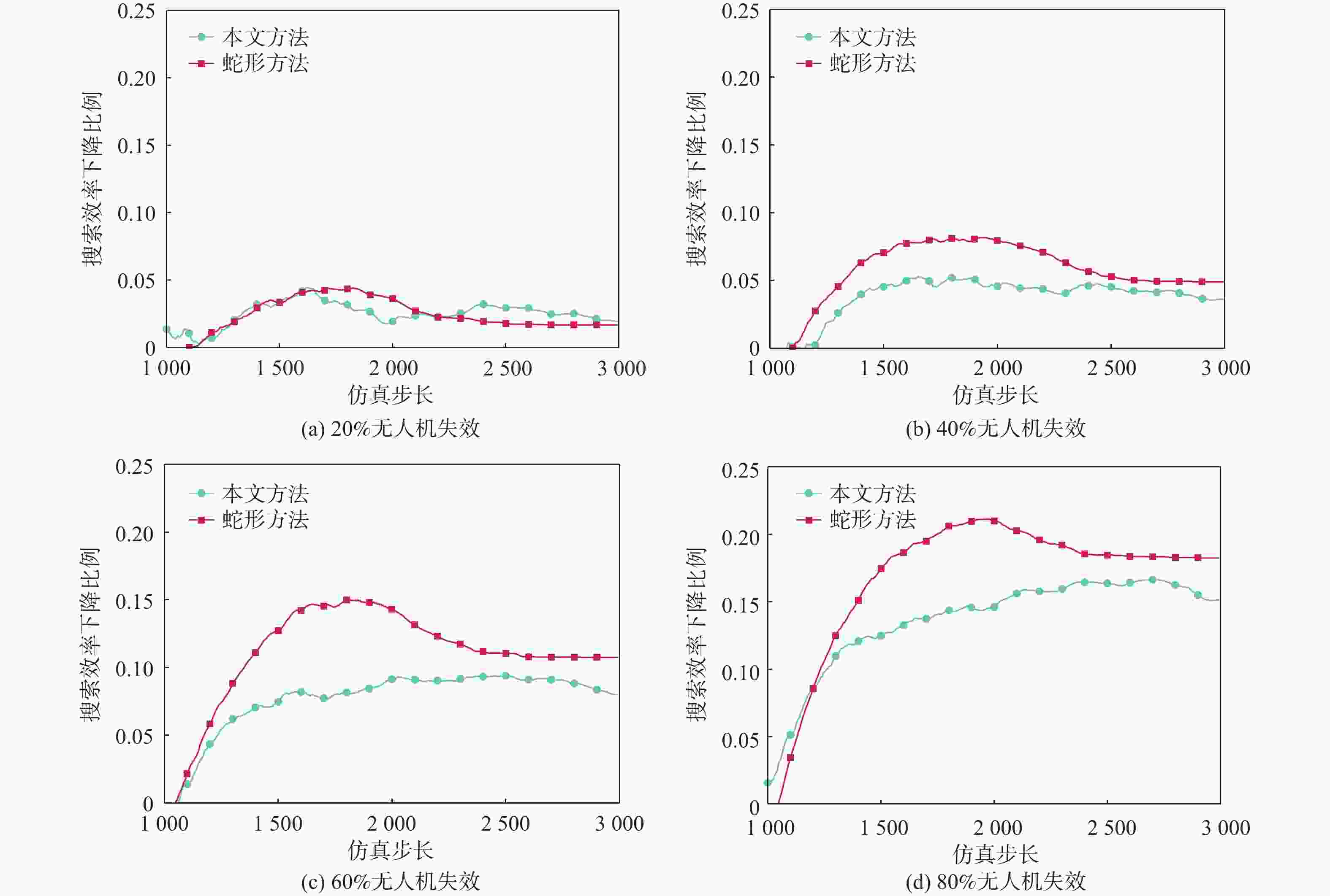 随着无人系统与智能技术的发展,作为无人系统的典型应用之一的无人机集群,在民用与军事领域的应用前景越来越广阔,当集群规模较大时,传统的组网通信方式会受到带宽、干扰等限制,极大影响无人机集群的协同作战效能。基于此,提出一种弱信息交互条件下的无人机集群决策模型(WIIUSM),不依赖无人机之间的双向数据交互,仅依靠单向视觉感知的方式实现期望的集群行为。建立了弱信息交互的无人机集群模型,采用改进后的遗传算法(IGA)作为优化方法对决策模型进行优化。以区域搜索任务为例进行仿真测试,将所提方法与基于顶层规划的蛇形方法进行对比,证明了所提方法在搜索效率层面的有效性;测试了不同比例无人机失效条件下搜索效率的下降程度,与蛇形方法进行对比,证明所提方法具有一定的鲁棒性。