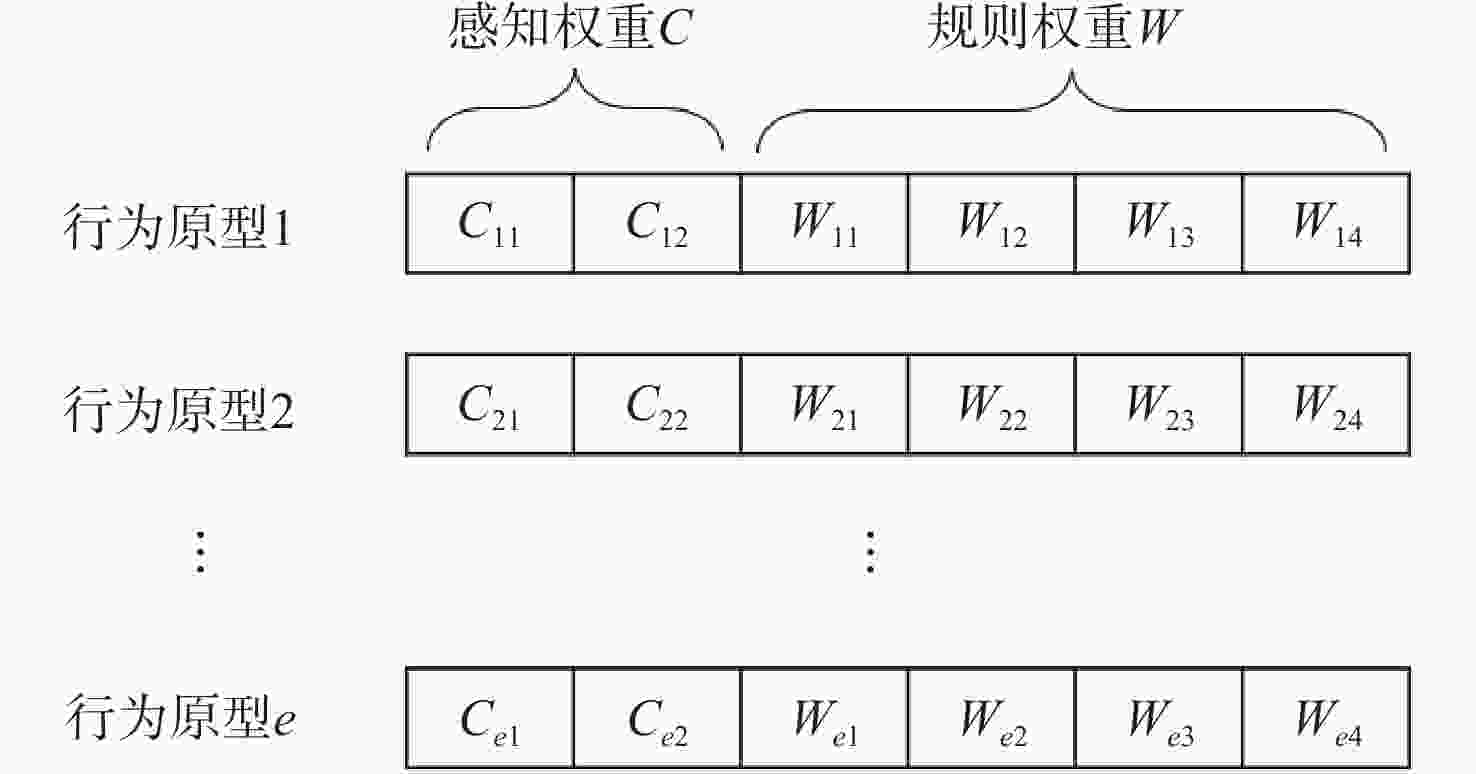参数 数值 种群规模$p_{\rm{pop}}$ 10 迭代次数 20 最优保持比例 0.5 适应度计算次数$n_{\rm{num}}$ 5 行为原型数量 1 交叉概率 0.1 变异概率$m_{\rm{r}}$ 0.4,0.9 变异比率$ r $ 0.05,0.15,0.25 表 2 不同变异参数下种群适应度变化