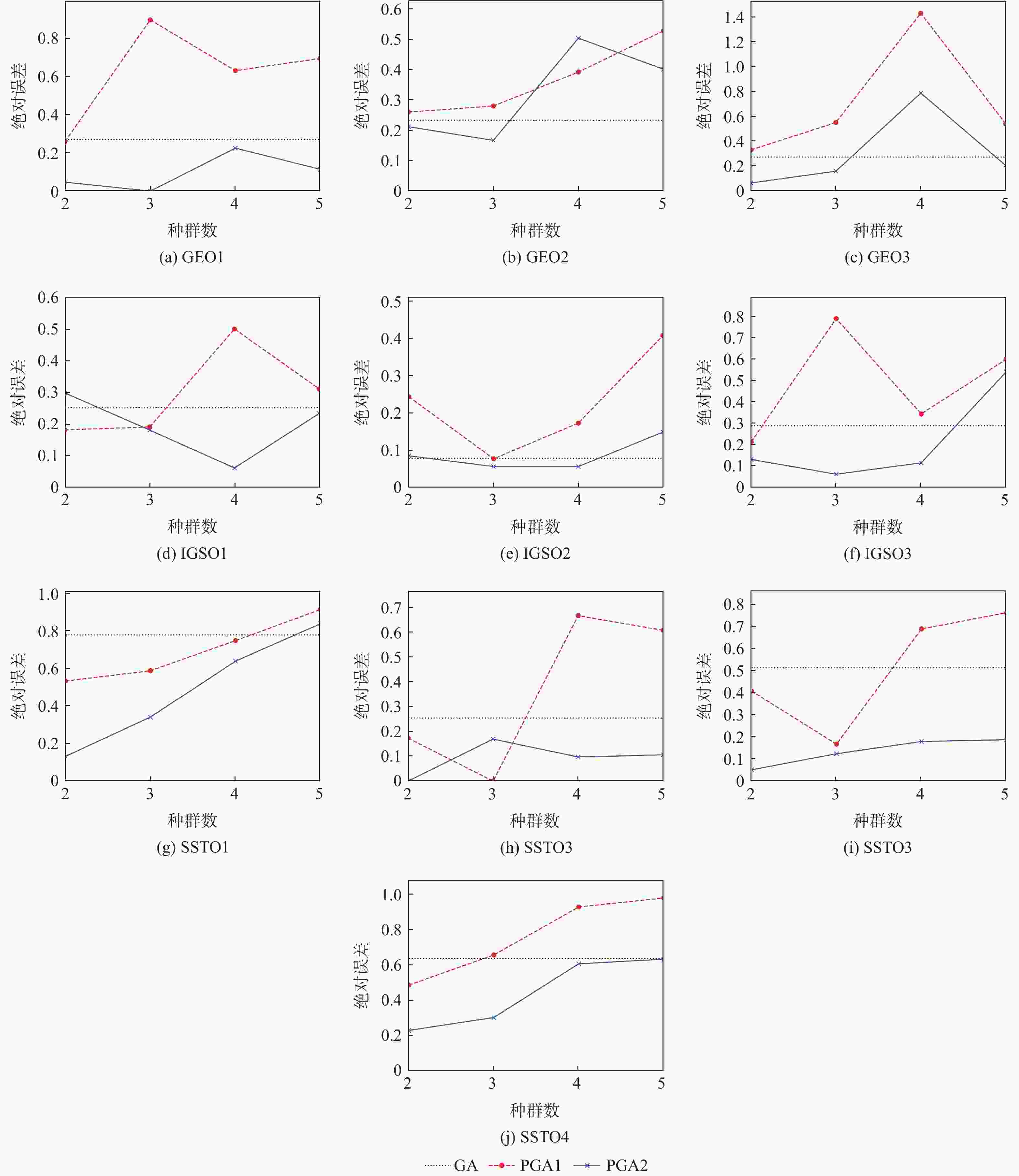 赤经/(°)42166.3 0 0 0 264 90 GEO 42166.3 0 0 0 324 90 42166.3 0 0 0 24 90 42166.3 0 60 0 0 335 IGSO 42166.3 0 120 0 0 34 42166.3 0 90 0 0 94 SSTO 43321.3 0.84 15 270 92 262 40482.9 0.84 16 60 84 309 40482.9 0.84 100 100 84 280 40482.9 0.84 100 270 84 280 表 2 并行遗传选星结果对比