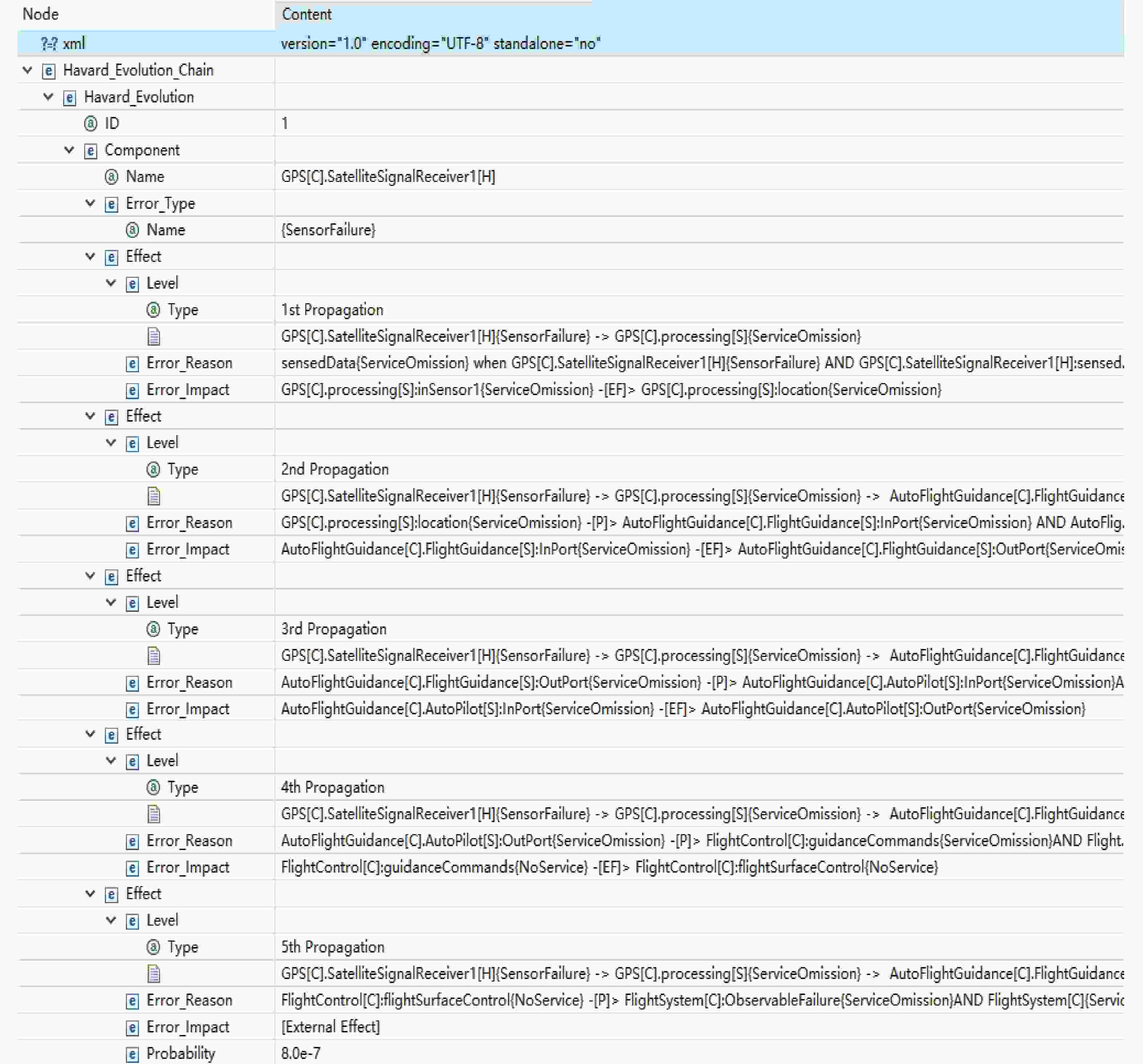Table 4. Root causes of outgoing propagation on AFGOutput{Service_Omission} fault of AutoFlightGuidance subsystem