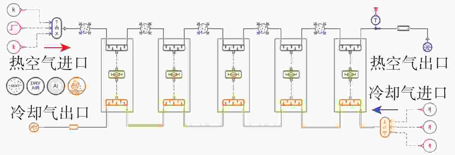 冷/热边 翅片间距/mm 翅片高度/mm 翅片厚度/mm 层数 隔板厚度/mm 面板厚度/mm 封条宽度/mm 热边 1.3 2.5 0.15 10 0.6 2 6 冷边 1.3 2.5 0.15 11 0.6 2 6 表 2 AMESim换热器仿真模块参数设置