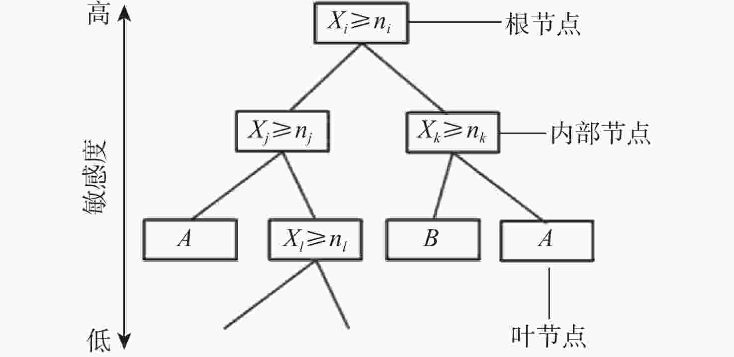 后掠角X1/(°) 展弦比X2 梢根比X3 上反角X4/(°) 机身长细比X5 60~70 0.7 ~ 1.2 0.02 ~ 0.2 −3~8 12 ~ 17 表 2 决策树样本标签
