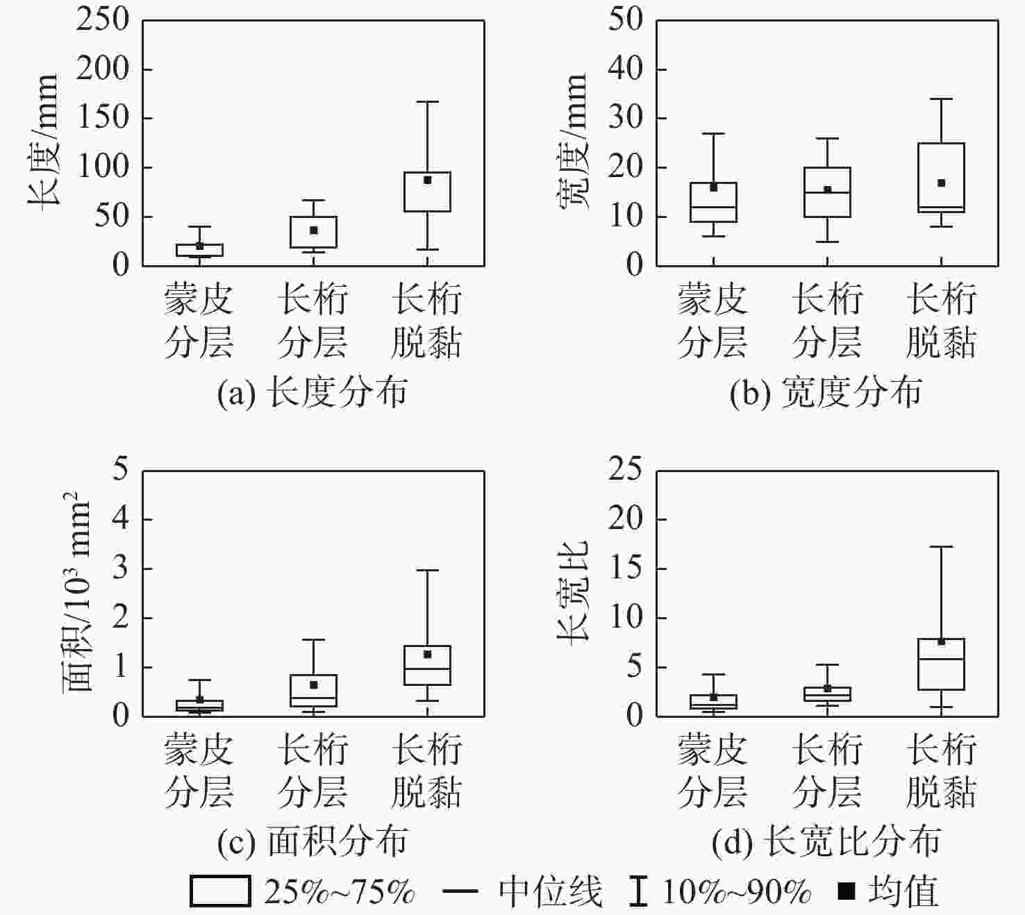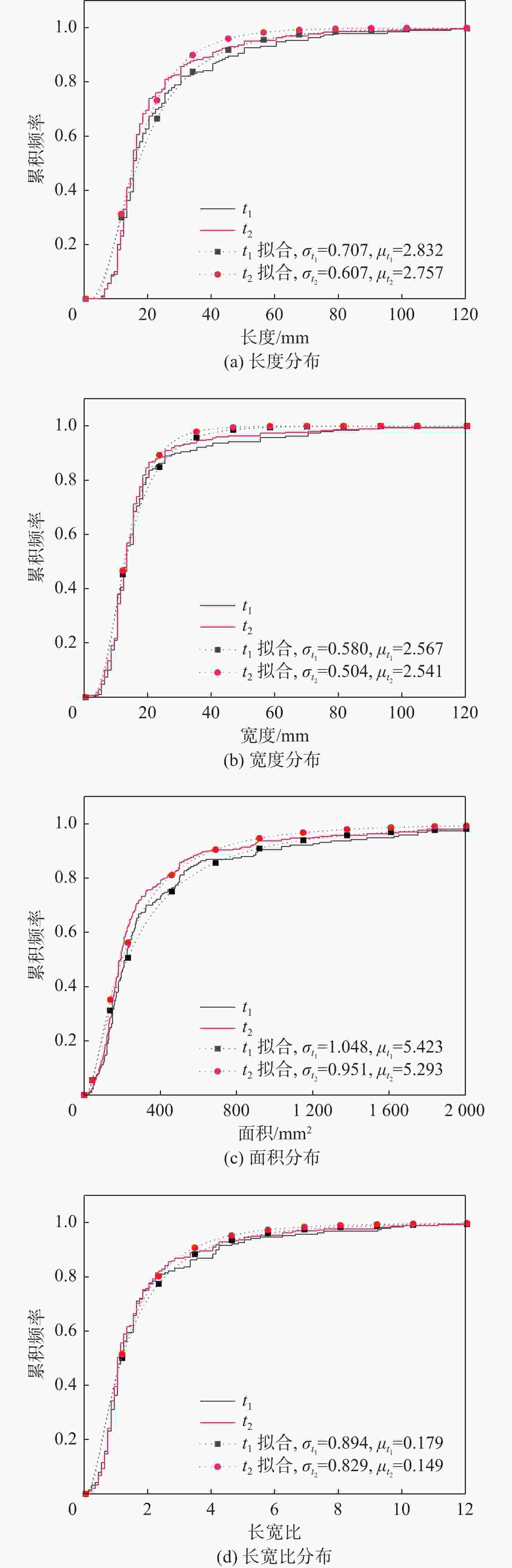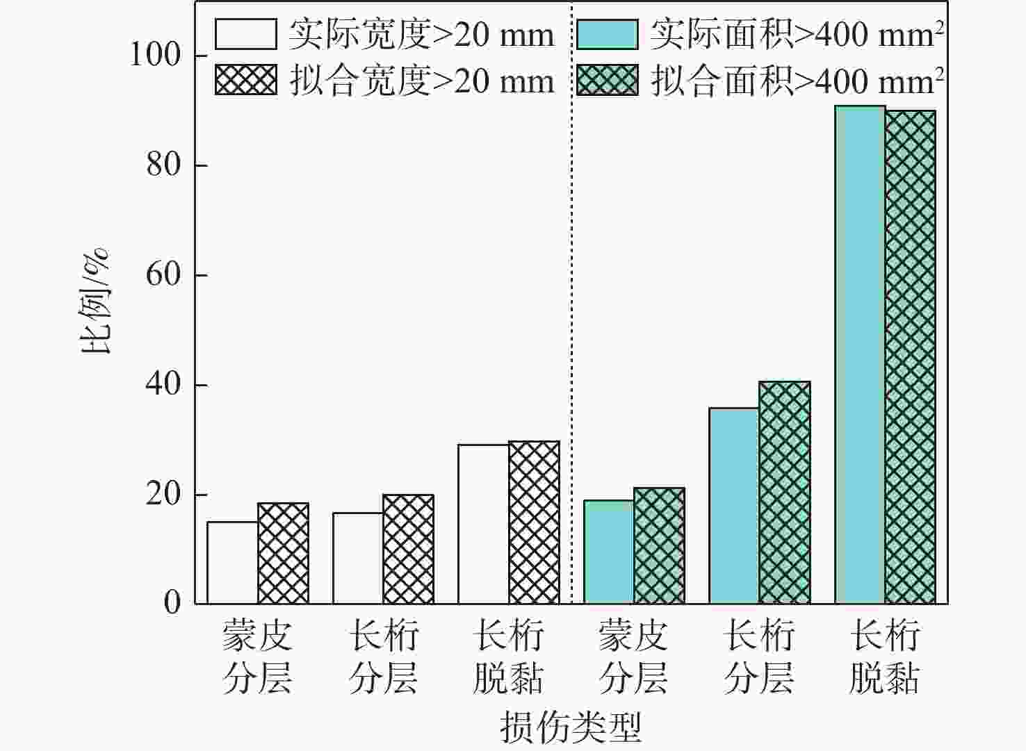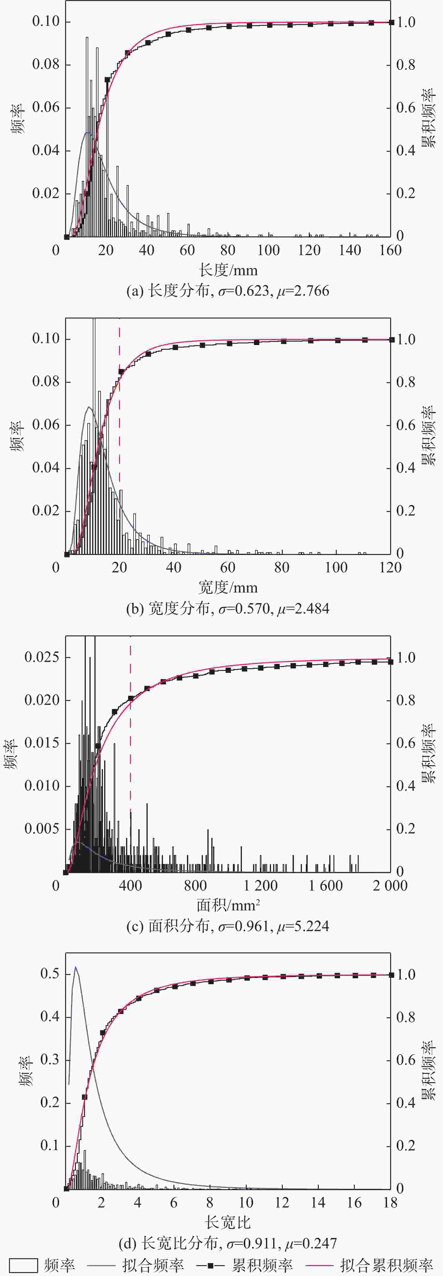 Table 2. Fitting results of lognormal distribution of geometric parameters of skin delamination