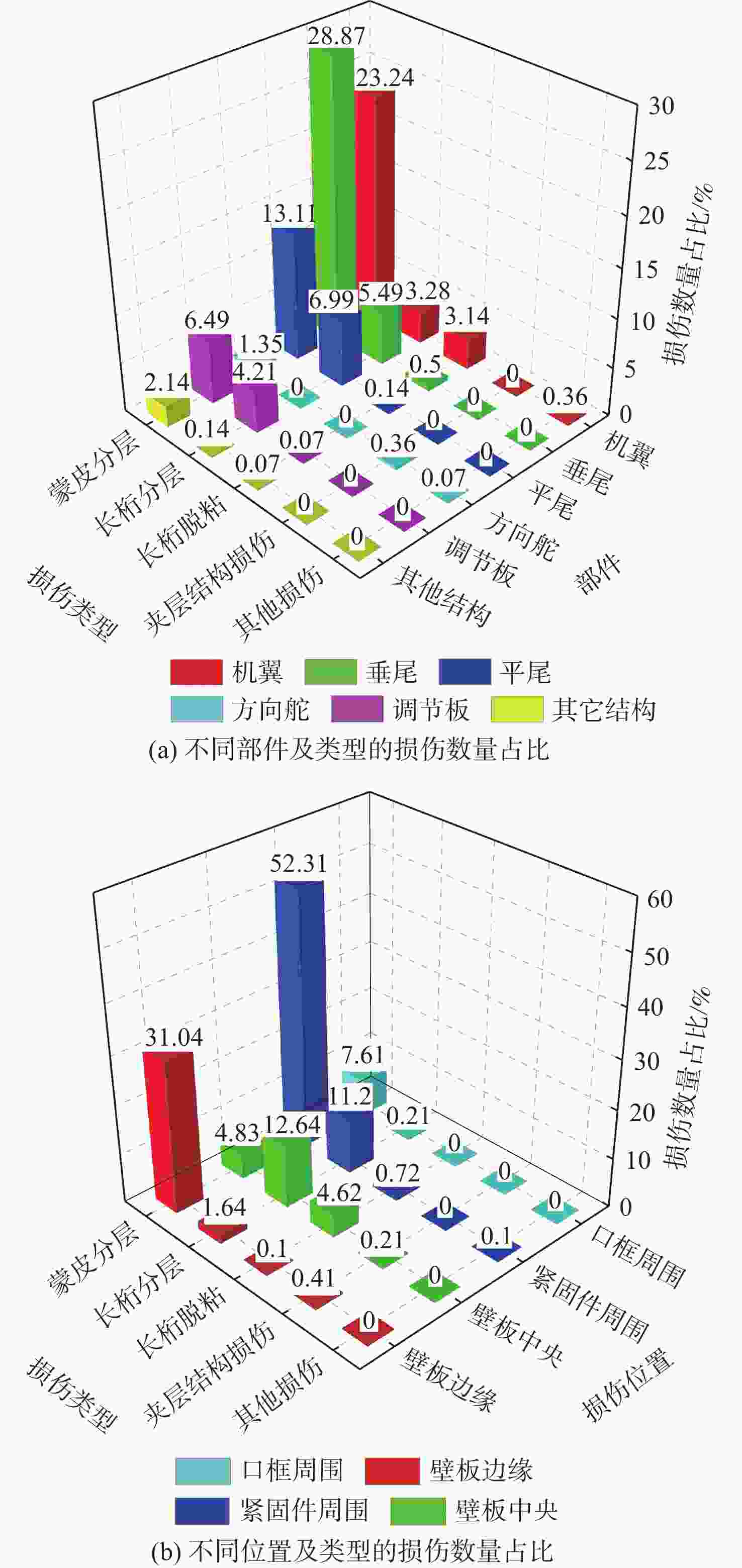 针对飞机复合材料结构的损伤和修理问题,对某型固定翼飞机机翼、机身等部位的复合材料结构应用和损伤情况进行统计,复合材料在该型飞机的主要应用形式主要有实心整体壁板和夹芯层合板2种,建立随时间变化的结构损伤分布模型,利用统计方法对损伤分布进行拟合和检验。结果表明:结构损伤的数量比例分别为蒙皮分层占75%、长桁分层约占20%、长桁脱黏约占4%;对数正态分布、Weibull分布、Γ分布均可以拟合这3种类型损伤的几何参数分布,其中对数正态分布模型的拟合效果最好;单架飞机的损伤几何参数分布规律不随时间变化,同型号飞机之间的损伤几何参数分布规律也高度相似,可采用统一的函数形式描述。