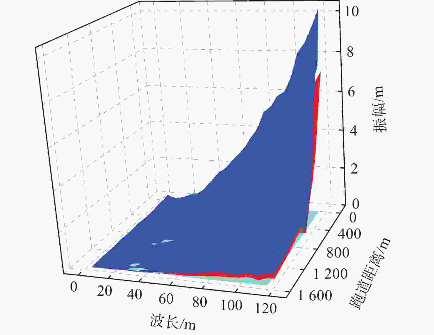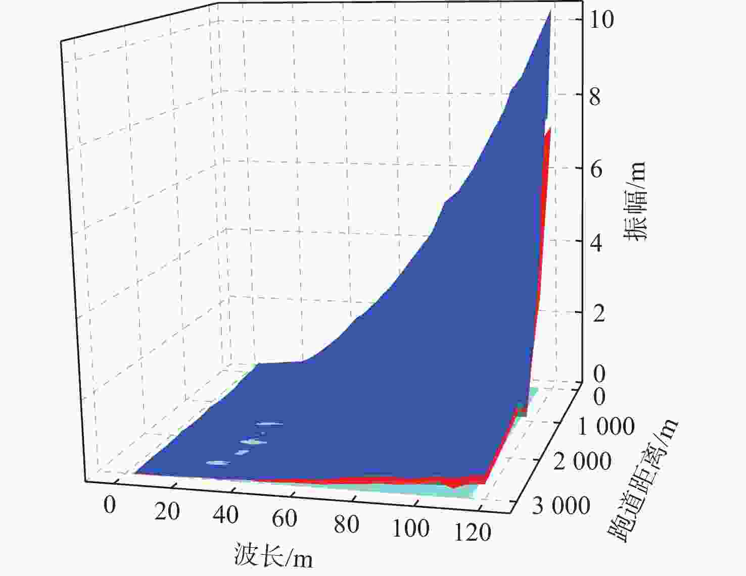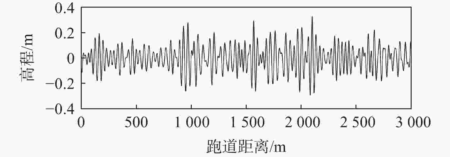 g 和0.4g 时对应的跑道不平整信号的振幅、波长与滑跑速度,建立基于跑道不平整信号频域信息与飞机滑跑速度的飞机滑跑安全振动判断曲面;采用S变换方法对机场跑道高程进行时频分析,得到跑道不同位置处不平整信号的波长与振幅分布曲面;分析飞机在跑道上不同位置的滑跑速度,以坐标位置代替滑跑速度,形成基于跑道不平整信号频域信息与跑道位置的飞机滑跑安全振动判断曲面;与S变换获得的曲面叠加,得到基于时频分析的跑道平整度评价曲面。与现有评价方法相比,所提方法可以对跑道具体位置的平整度情况进行评价,并能够根据不同的机型对跑道平整度分级评价。Abstract:Airport runway roughness is an important content of airport pavement evaluation. At present, the commonly used roughness evaluation methods can’t determine the distribution of unevenness on the runway, and can’t classify and evaluate the taxiing safety of different types of aircraft. In this paper, a runway roughness evaluation method based on joint time-frequency analysis is proposed. The parametric analysis method is used to statistically analyze the root-mean-square distribution characteristics of vertical acceleration at the aircraft’s center of gravity when the aircraft runs at different speeds on uneven runways with different amplitudes and wavelengths. This analysis is based on the three-degree-of-freedom dynamic model of the aircraft. The amplitude, wavelength of the uneven signal of the runway, and taxiing speed corresponding to the vertical acceleration root-mean-square of the center of gravity of the aircraft as 0.25