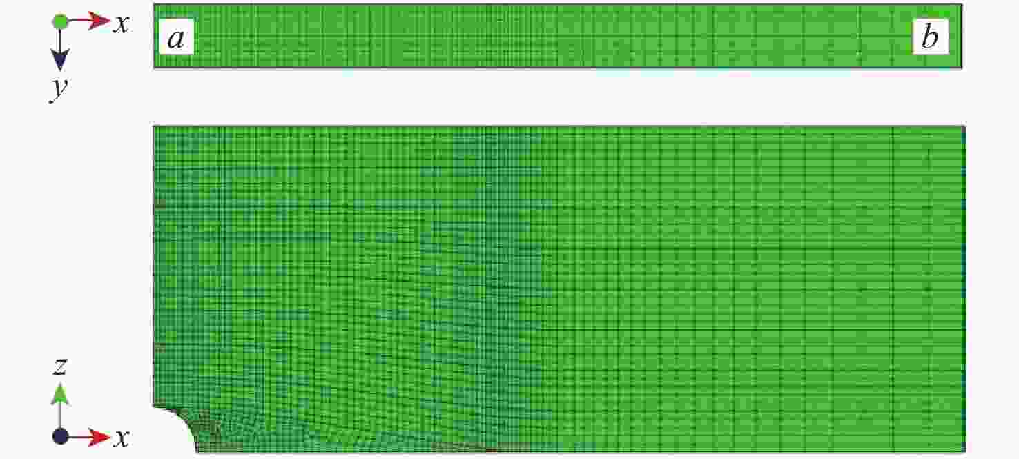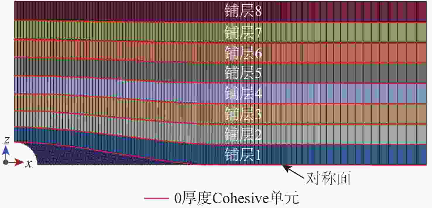 单向预浸带$ {E_{11}}/{\text{GPa}} $ 139 $ {E_{22}}/{\text{GPa}} $ 8.55 $ {G_{12}}/{\text{GPa}} $ 3.8 $ {G_{23}}/{\mathrm{GPa}} $ 3.02 $\mu _{12}^{}$ 0.32 $\mu _{23}^{}$ 0.3 $ {X_{\text{T}}}/{\text{MPa}} $ 2372 $ {X_{\text{C}}}/{\text{MPa}} $ 1234 $ {Y_{\text{T}}}/{\text{MPa}} $ 55.0 $ {Y_{\text{C}}}/{\text{MPa}} $ 178 $ {S_{12}}/{\text{MPa}} $ 125.0 $ {S_{23}}/{\text{MPa}} $ 107 数值Cohesive