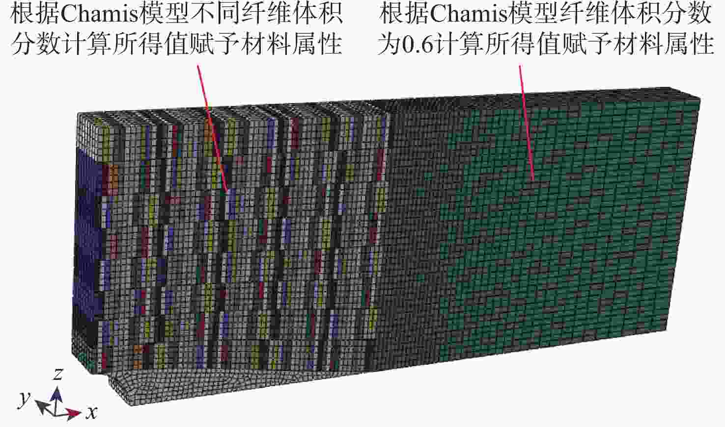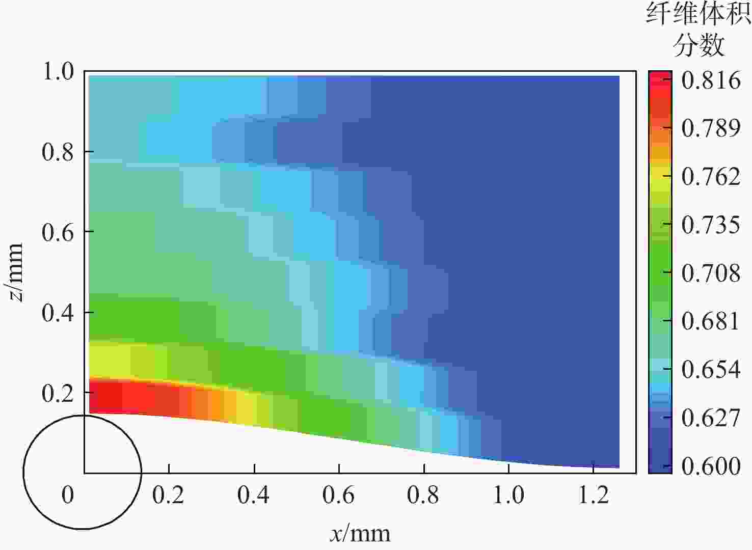 组别 拉伸强度/MPa 相对误差/% 试验 有限元(不考虑纤维体积分数变化) 有限元(考虑纤维体积分数变化) 不考虑纤维体积分数变化 考虑纤维体积分数变化 2 1852.1 1525.8 1603.7 −17.62 −13.41 3 1 424.6 1 269 1 430 −10.92 0.38 -
