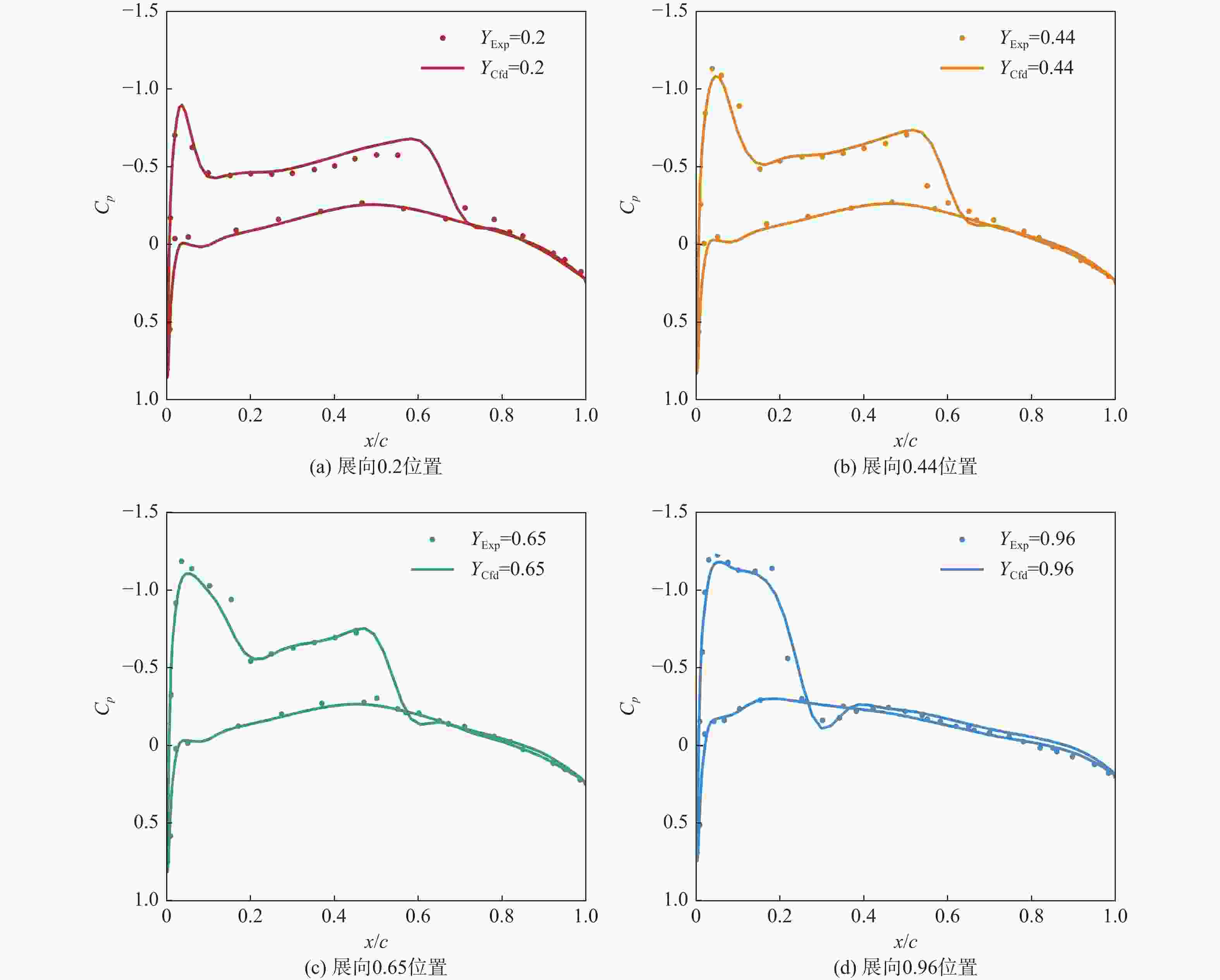 变弯度机翼在提高常规布局客机气动特性方面有较大的潜力,但也会引起全机俯仰力矩变化,考虑翼身融合布局飞行器力臂短、配平阻力较大的特点,研究变弯度技术在翼身融合布局飞行器上的减阻收益与配平惩罚。从工程实际出发,采用基于舵面偏转的方式实现后缘变弯度并对比分析不同展向位置处舵面的配平能力;然后利用全局优化方法开展变弯度气动减阻优化设计;最后对变弯度设计空间进行探索。结果表明:随着升力系数的改变,产生配平阻力最小的舵面位置也会发生变化。当不考虑俯仰力矩配平约束时,采用变弯度技术至多可以获得4.62%的减阻收益;在考虑俯仰力矩配平约束后,相比于采用中央体后缘舵面配平,采用变弯度技术至少能够减小2.4×10−4的配平损失。不同升力系数下,变弯度的舵面偏转组合方式存在明显差异,小升力系数下,多个舵面负偏的变弯度组合有利于减阻并增加抬头力矩;而大升力系数下则是通过多个舵面正偏的组合实现减阻,但会导致低头力矩增加。基于多舵面组合偏转的变弯度减阻收益与力矩惩罚评估,能为工程上设计可变弯度翼身融合布局飞行器提供参考。