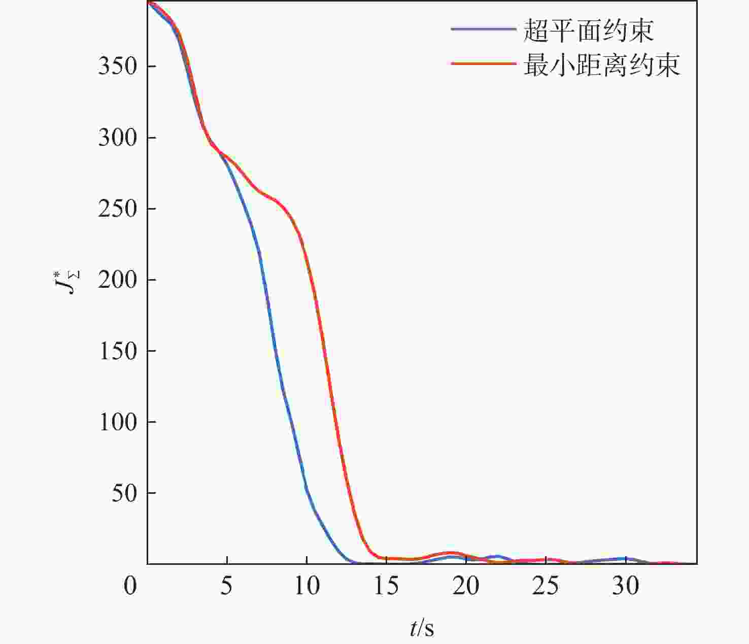 N $\tau $/ms $\dfrac{\tau}{\Delta T} $/% 最小距离约束 超平面约束 最小距离约束 超平面约束 3 6.8 6.91 1.36 1.38 4 6.84 6.79 1.37 1.35 5 7.32 6.98 1.46 1.40 6 10.68 7.22 2.14 1.44 7 10.98 7.30 2.20 1.46 8 11.84 7.51 2.37 1.50 9 12.90 8.14 2.58 1.63 10 12.14 7.95 2.43 1.59 -