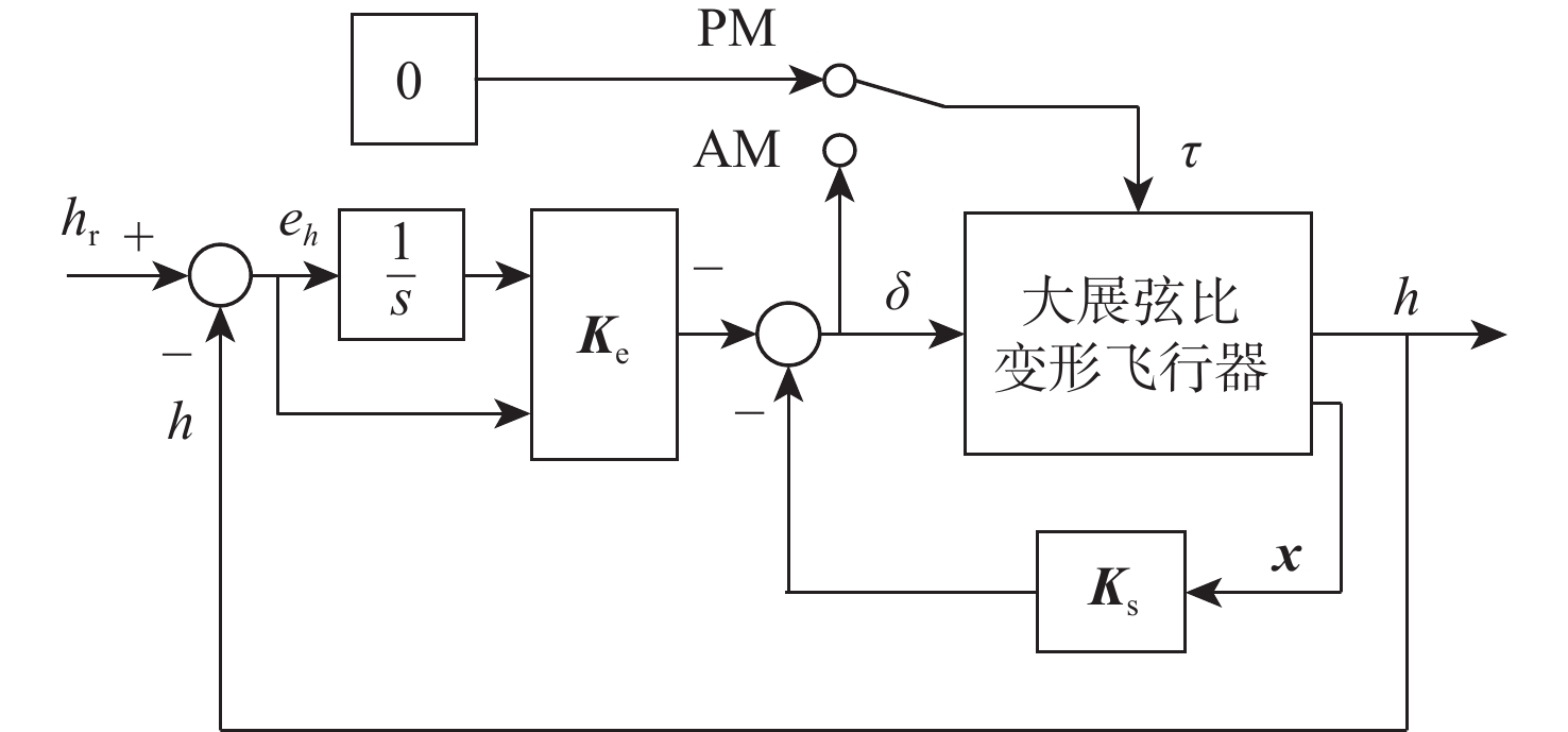 针对变形飞行器结构/飞行耦合动力学的飞行控制问题,以大展弦比飞行器为研究对象开展了变形辅助高度控制策略研究。采用单元翼多体假设,构建了大展弦比飞行器二面角变形结构,建立了结构/飞行纵向耦合动力学模型,基于线性二次型(LQR)控制器设计方法设计了主动变形(AM)和被动变形(PM) 2种控制策略。其中,被动变形控制策略仅采用升降舵作为控制输入,结构二面角动态行为由耦合动力学驱动;主动变形控制策略以二面角铰链处的扭矩作为额外输入对高度跟踪进行协调控制。仿真分析了2种控制策略下的高度跟踪效果及状态变化,研究结果表明:采用主动变形控制策略可有效改善高度跟踪暂态过程的性能,降低姿态回路的阻尼特性,为未来先进变形飞行器的结构/飞行一体化控制提供研究基础。