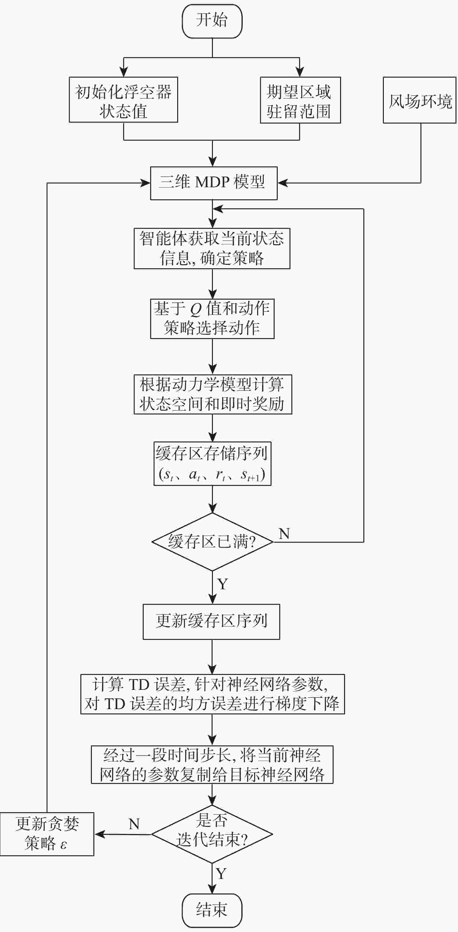 训练参数 数值 批学习数Nb 512 最大训练回合数Nmax 2×104 记忆回放单元大小M 2×106 学习率 0.001 奖励偏差 −0.1 ε-贪婪算法下降参数${\varepsilon _{{\text{dec}}}}$ 0.01 ε初值 0.98 表 7 平流层浮空器参数